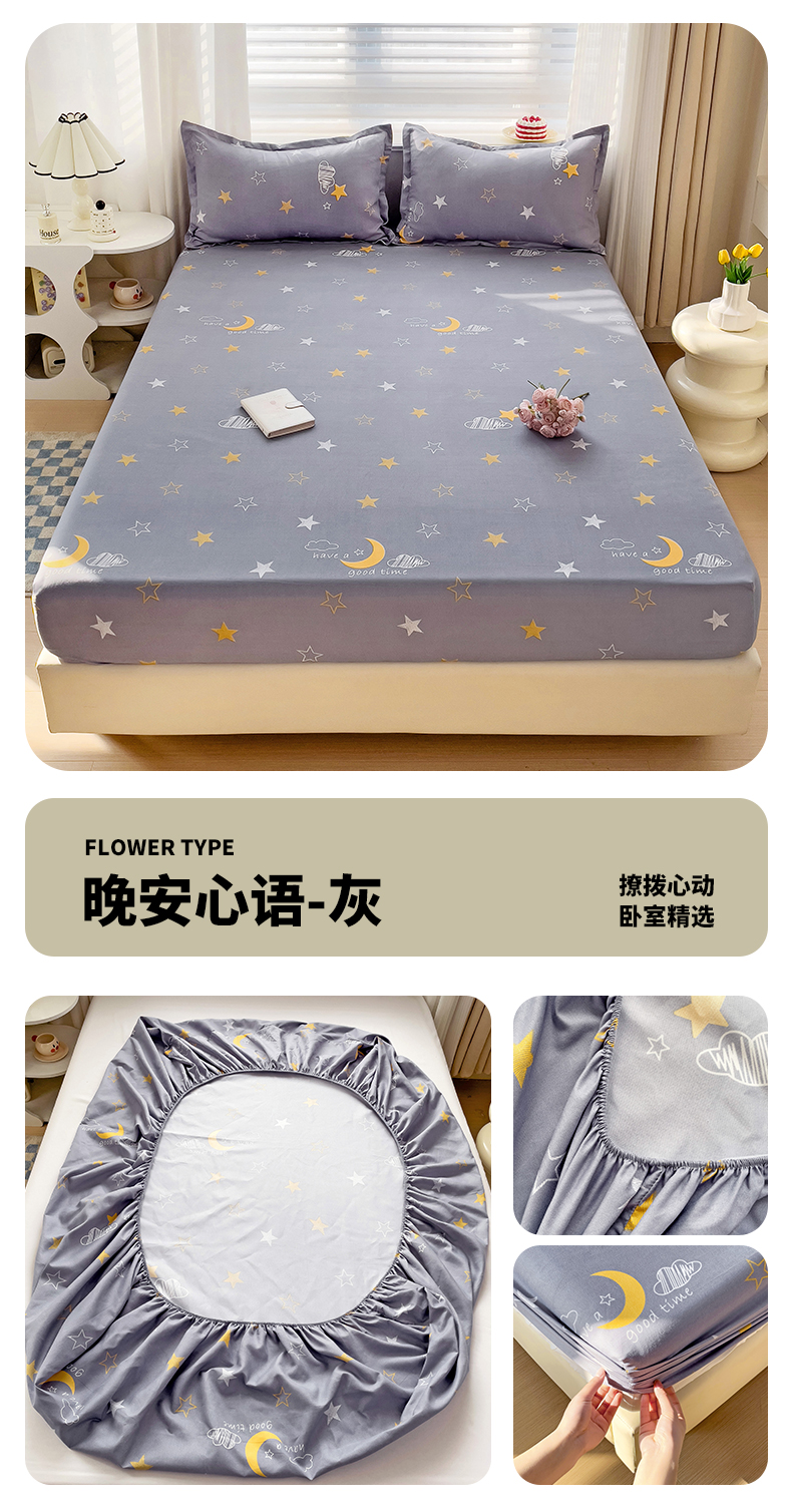 商品名称:好亿来家纺 2025新款亲肤磨毛单层床笠 晚安心语-灰