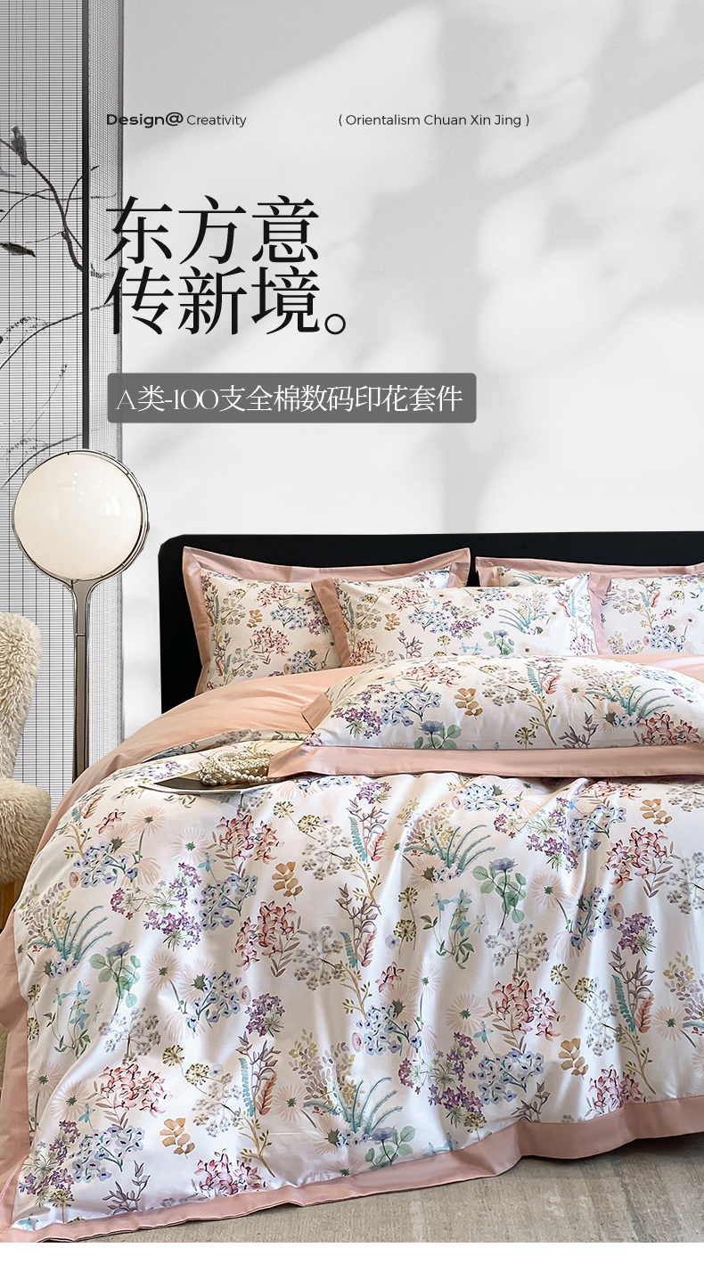 蓝米卡夫 2024新品-A类100支全棉活性数码拼角款-繁花系列 花姚