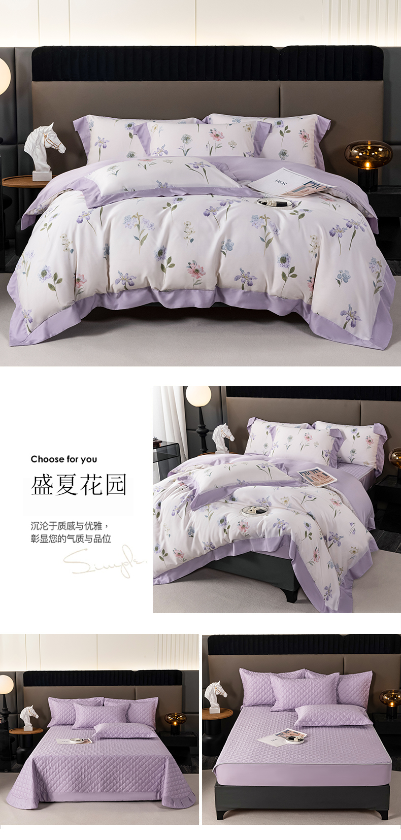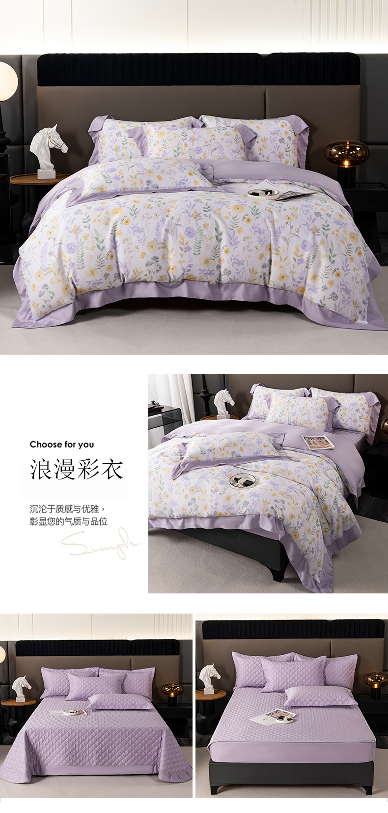 (总)OL家纺 2025新款天丝棉色织大提花四件套系列,绯色时空-紫,绯色时空-棕,派对时光