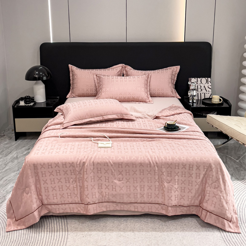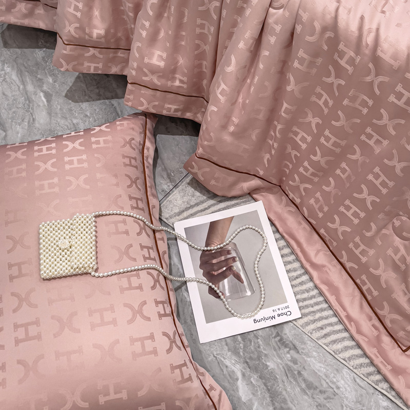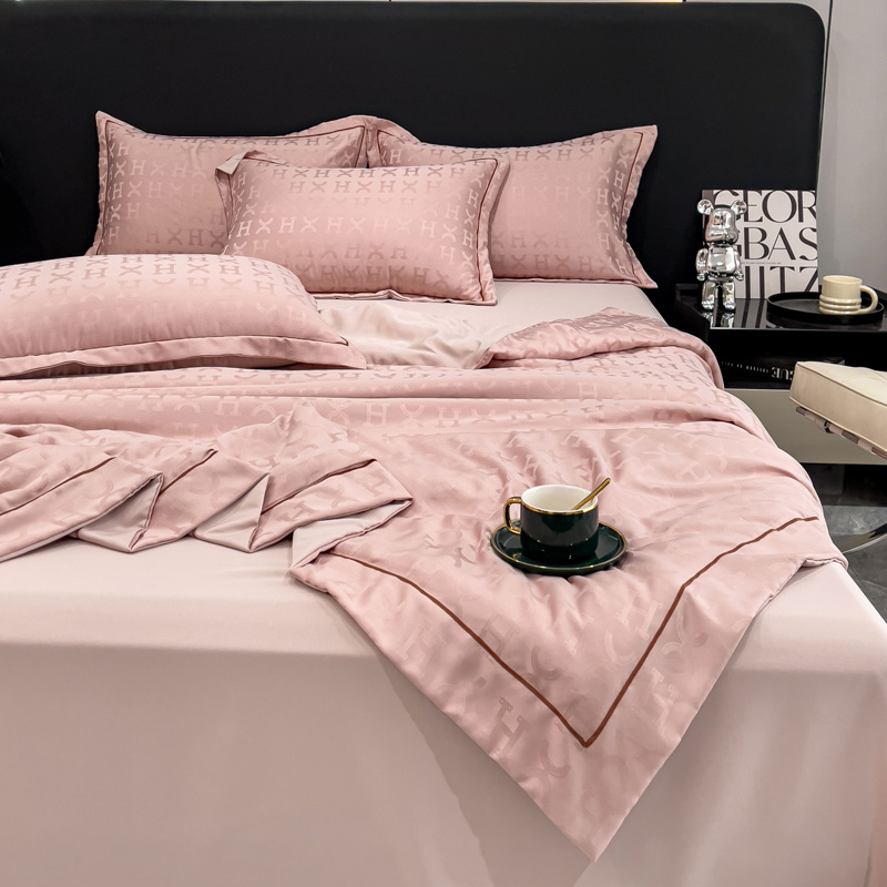 丽卡家纺 2024新款60s贡缎提花水洗天丝夏被四件套-莫奈 莫奈-蔷薇粉