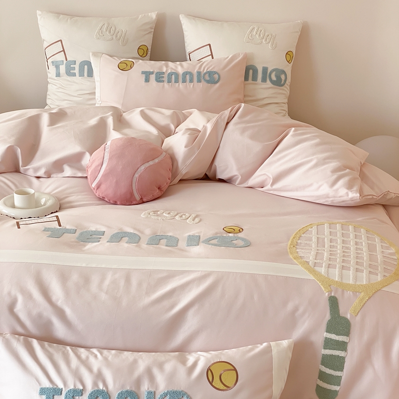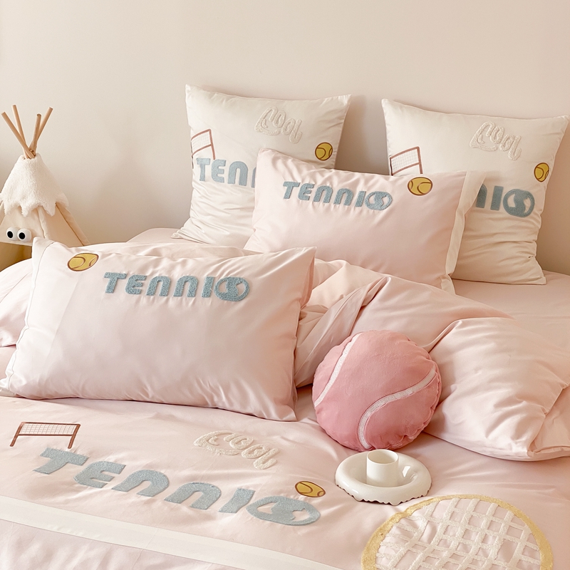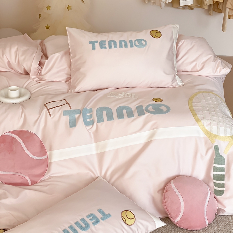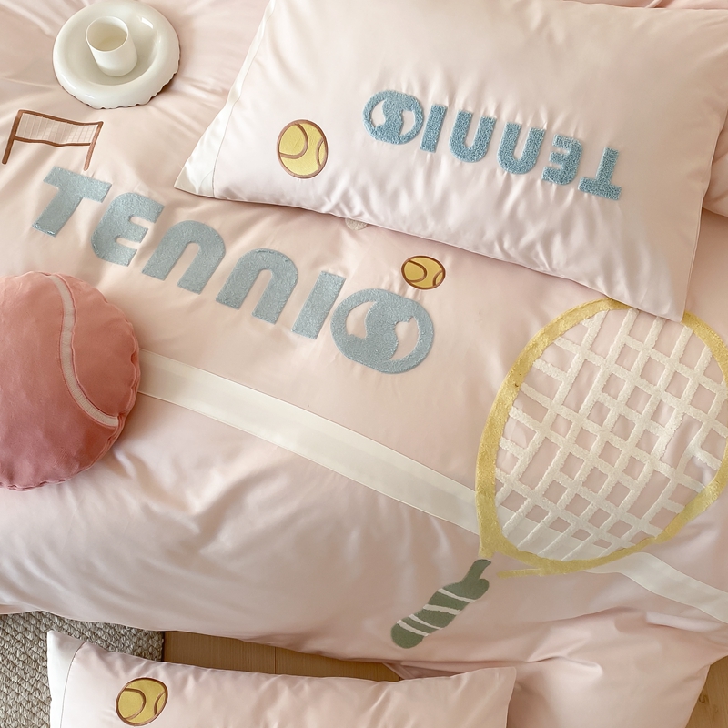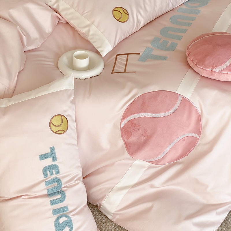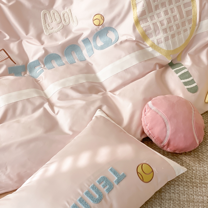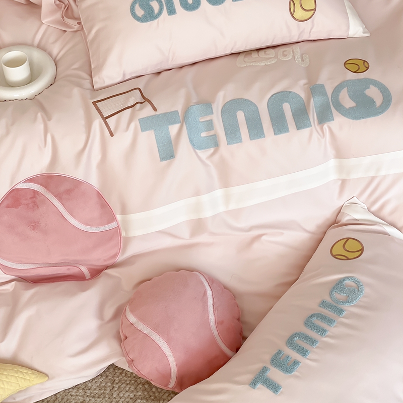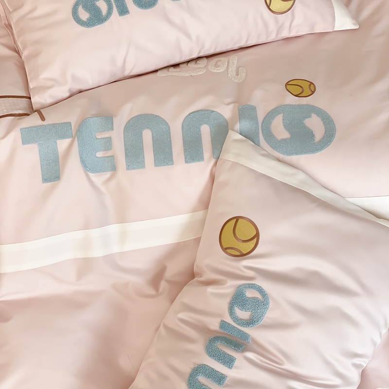 商品名称:星野家居 2024新款双股澳棉毛巾绣四件套—快乐网球场 快乐网球场—樱花粉