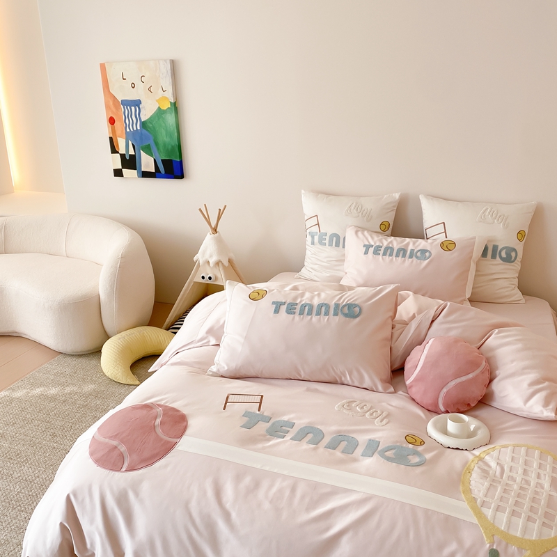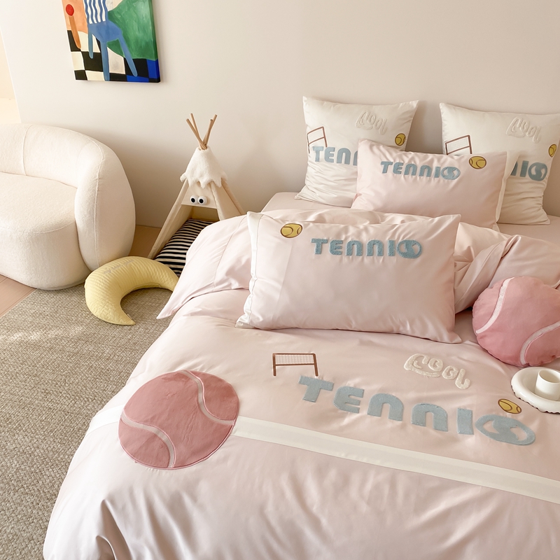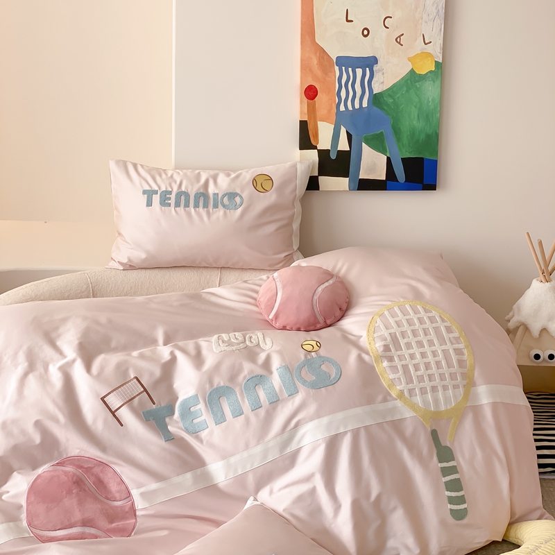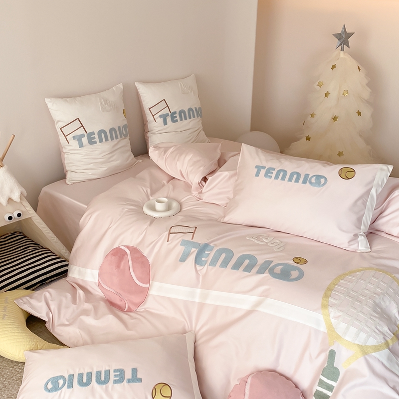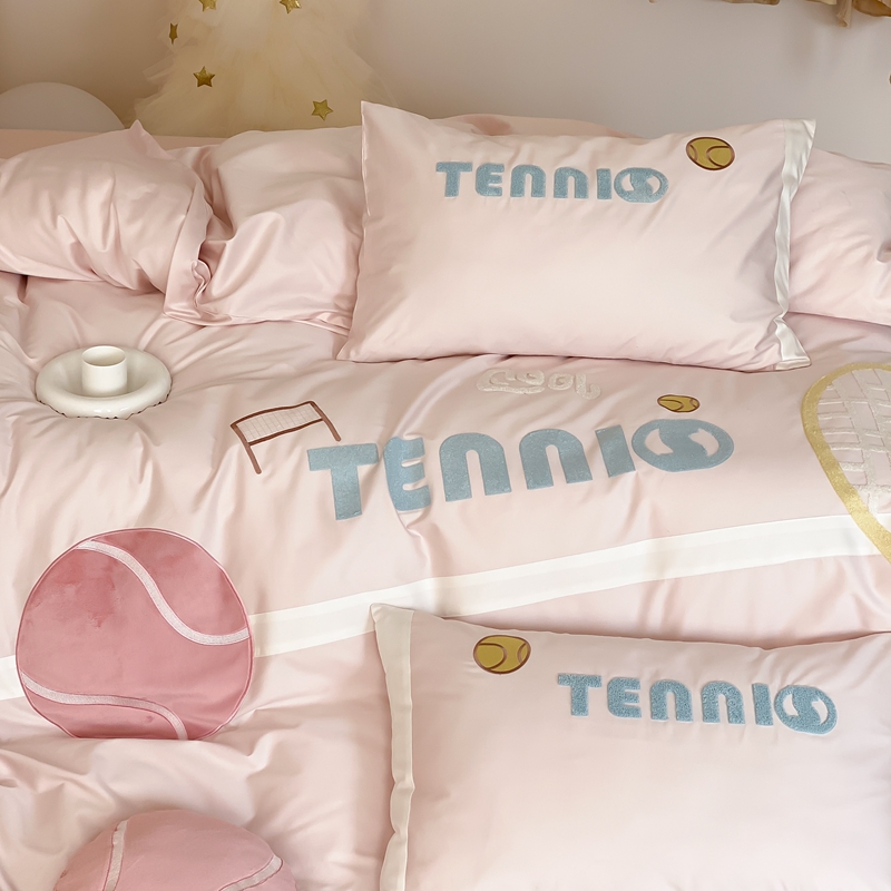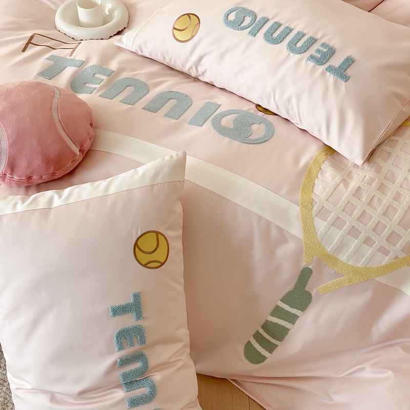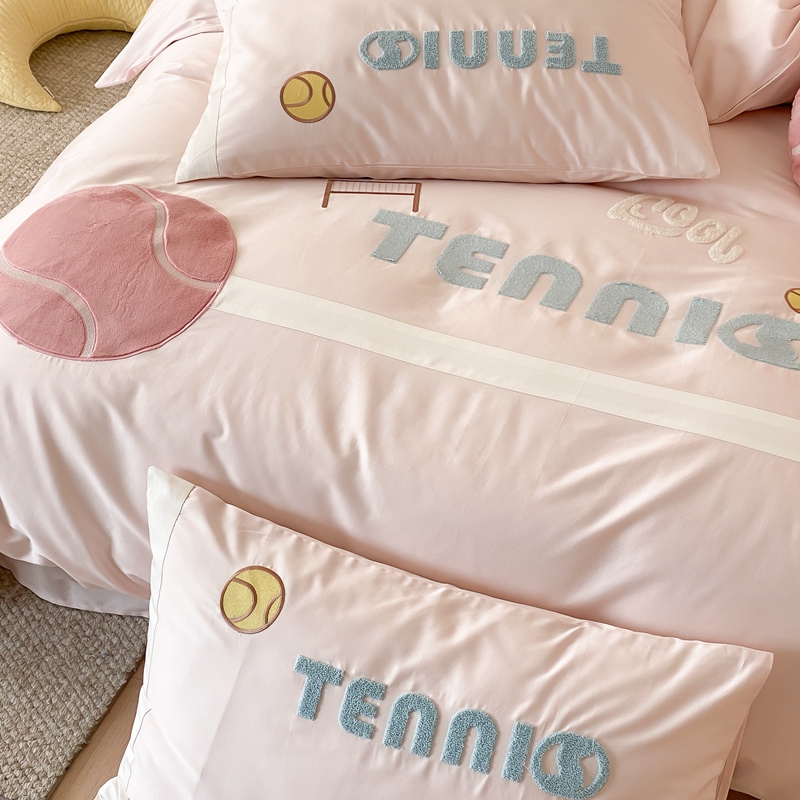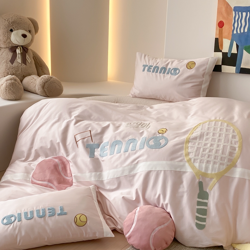商品名称:星野家居 2024新款双股澳棉毛巾绣四件套—快乐网球场 快乐网球场—樱花粉