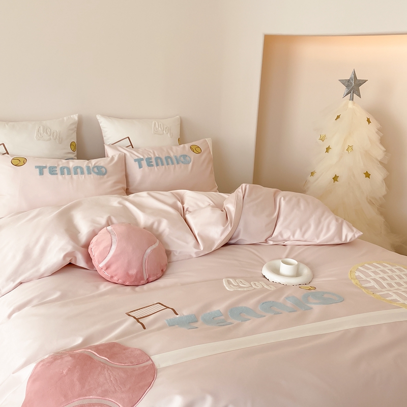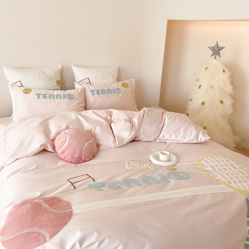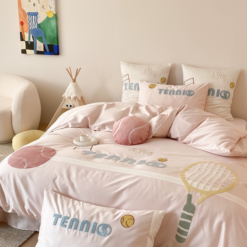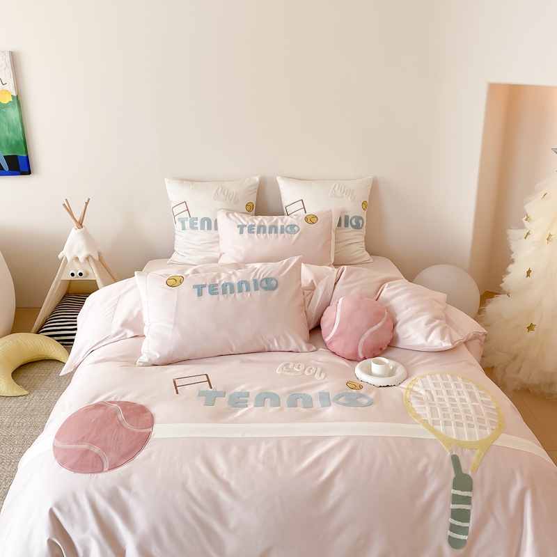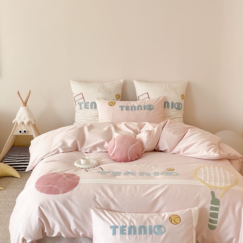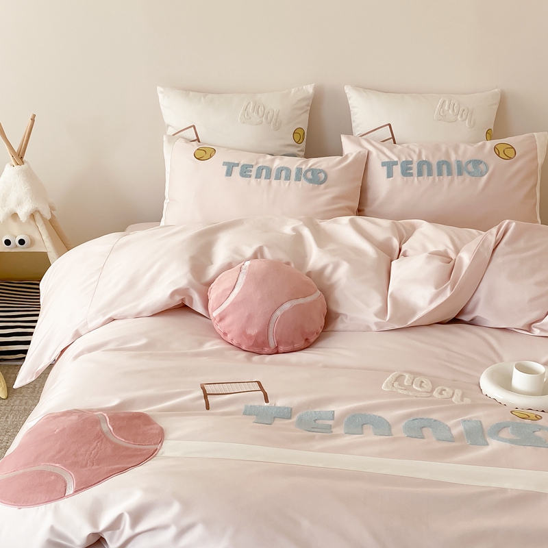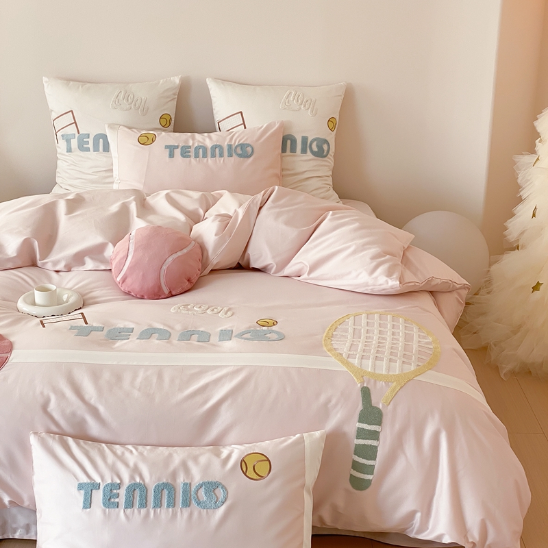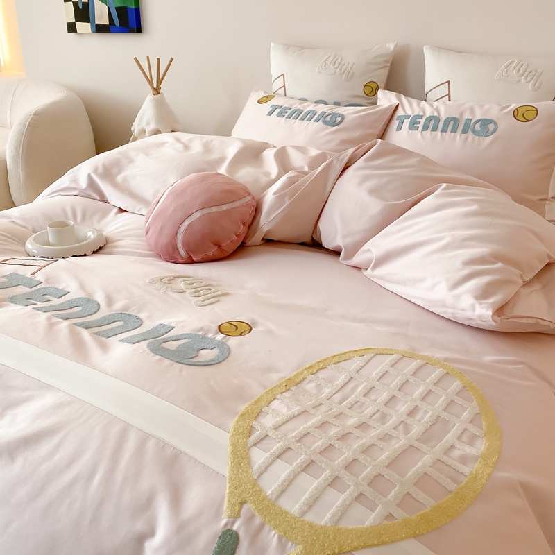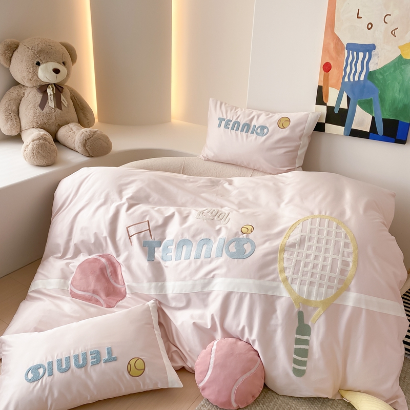 商品名称:星野家居 2024新款双股澳棉毛巾绣四件套—快乐网球场 快乐网球场—樱花粉