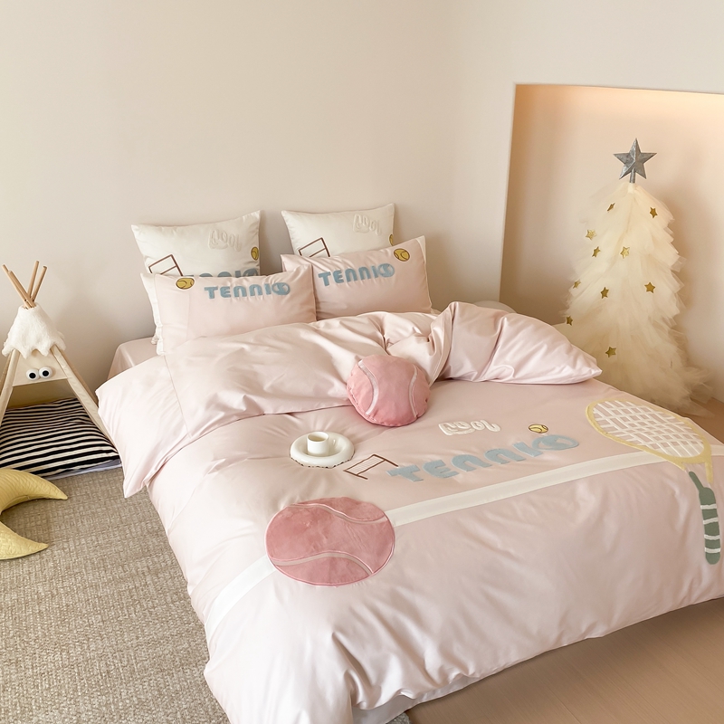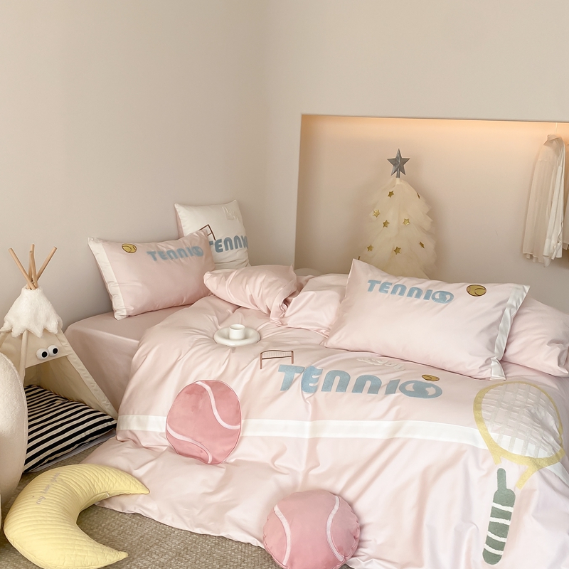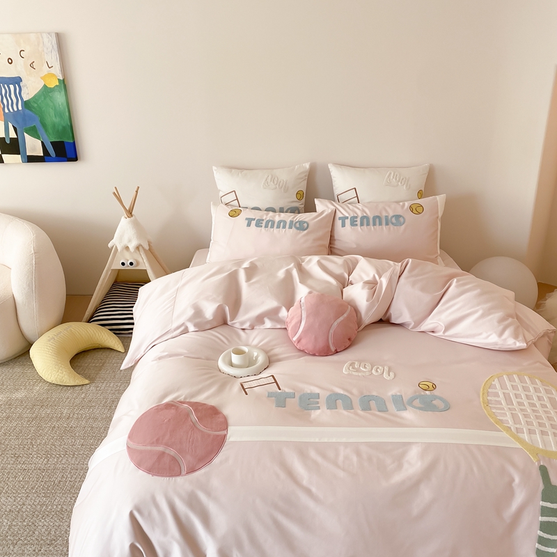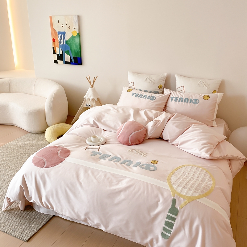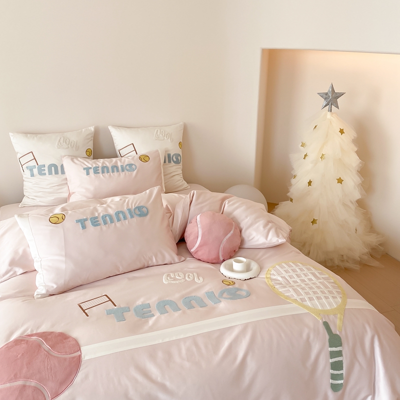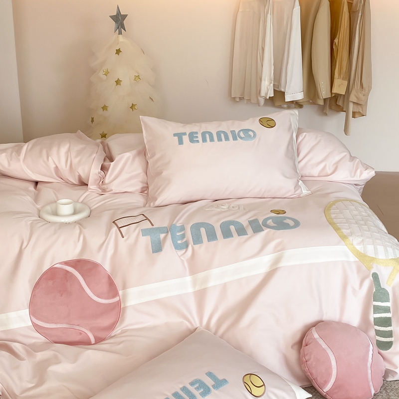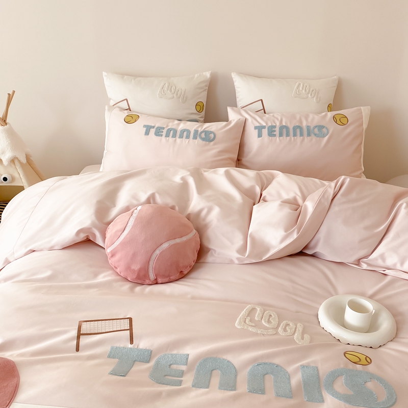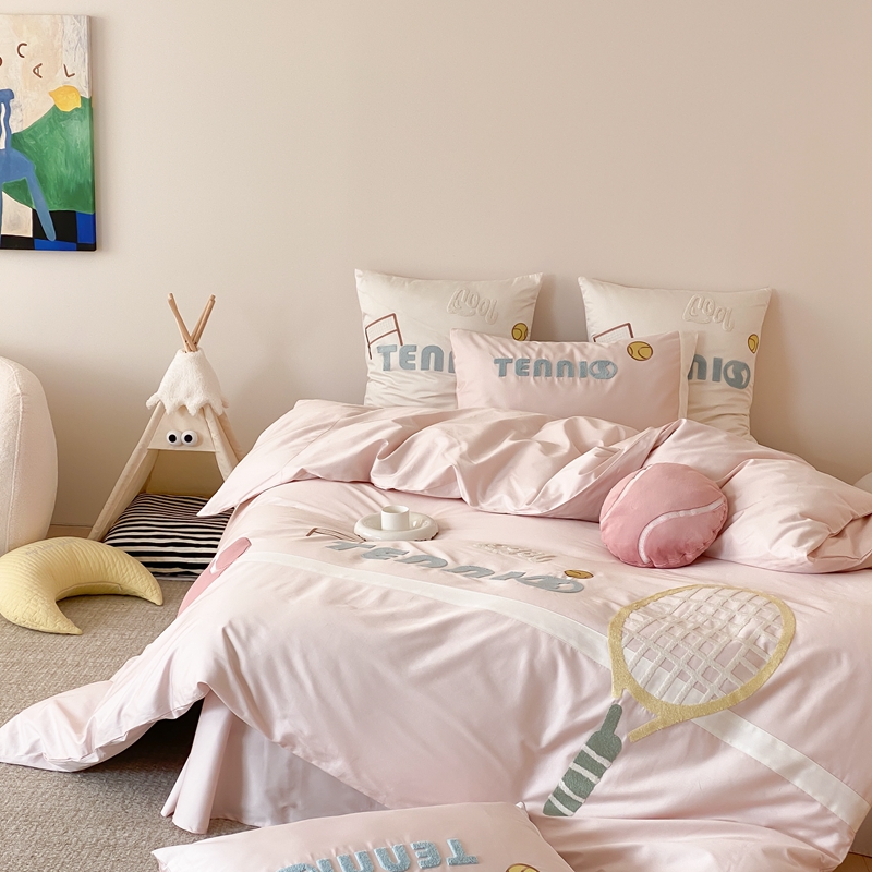 商品名称:星野家居 2024新款双股澳棉毛巾绣四件套—快乐网球场 快乐网球场—樱花粉