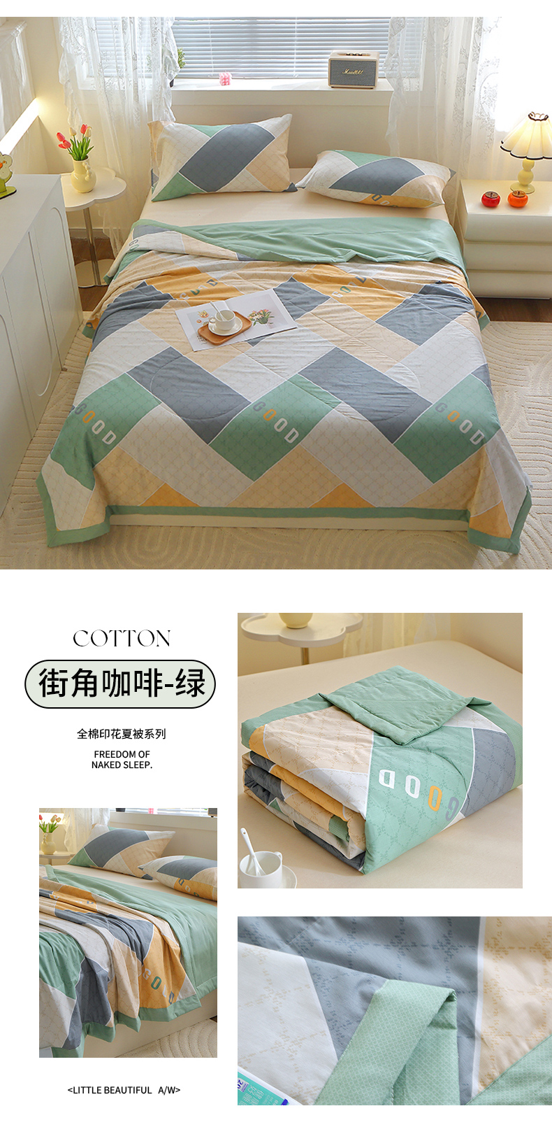 商品名称:金柚子2024新款全棉印花夏凉被 街角咖啡-绿