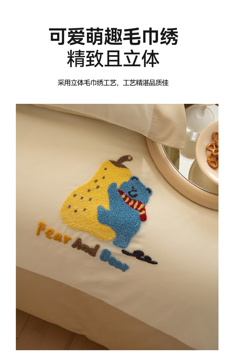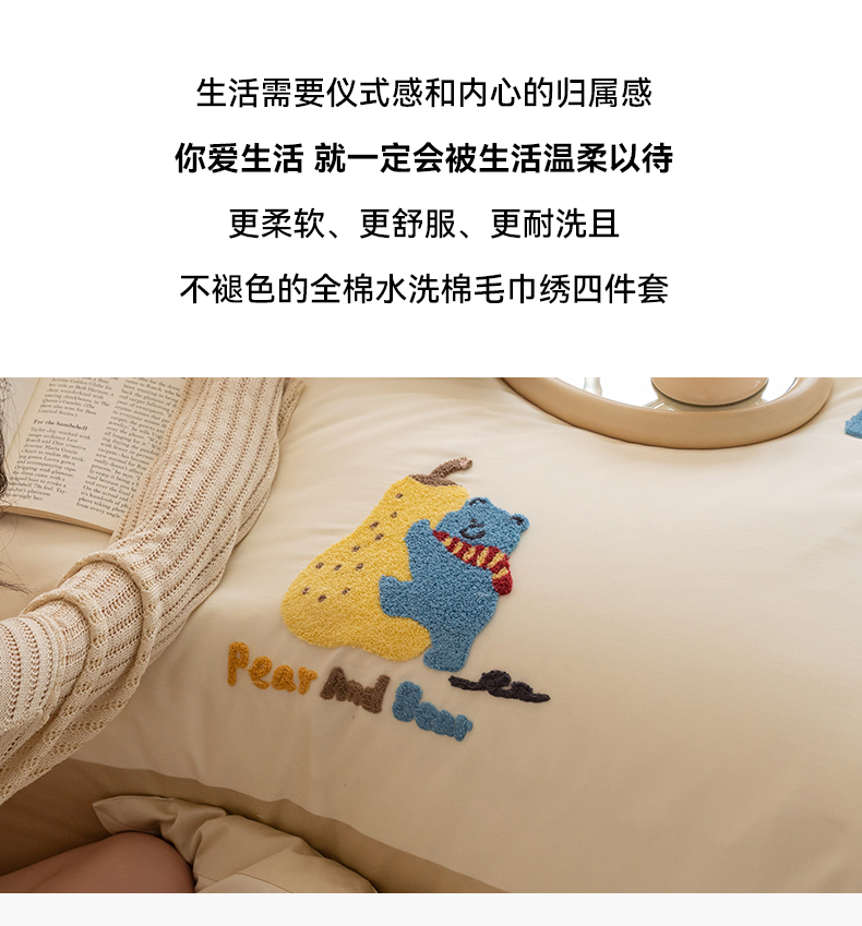 名品优仓 2023新款水洗棉毛巾绣撞边款式四件套-玫瑰熊 玫瑰熊猫,玫瑰熊猫