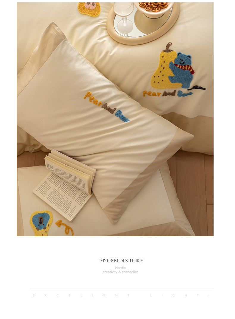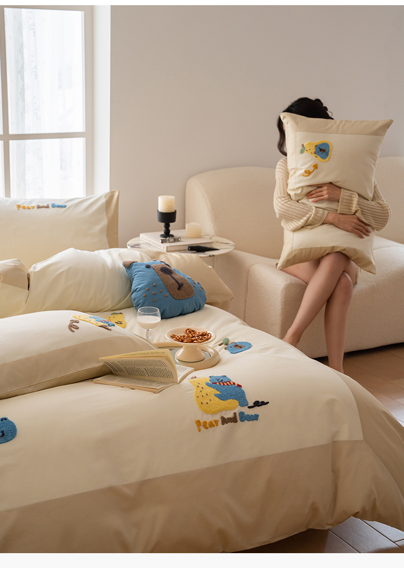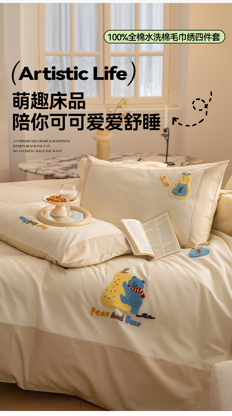 名品优仓 2023新款面包狗系列水洗棉毛巾绣四件套 奶菟,奶菟