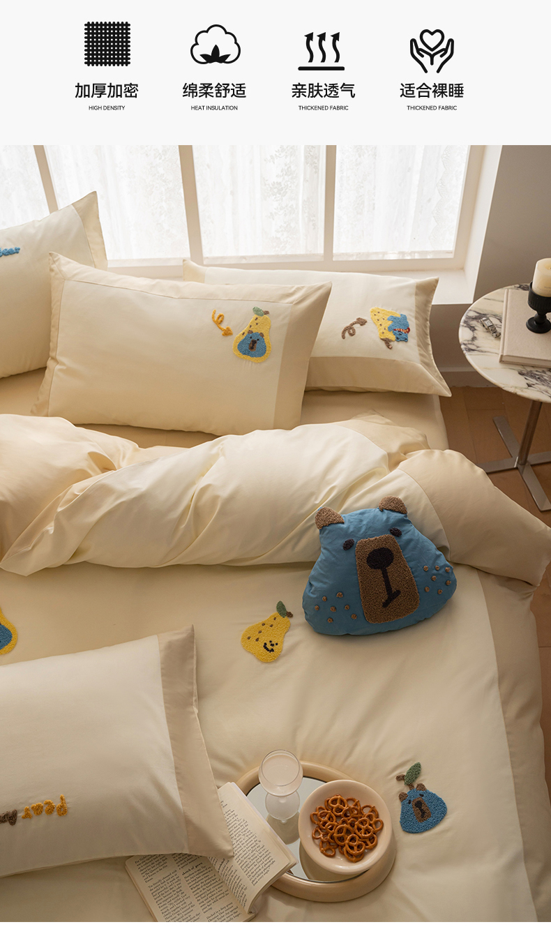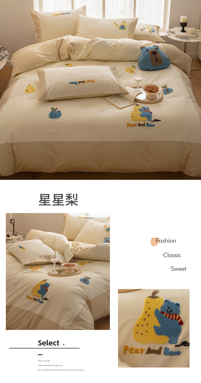 商品名称:名品优仓 2024新款大拼角水洗棉四件套 星星梨