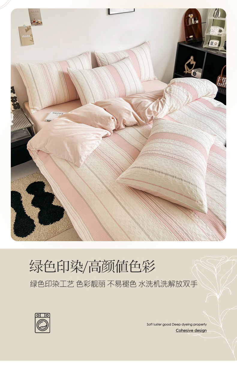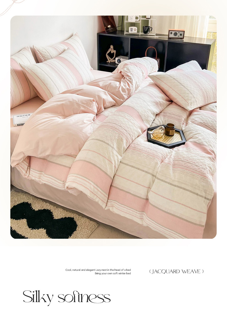 倾慕家纺 2024新款提花全棉3D立体简约全棉系列套件 华夫生活-粉