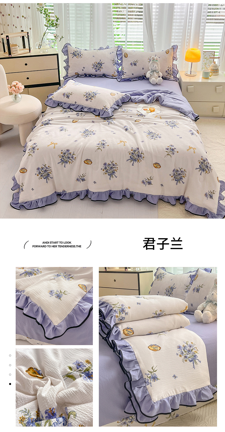 商品名称:韩约 2024新款1有氧提花时尚花边款泡泡夏被棉四件套 君子兰