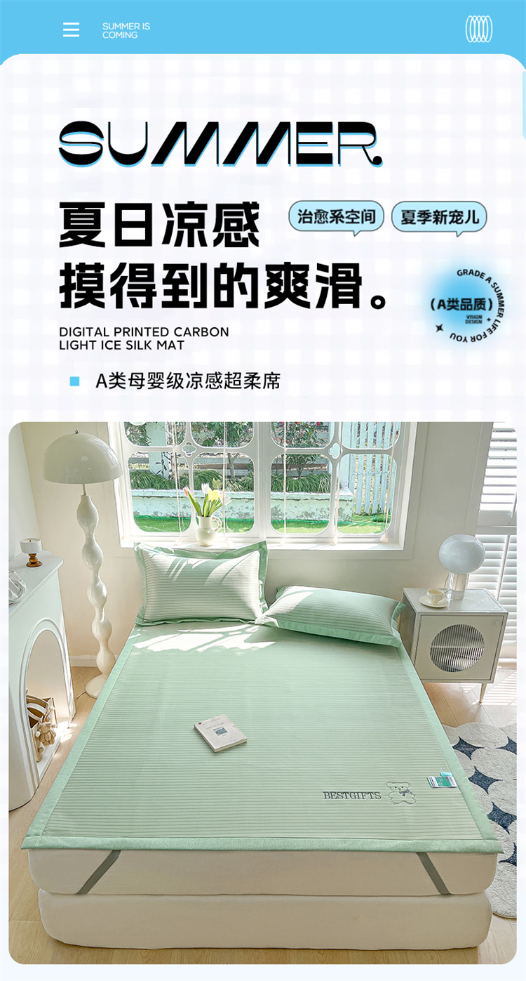 宜派家纺 2024新款A类超柔亲肤席-礼物熊 礼物熊-绿