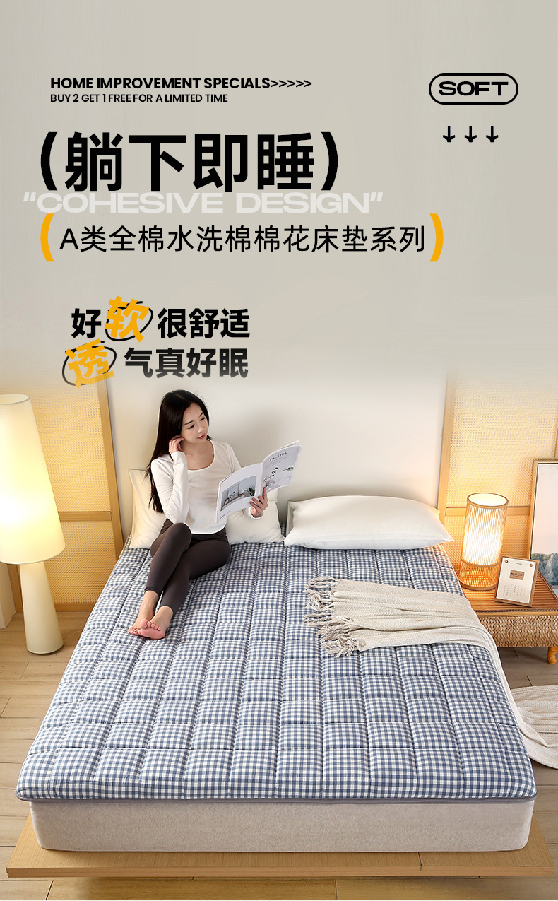 当前位置: 91家纺网 > 商品网购 > 床垫/床褥 > 普通床垫 > 东宇床垫 2024新款棉花加厚床垫大床系列 海蓝小格-加厚
