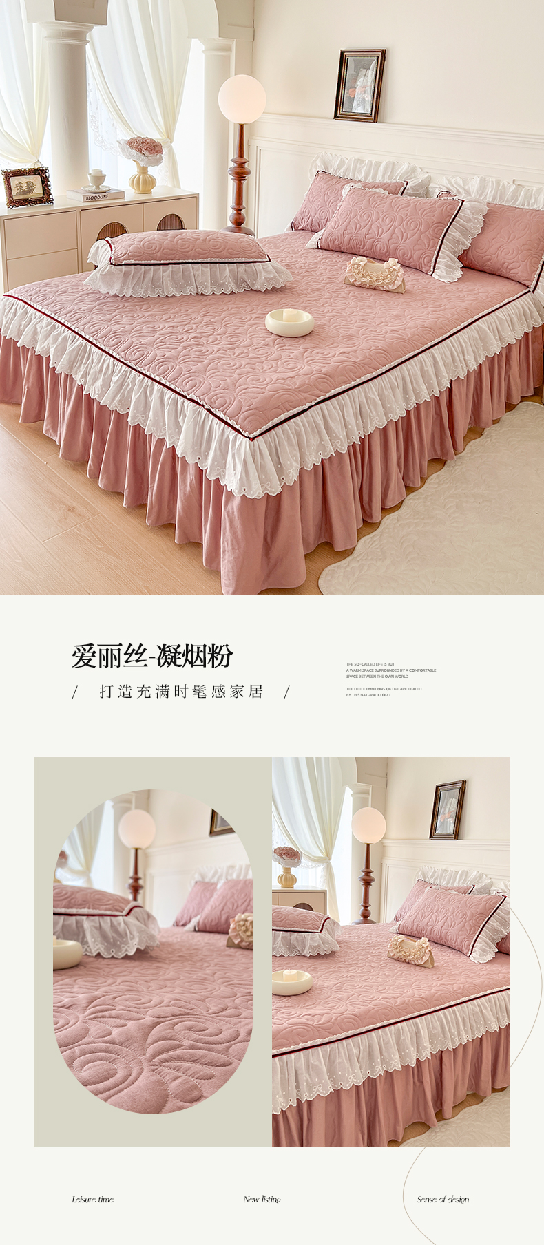 (总)网红馆(ck家纺) 2025新款牛奶绒花边床盖四件套-甜蜜蜜,甜蜜蜜-粉,甜蜜蜜-咖,甜蜜蜜-绿,甜蜜蜜-米,甜蜜蜜-紫