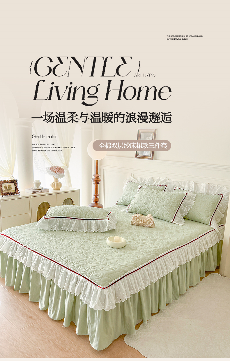 商品名称:(总)网红馆 2025新款全棉双层纱花边款爱丽丝系列单床裙