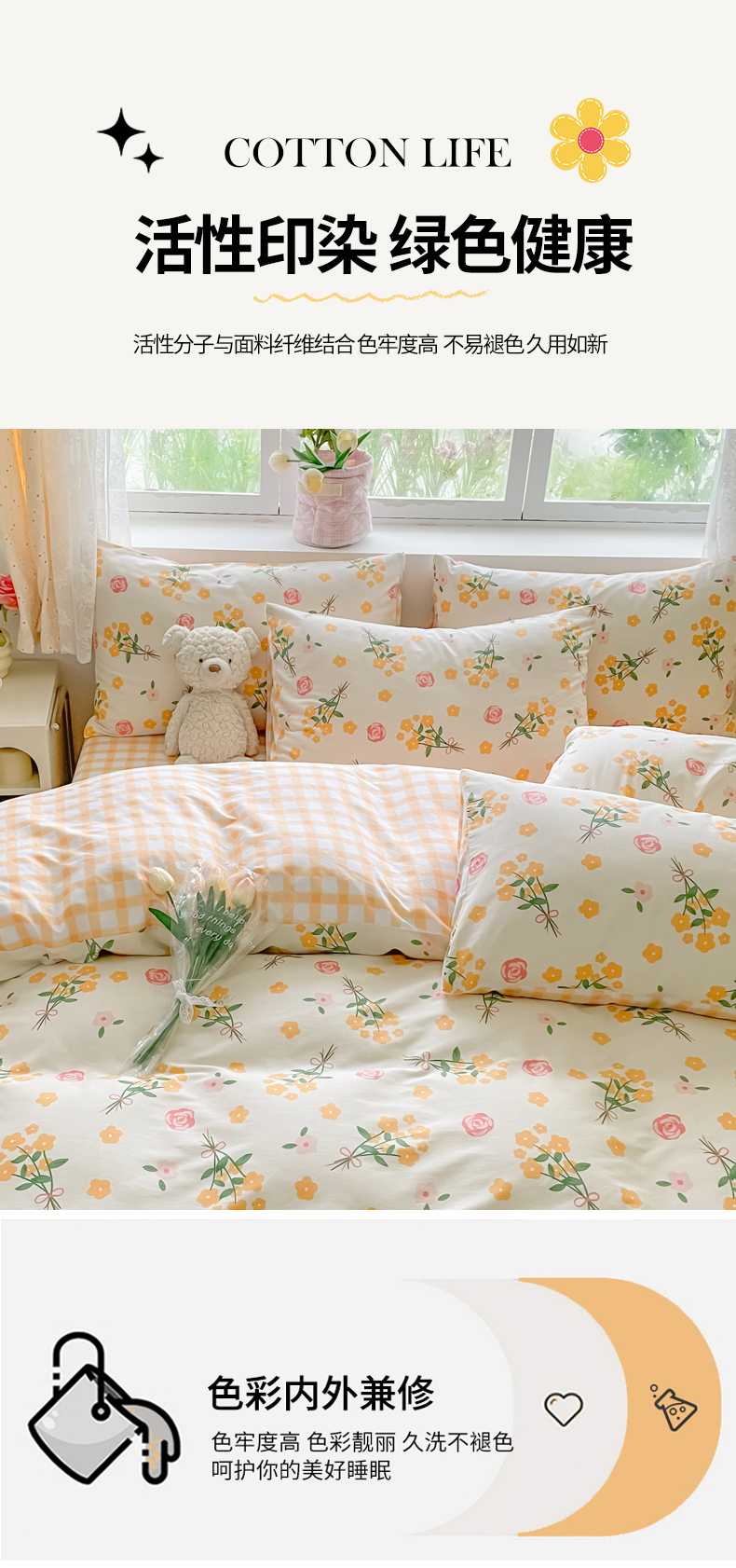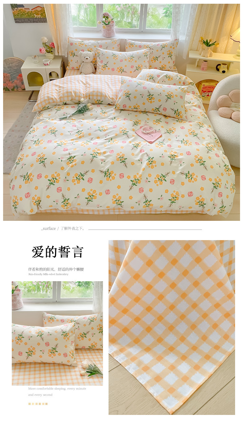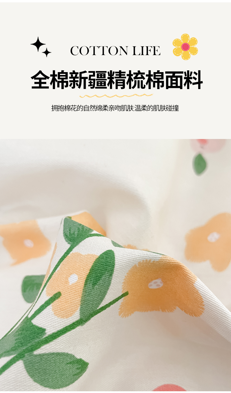 商品名称:(总)洺兰家居 2025年新款13372全棉印花四件套纯棉小清新北欧风花卉床单床笠款套件