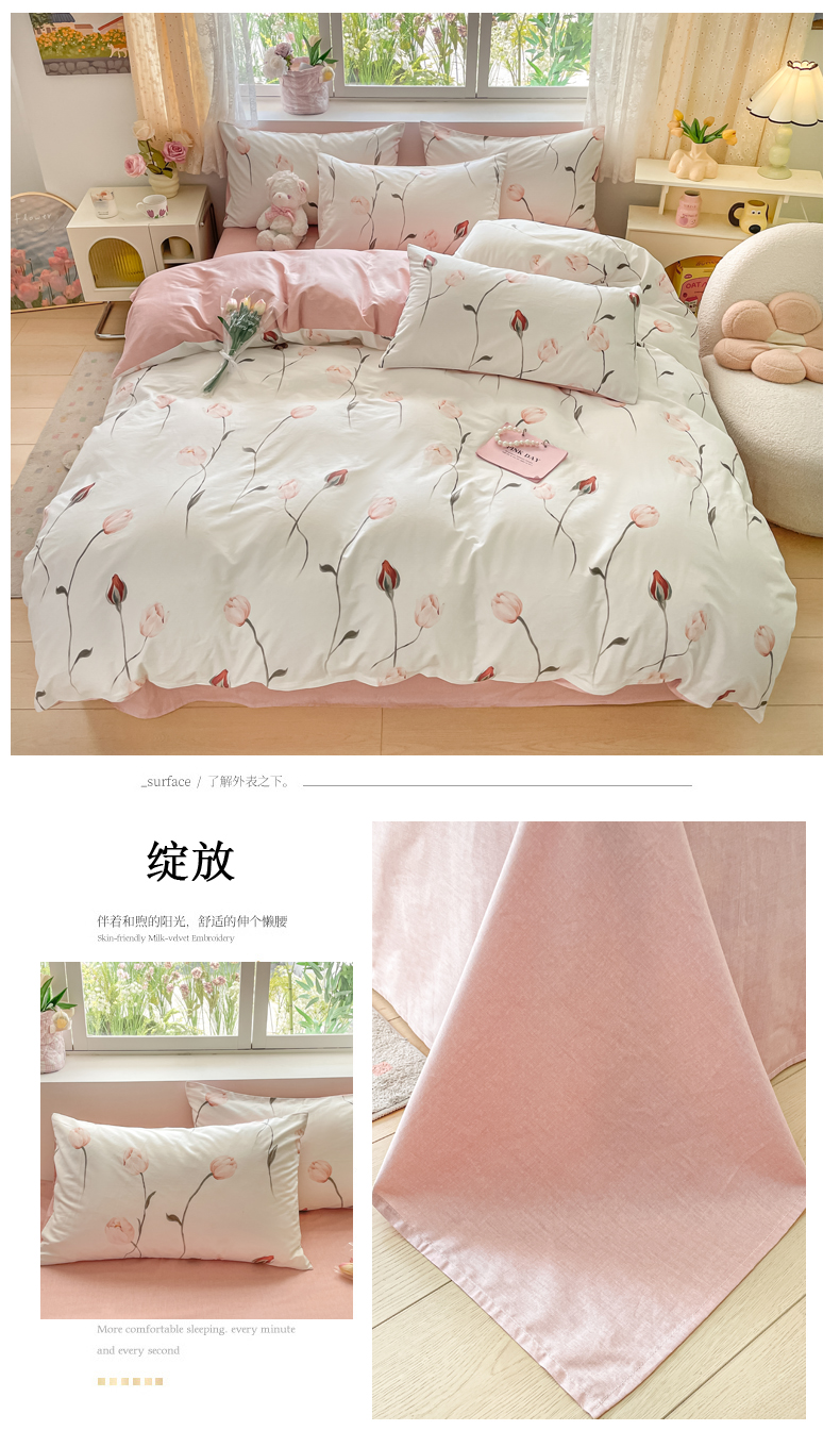 (总)洺兰家居 2025新疆长绒棉高支高密刺绣款绣花四件套-郁金香,郁金香-粉,郁金香-紫