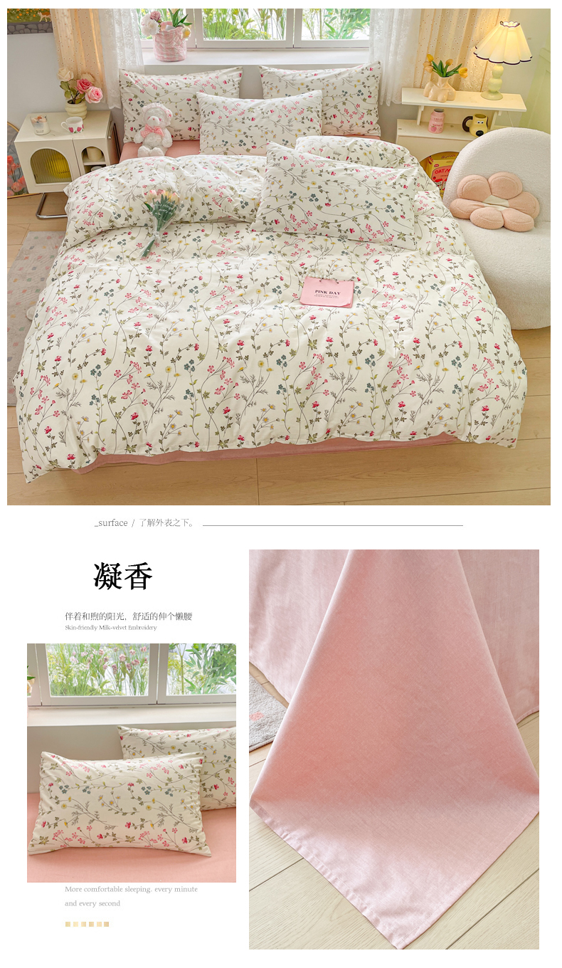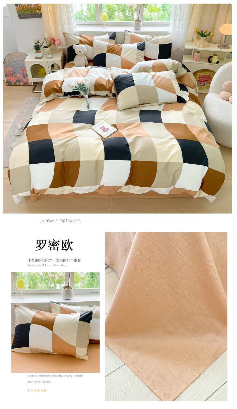 (总)洺兰家居 2026年新疆长绒棉100支秋冬款轻磨毛加厚保暖工艺款四件套床上用品,路易斯-米,千屿-曼卡粉,一见倾心-米,羽纱-卡其,织梦-粉,栀子花开-绿