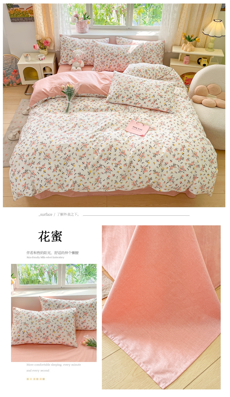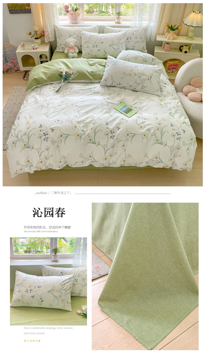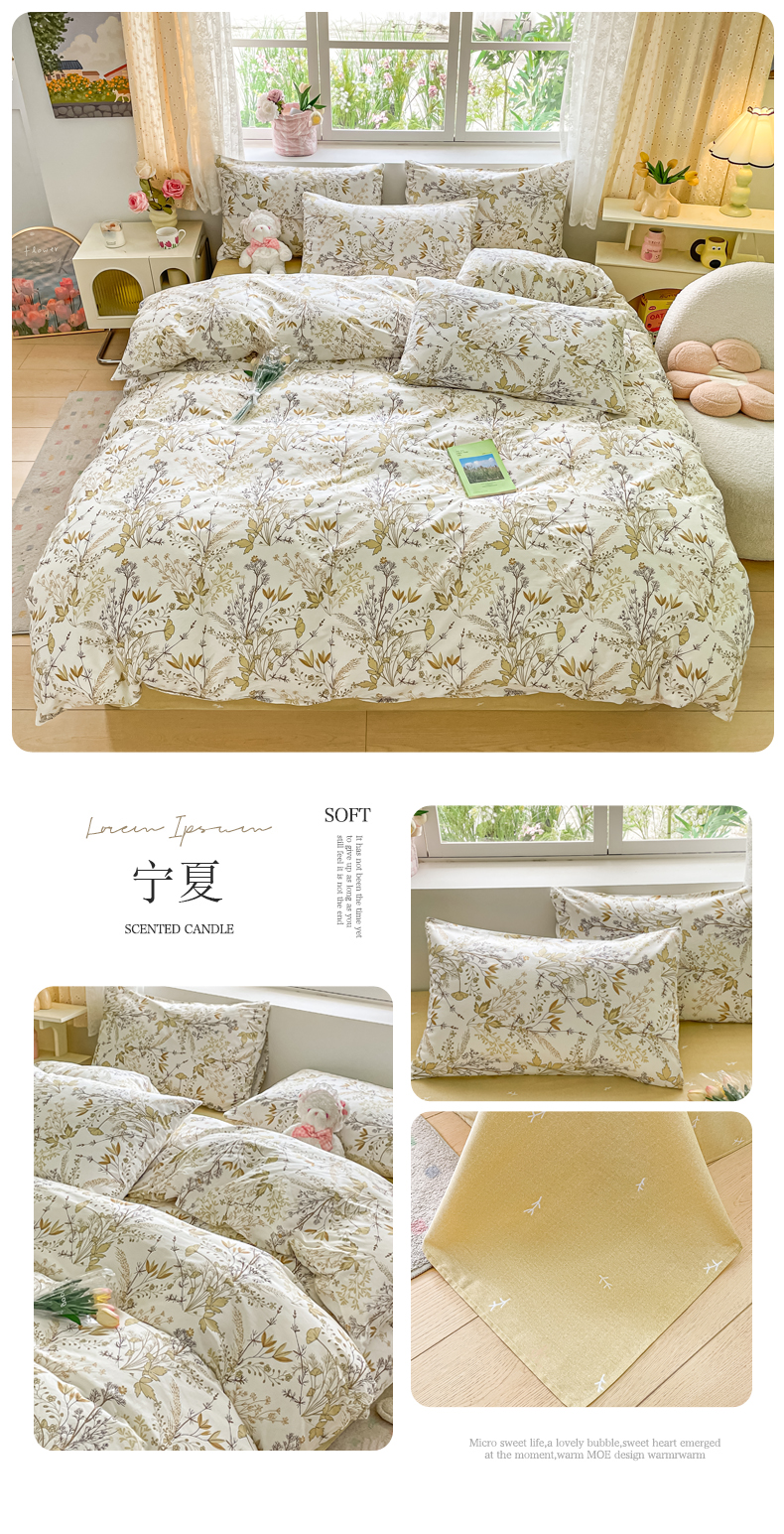 (总)洺兰家居 2025年新款13372全棉印花四件套纯棉小清新北欧风花卉床单床笠款套件