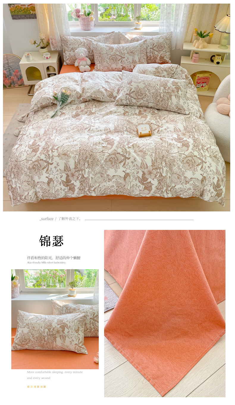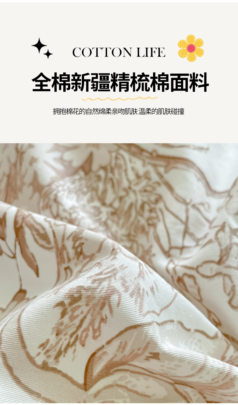 (总)洺兰家居 2026年新疆长绒棉100支秋冬款轻磨毛加厚保暖工艺款四件套床上用品,路易斯-米,千屿-曼卡粉,一见倾心-米,羽纱-卡其,织梦-粉,栀子花开-绿