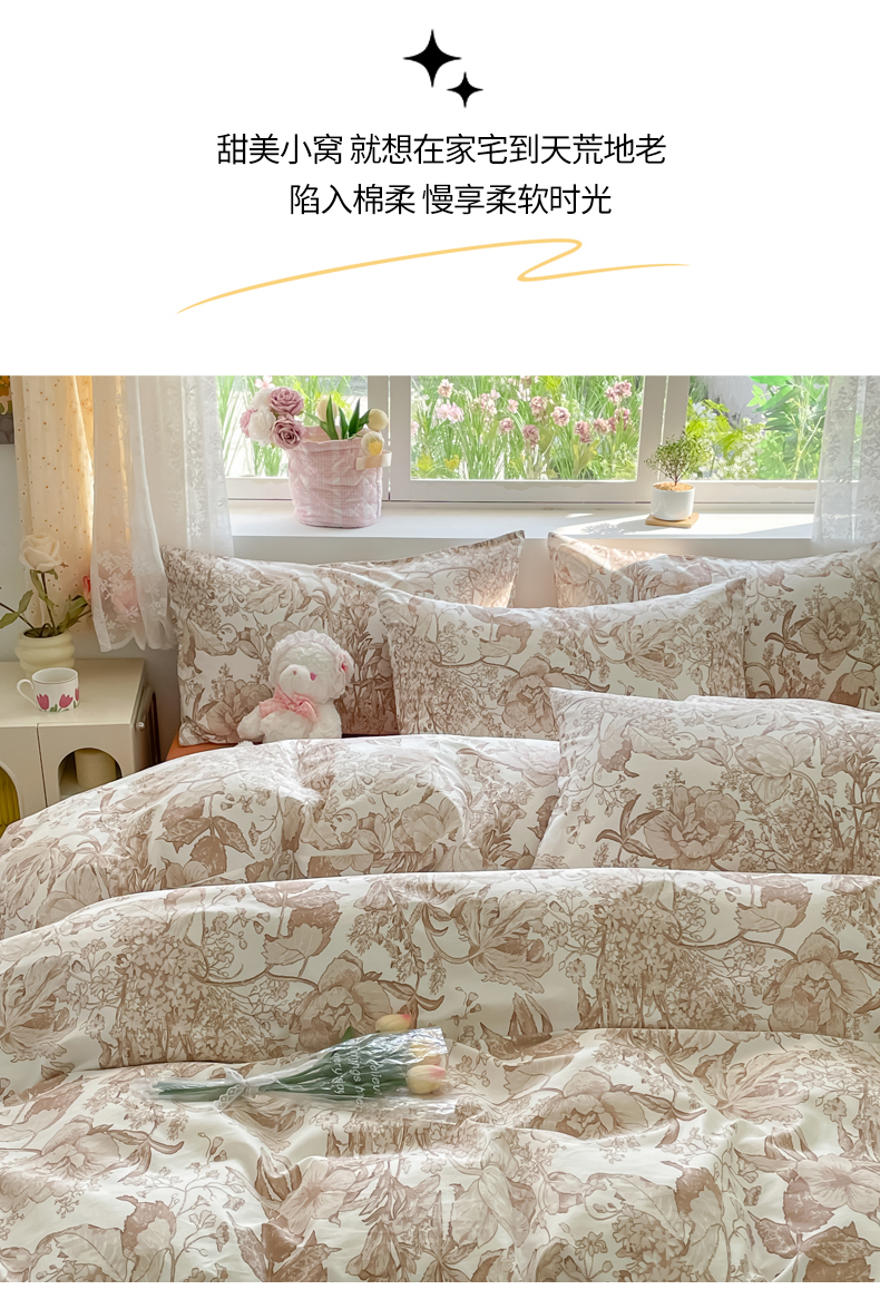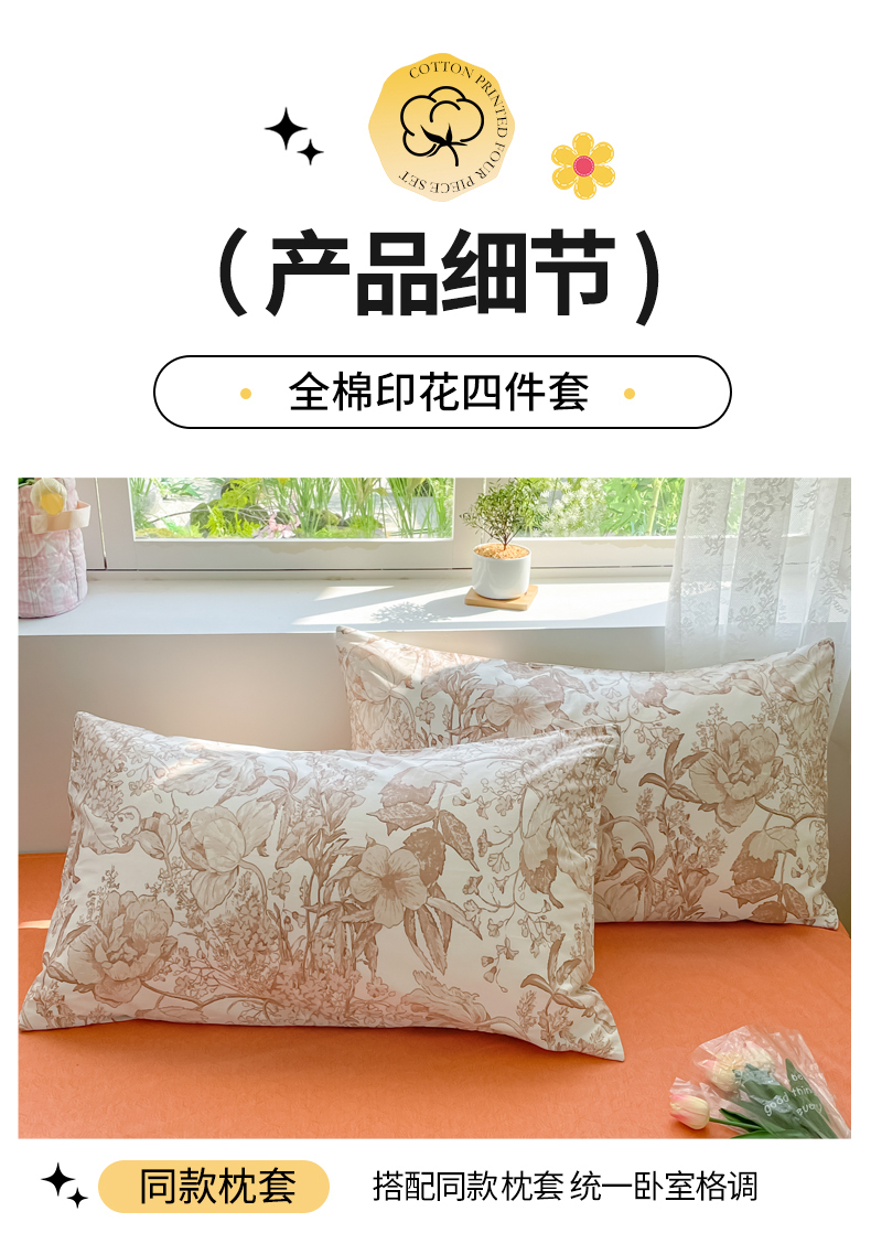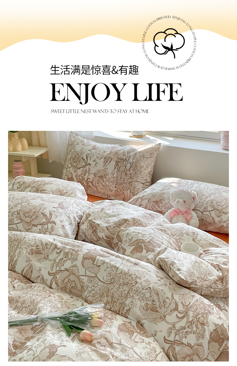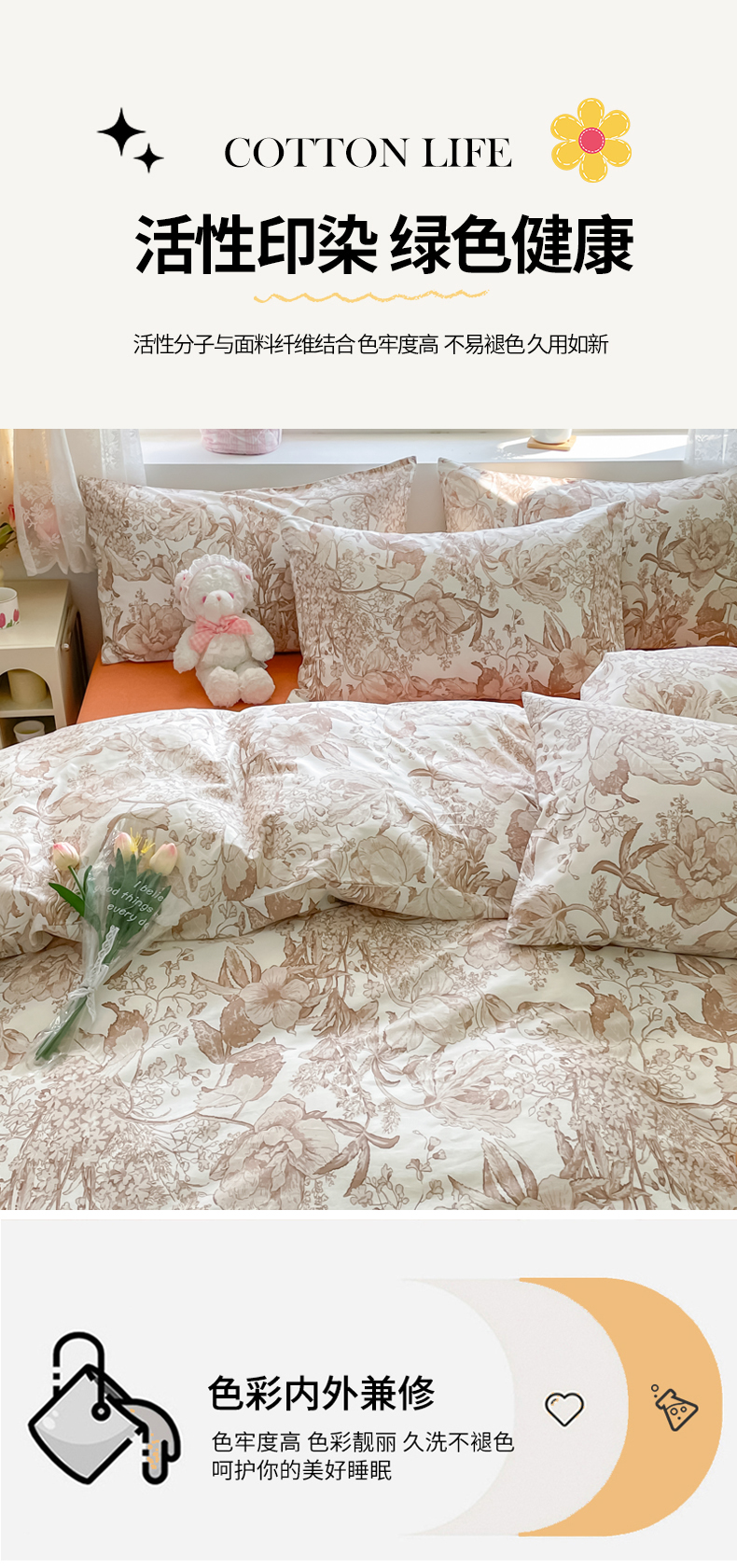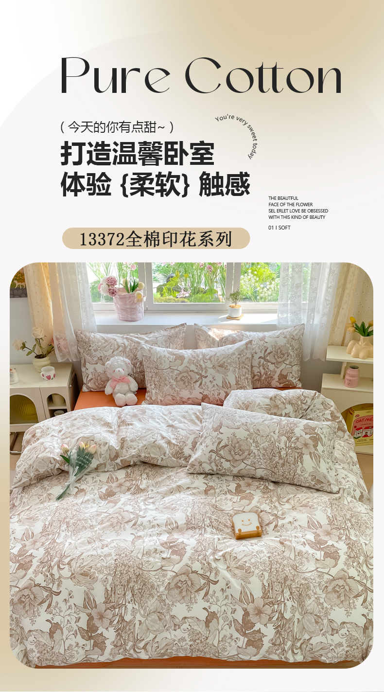 洺兰家居 2025年新款13372全棉印花四件套纯棉小清新北欧风花卉床单床笠款套件 锦瑟