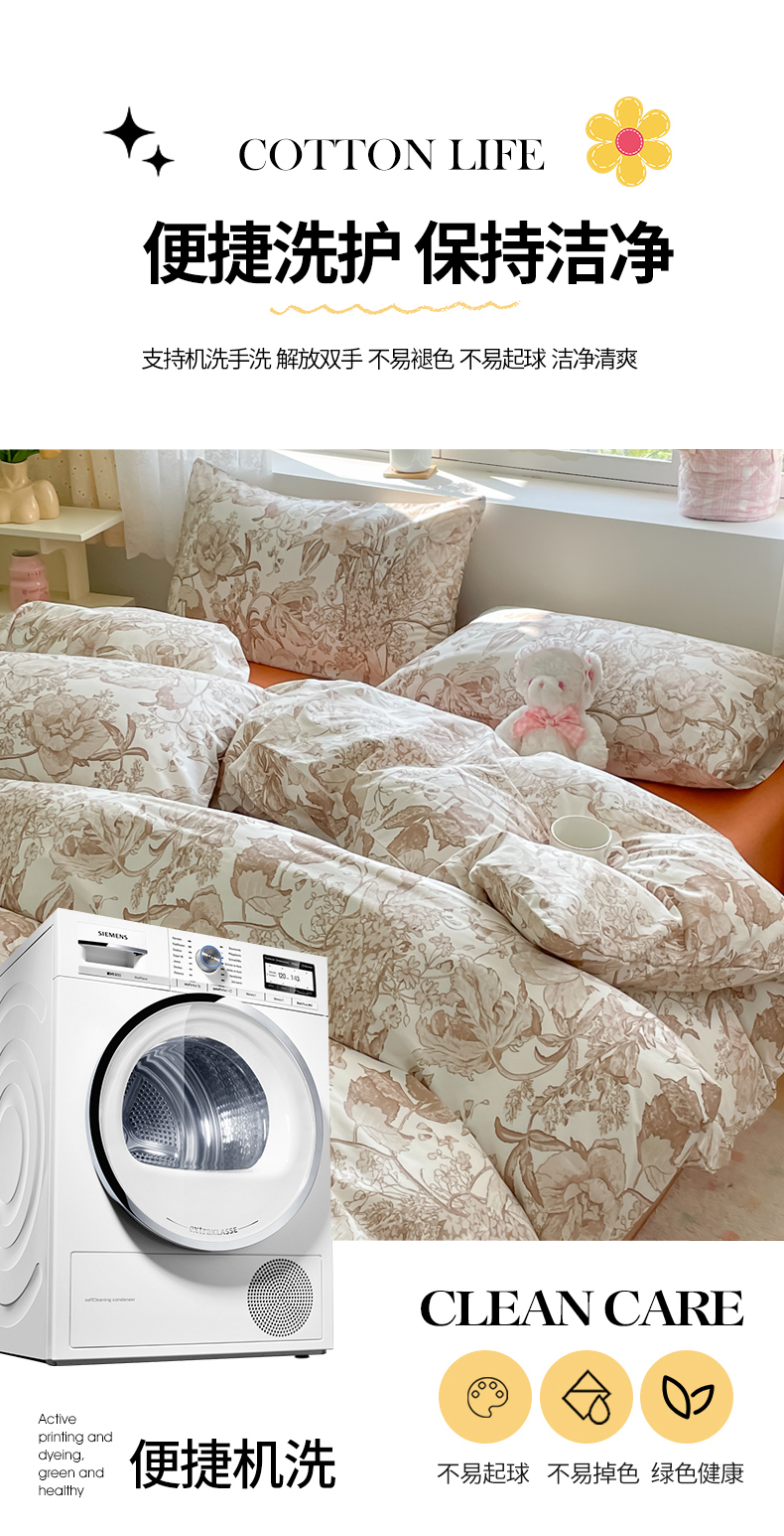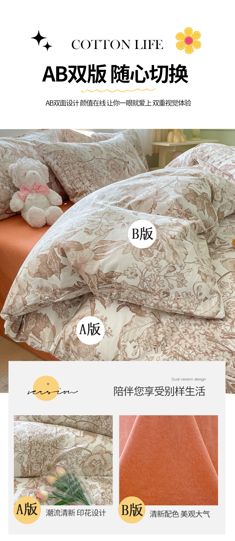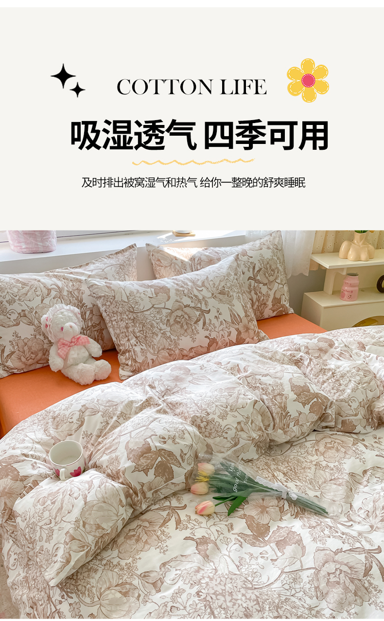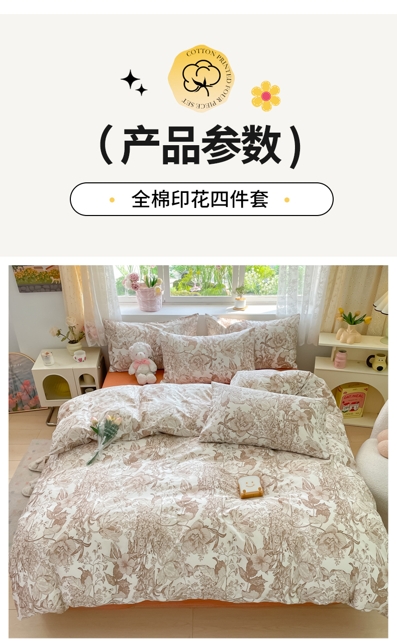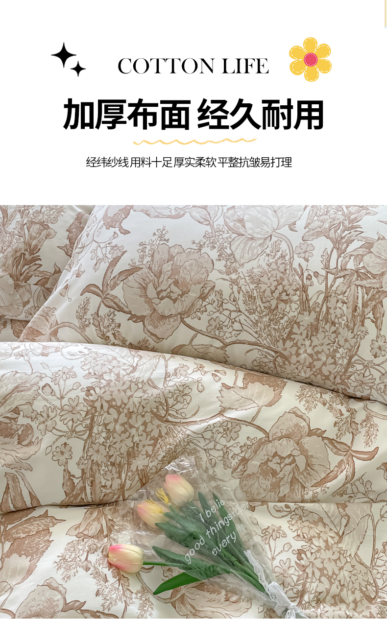 洺兰家居 2025年新款13372全棉印花四件套纯棉小清新北欧风花卉床单床笠款套件 锦瑟