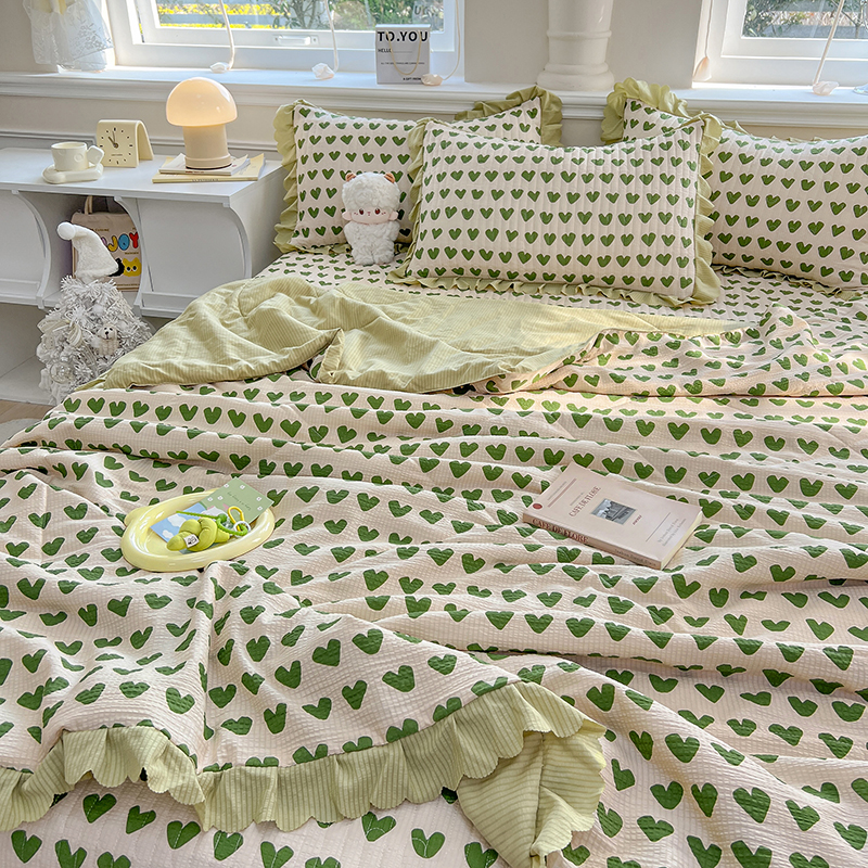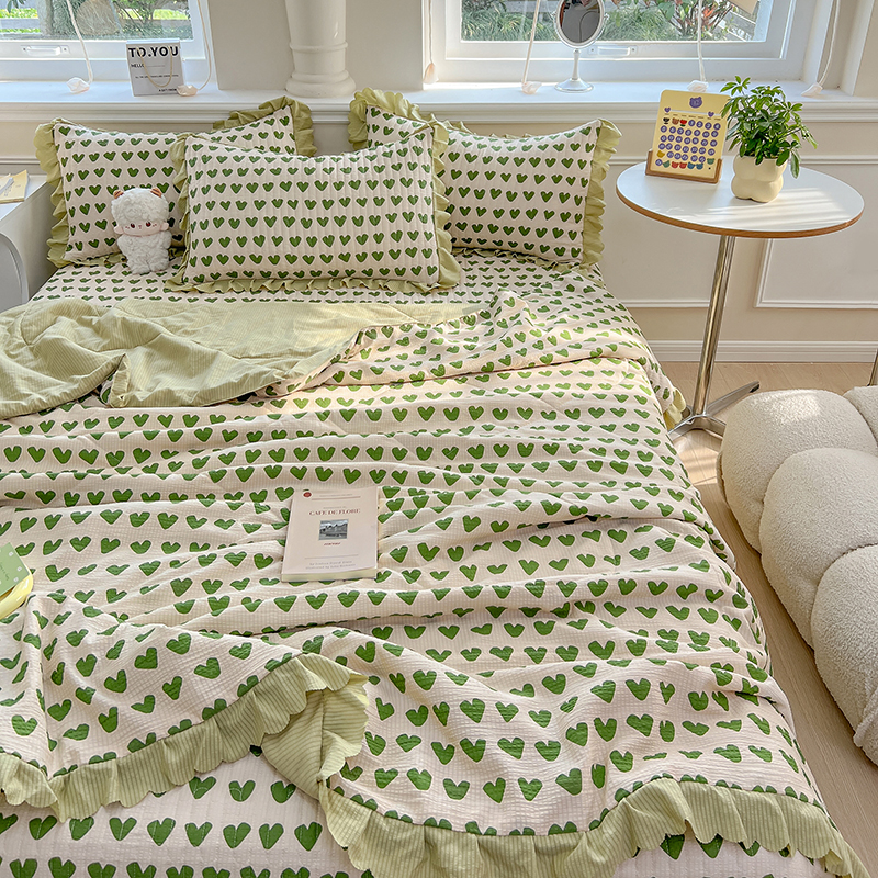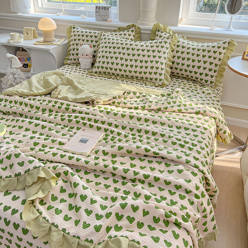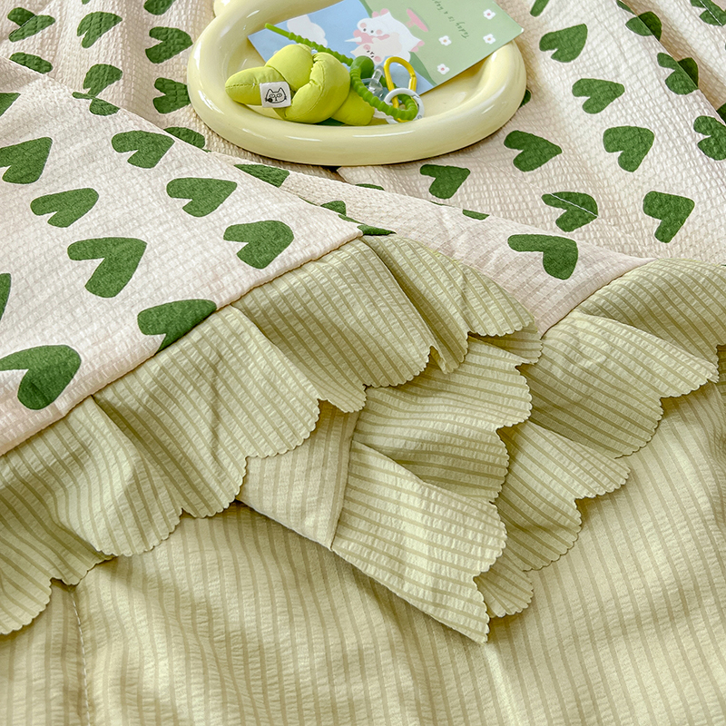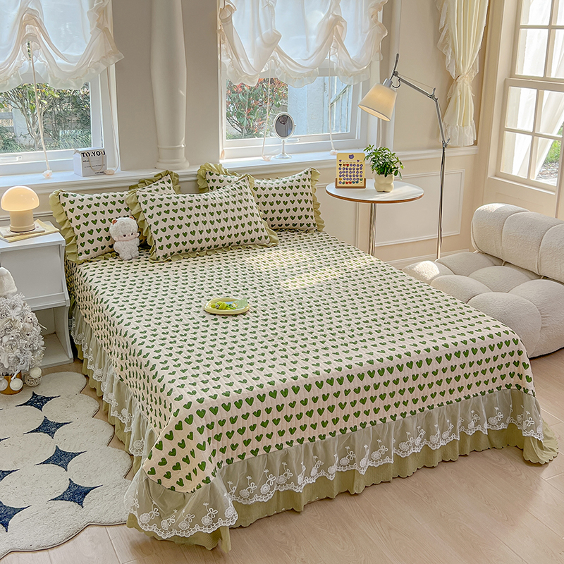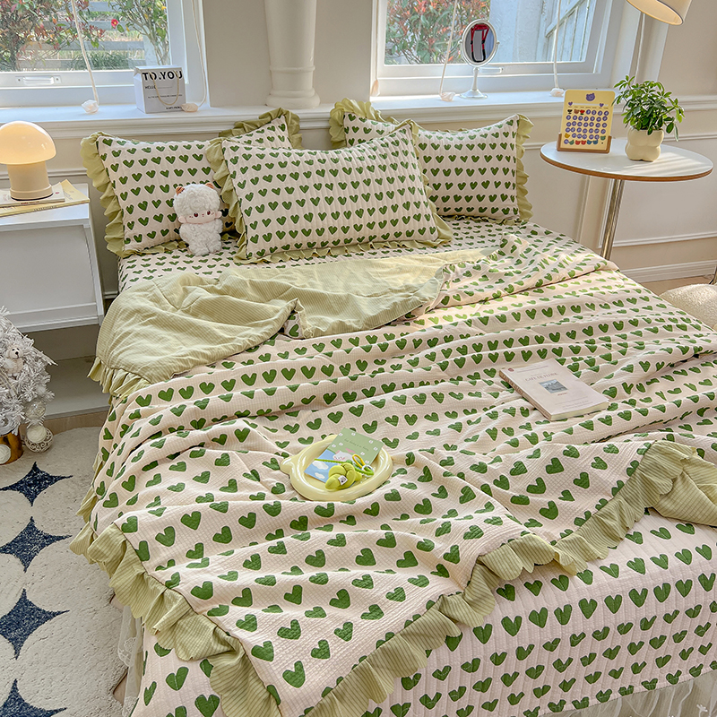 当前位置: 91家纺网 > 商品网购 > 床品套件 > 四件套 > 夏被四件套 > 雅眠居 2024直播爆款泡泡棉床盖款夏被四件套双层蕾丝花边夹棉床裙款三件套 甜心绿