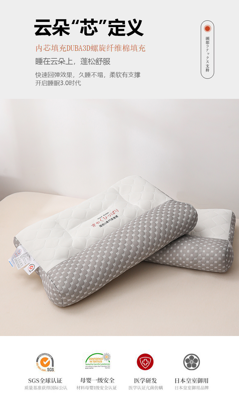当前位置: 91家纺网 > 商品网购 > 枕头/枕芯/保健枕/颈椎枕 > 普通枕芯 > 贵夫人 2024新款A类日式反牵引乳胶护颈枕枕头枕芯 浅灰 低枕48*74cm/对