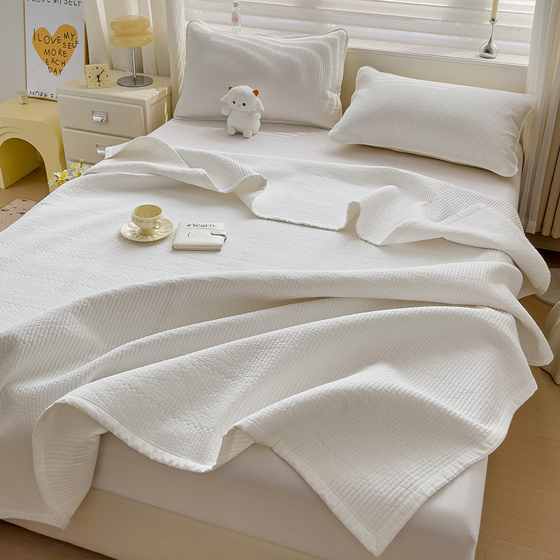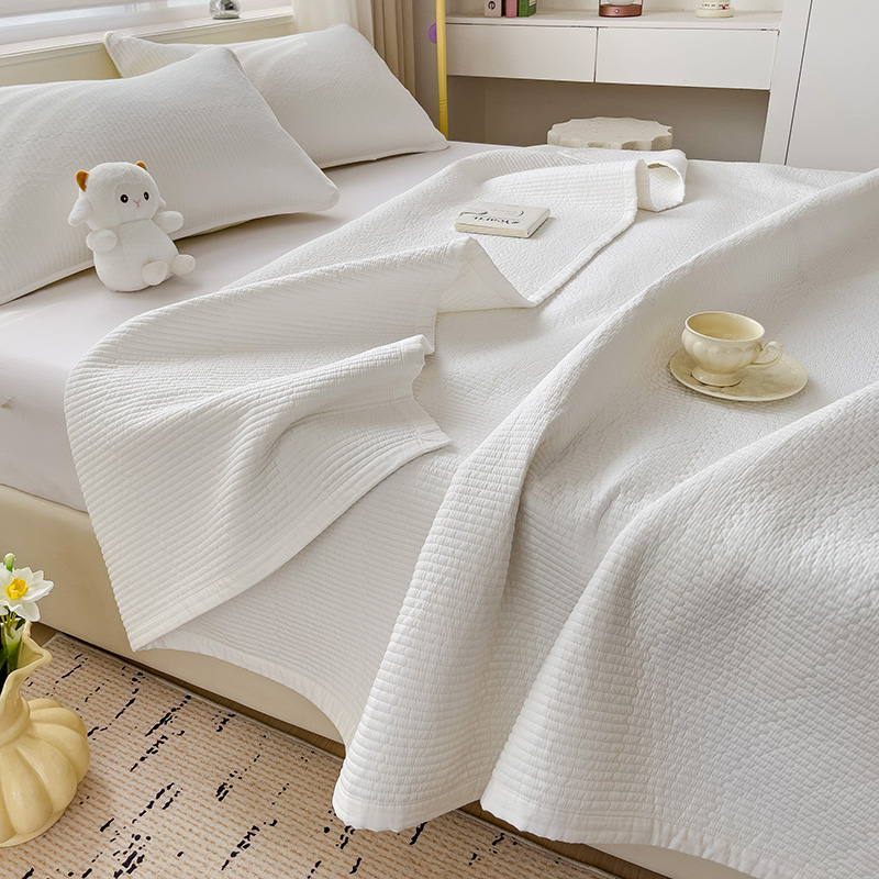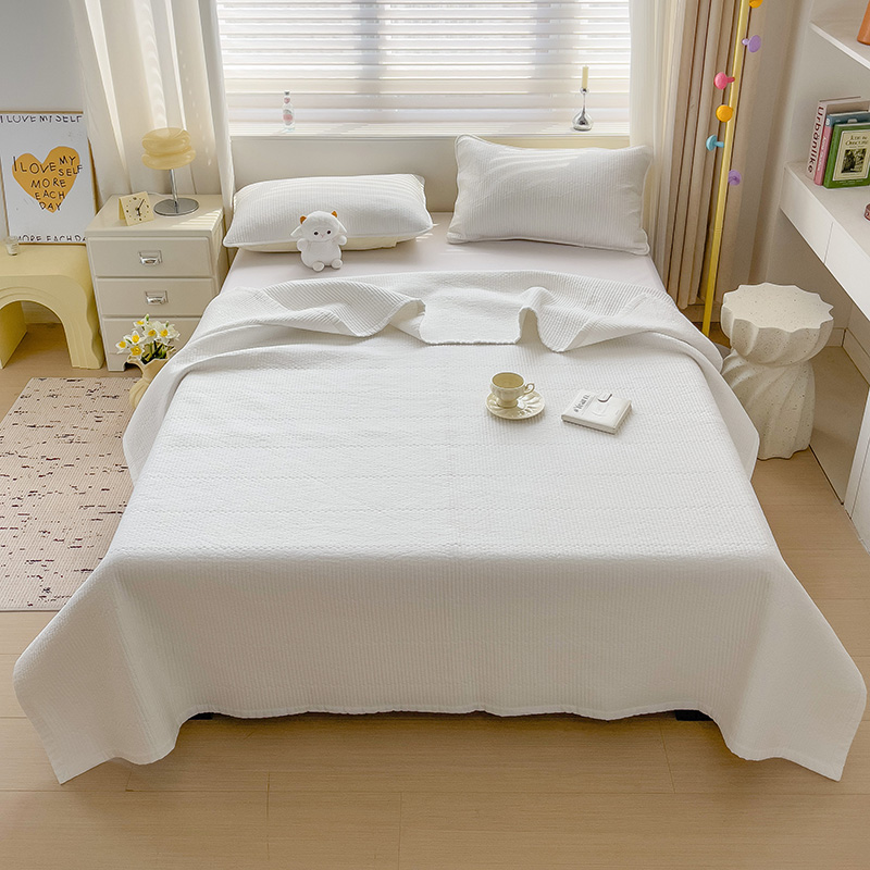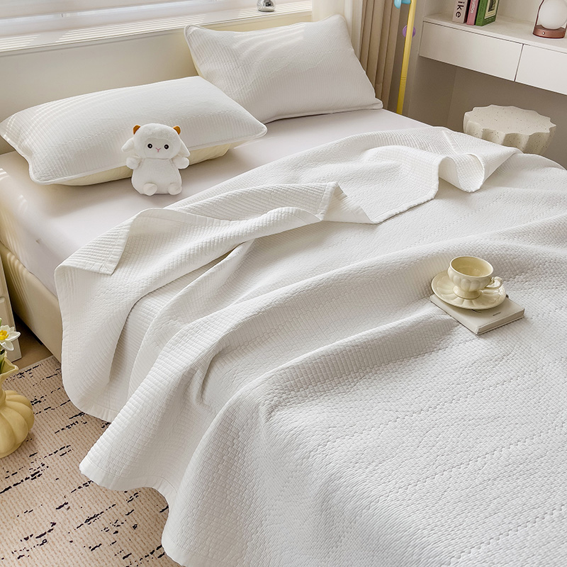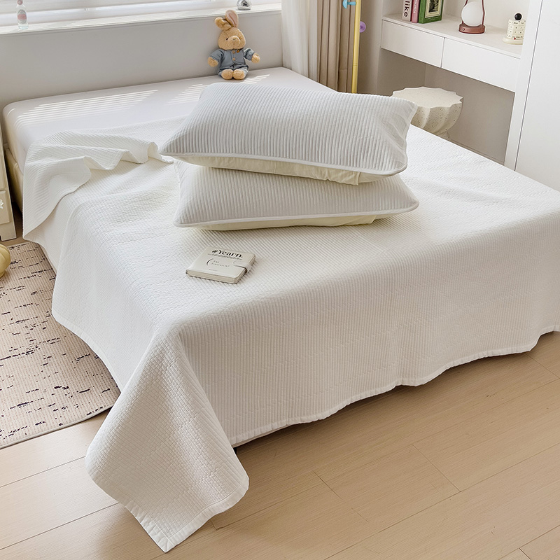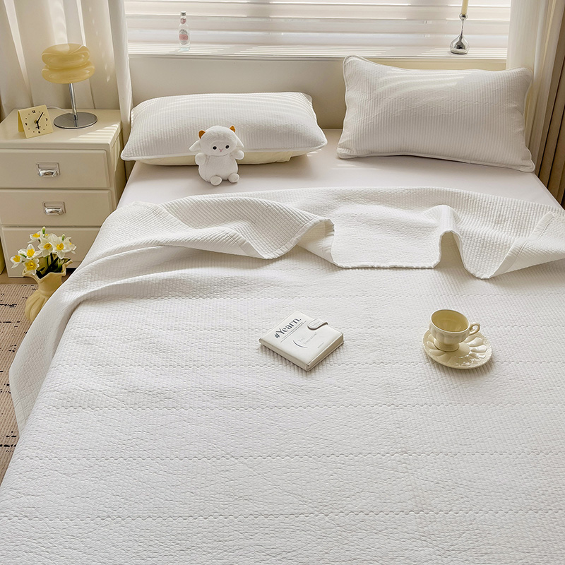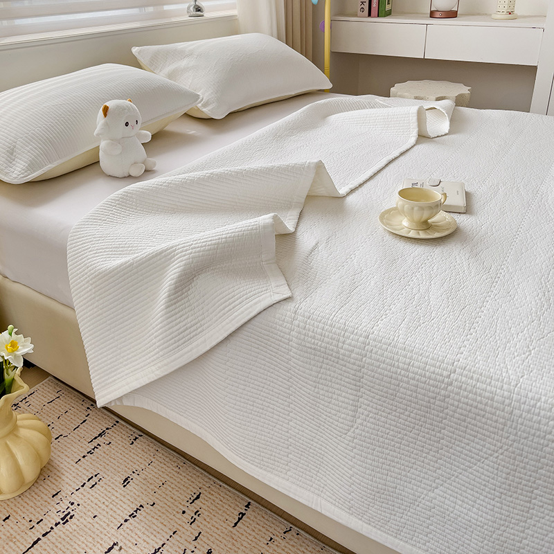 羽爱家纺 2024新款双面纯色全棉水洗床盖 奶白