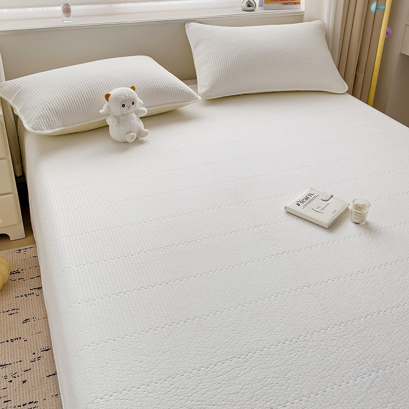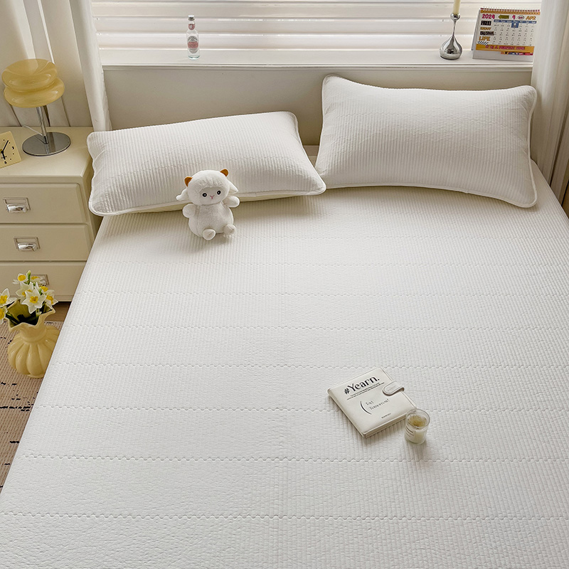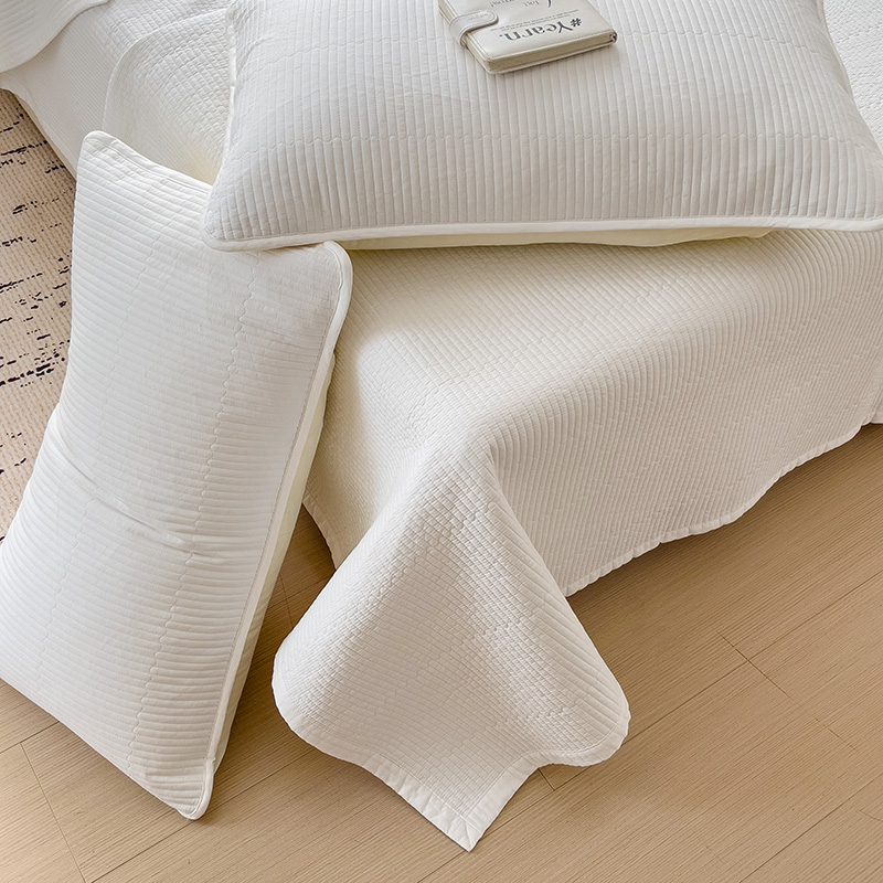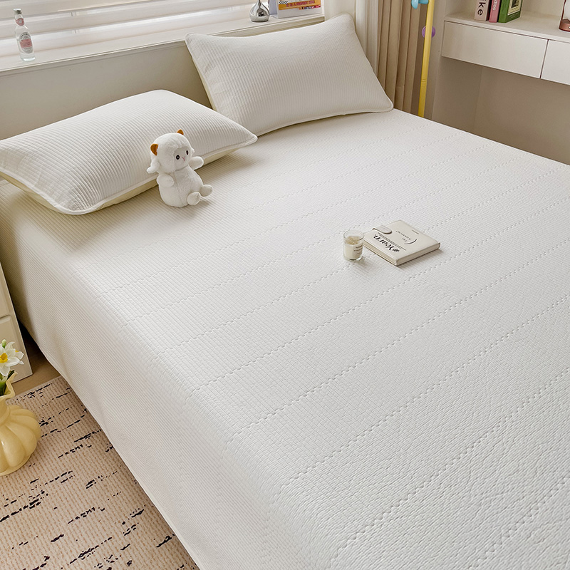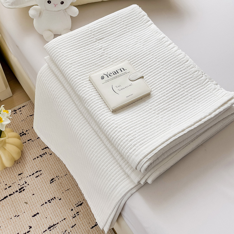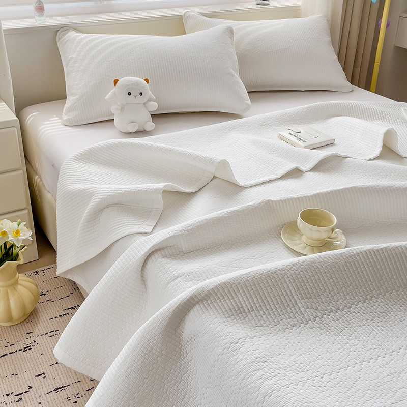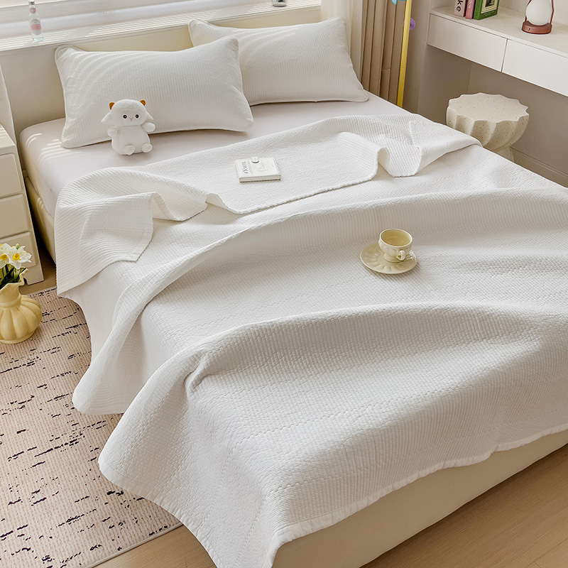 羽爱家纺 2024新款双面纯色全棉水洗床盖 奶白