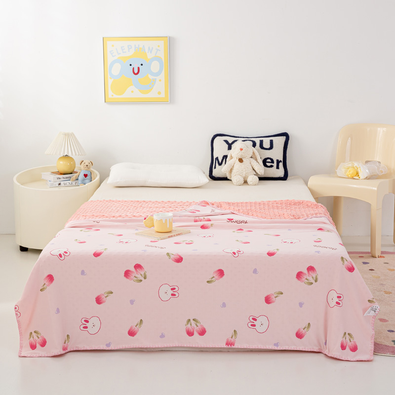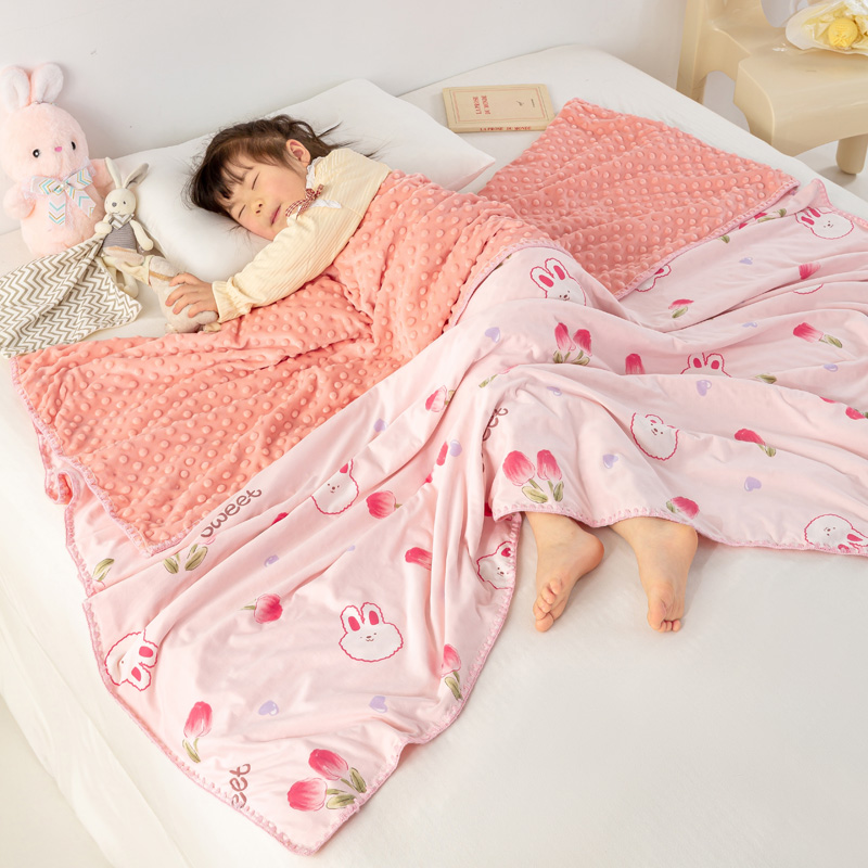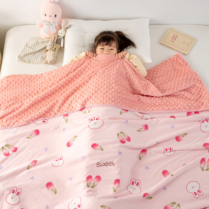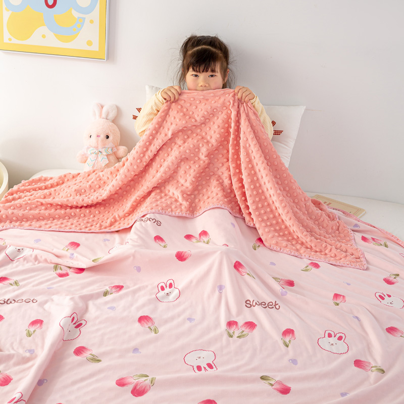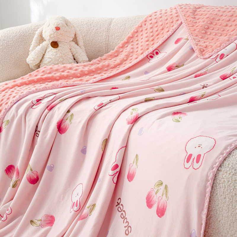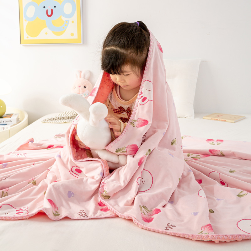 柏薇 2024新款儿童凉感针织豆豆绒盖毯 郁金香兔