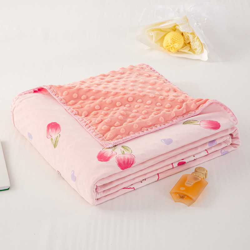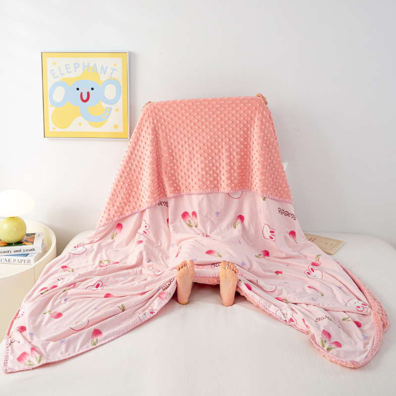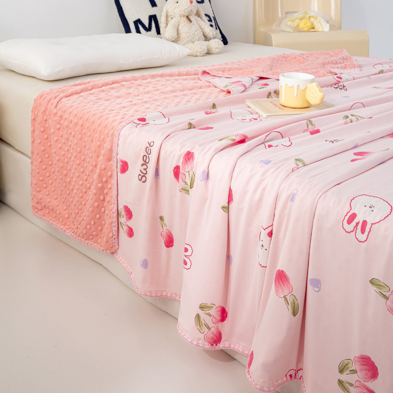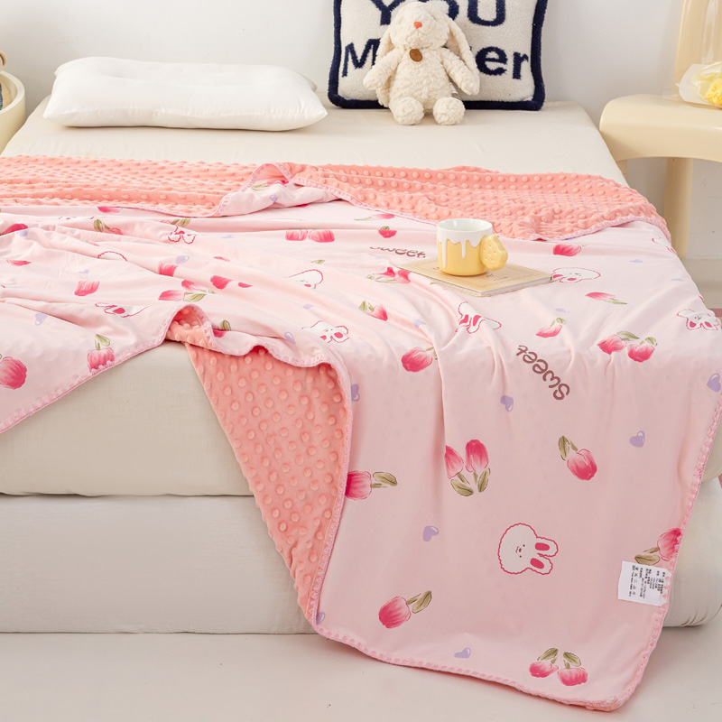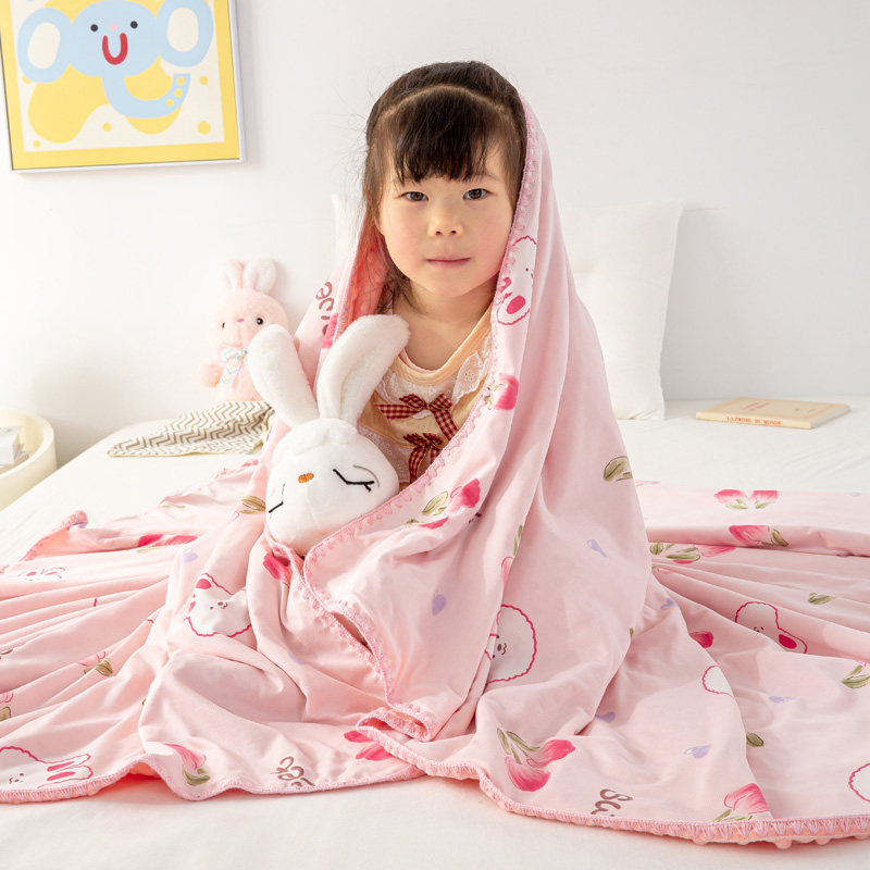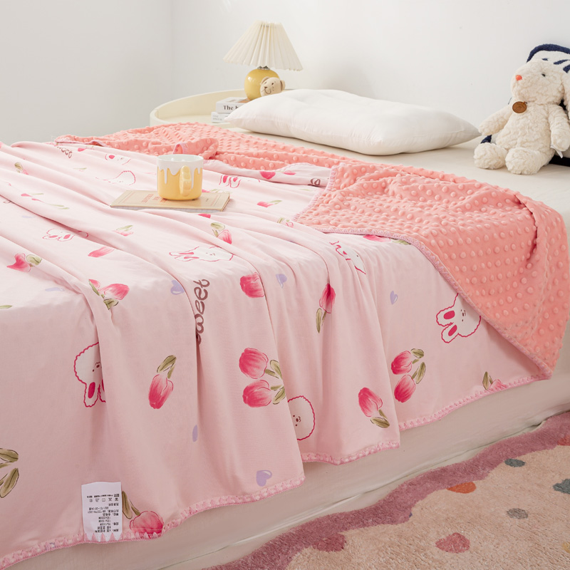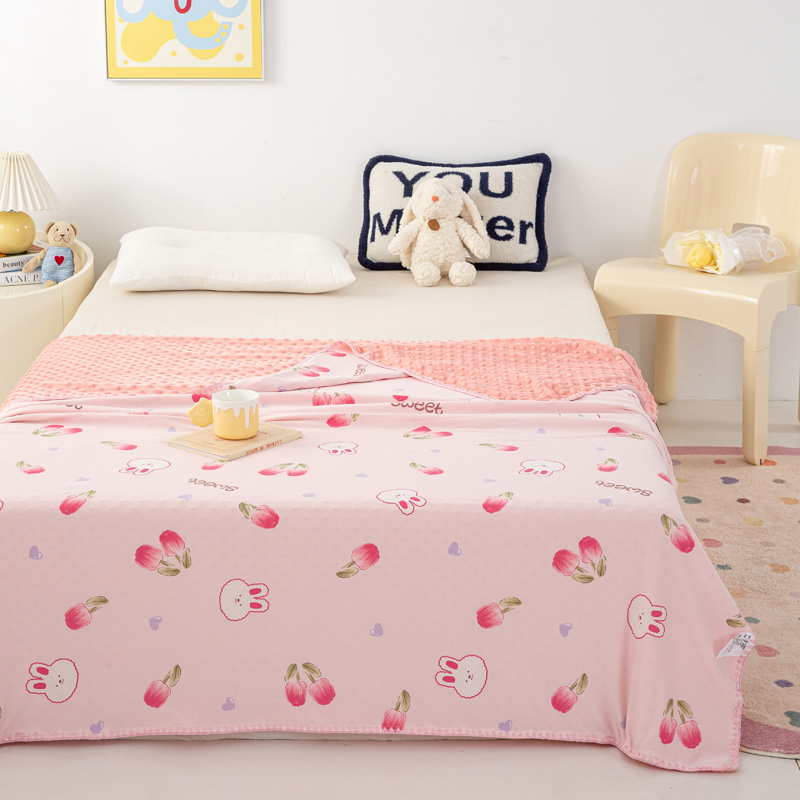 柏薇 2024新款儿童凉感针织豆豆绒盖毯 郁金香兔