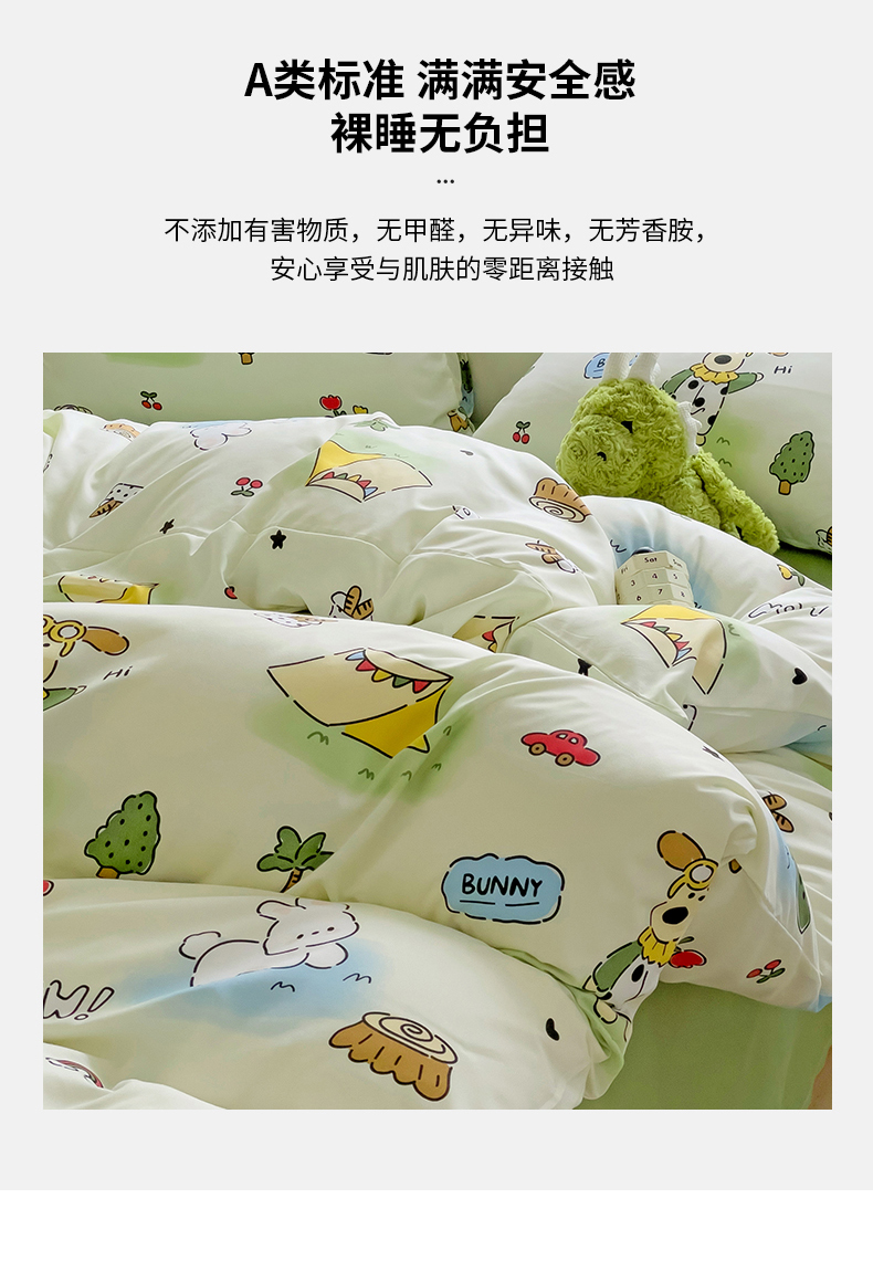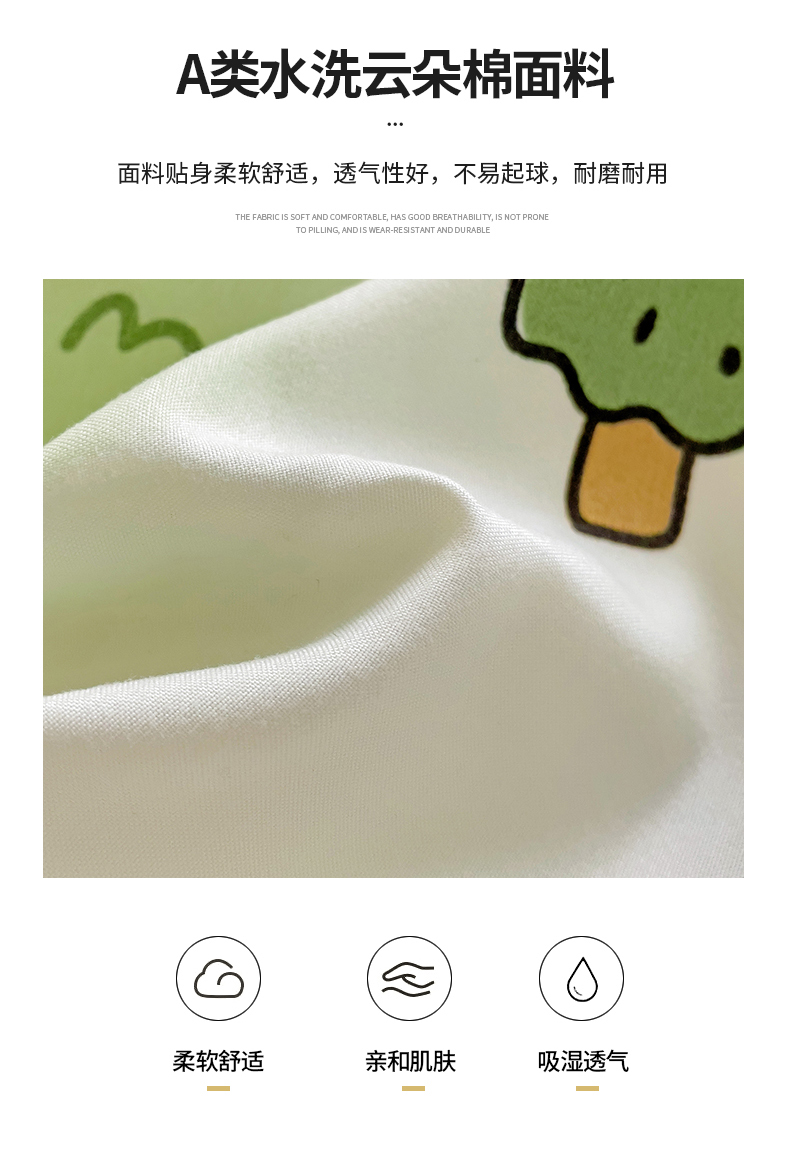 商品名称:慕晨 2024新款A类母婴级水洗云朵棉单被套床上用品卡通儿童宿舍 春游日记