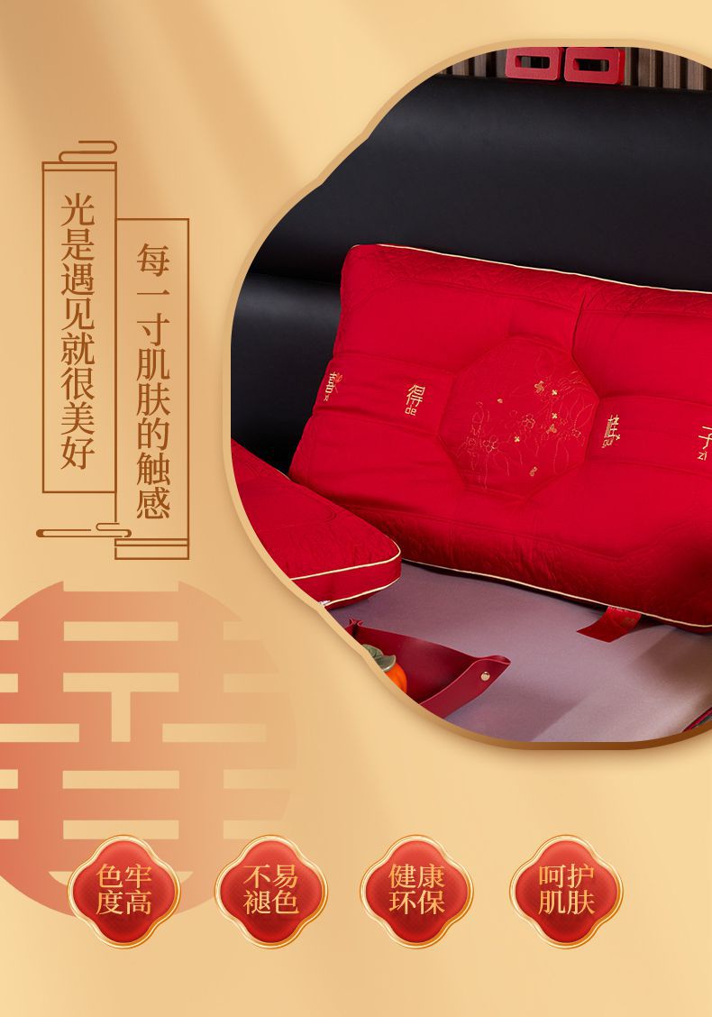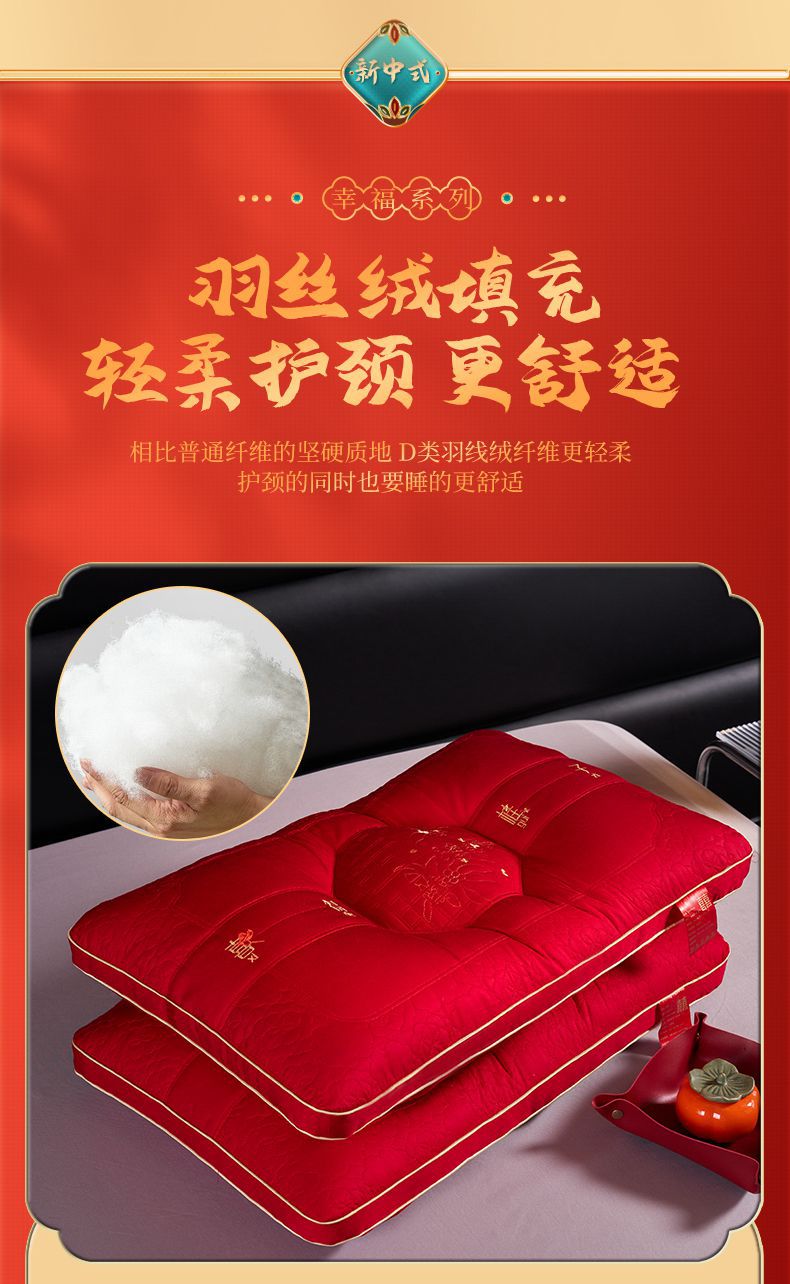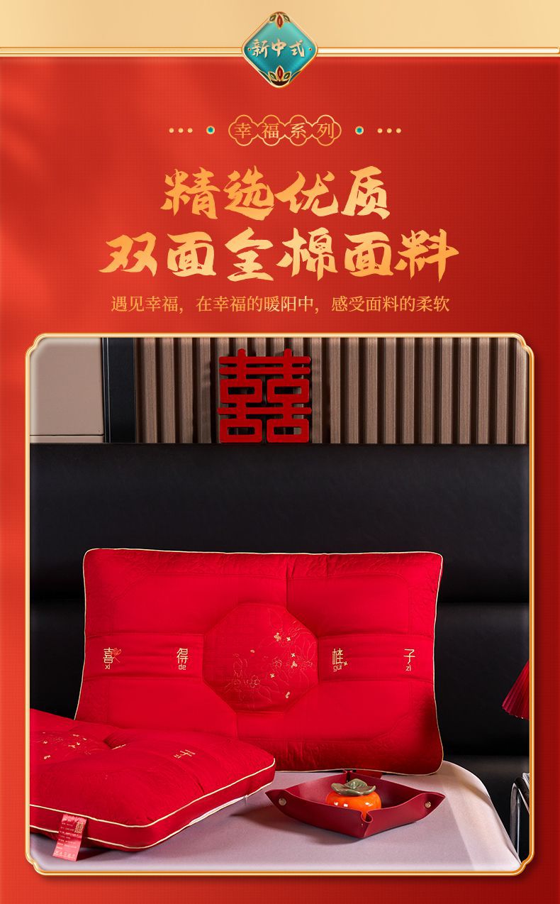 当前位置: 91家纺网 > 商品网购 > 枕头/枕芯/保健枕/颈椎枕 > 普通枕芯 > 贤内助 2024新款全棉婚庆羽丝枕保健枕枕头枕芯系列 喜得贵子 48*74cm/只
