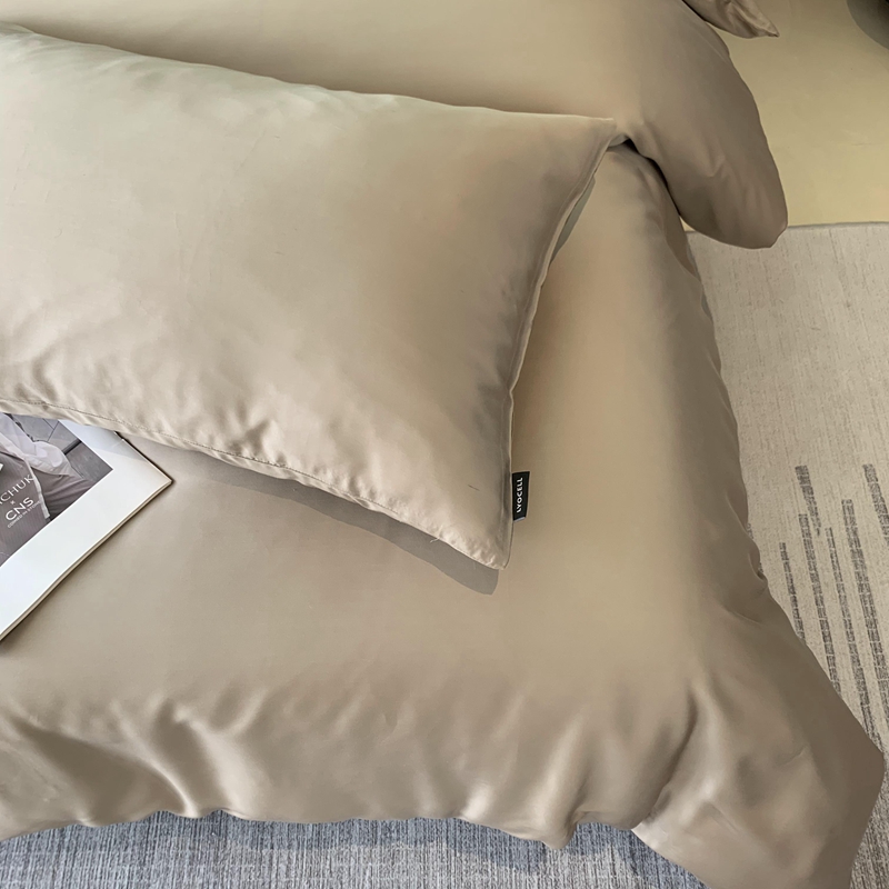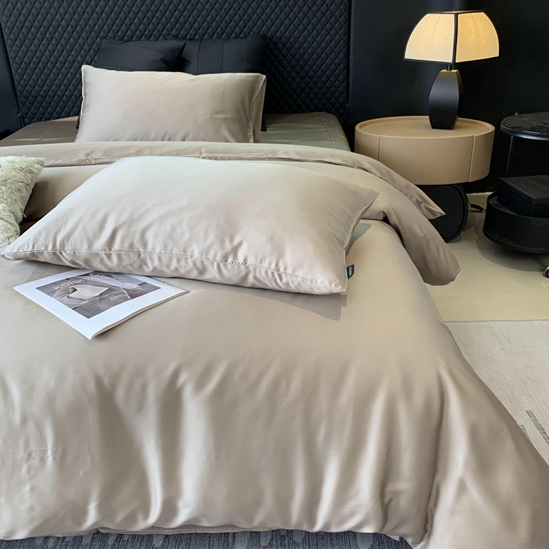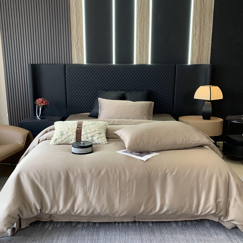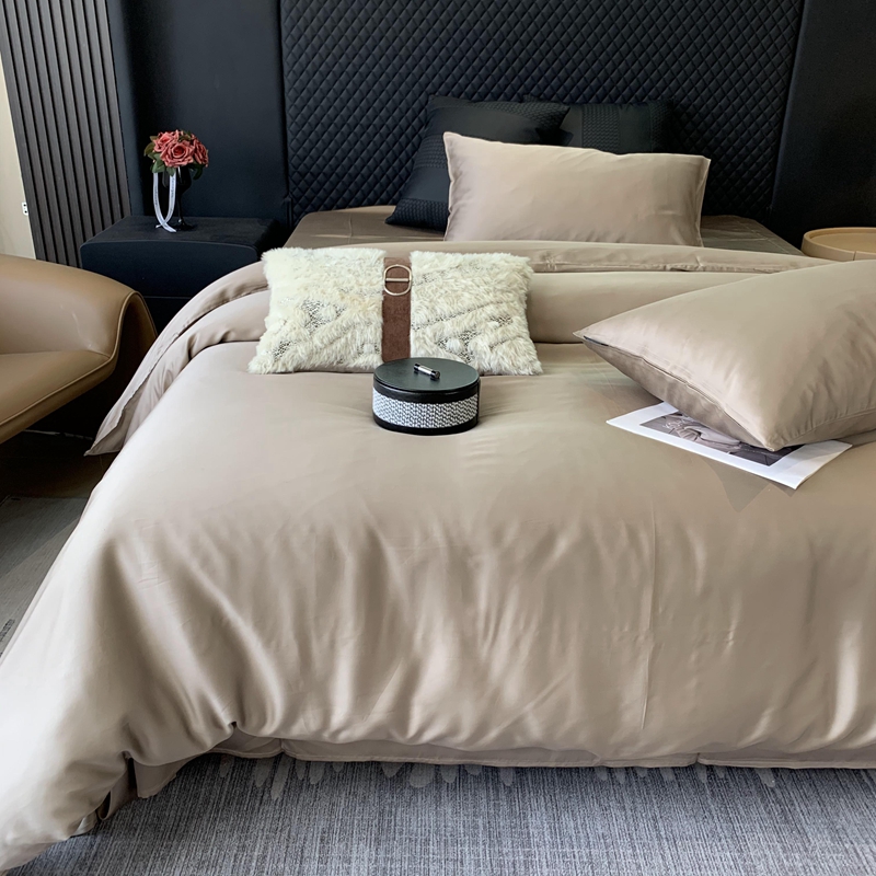 莱豫家纺 2024新款80支莱赛尔天丝纯色双拼四件套 漫步云端棕