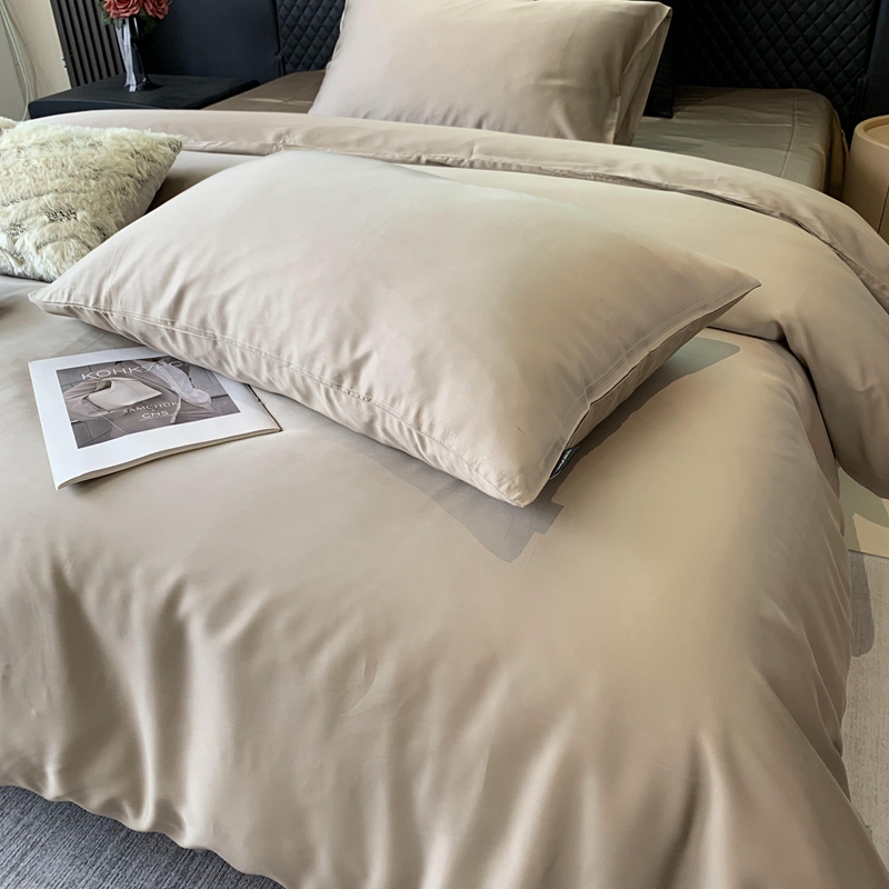 商品名称:莱豫家纺 2024新款80支莱赛尔天丝纯色双拼四件套 漫步云端棕