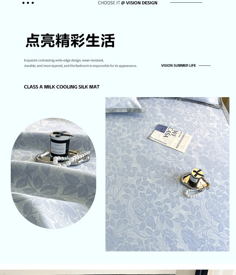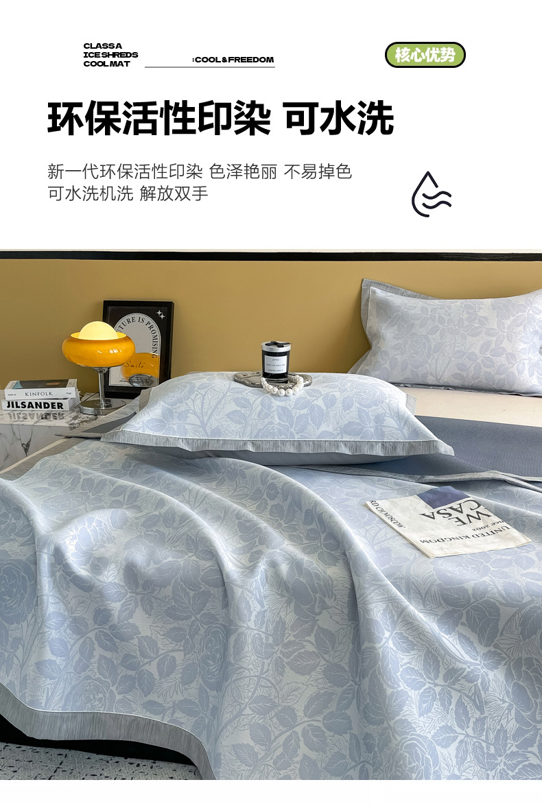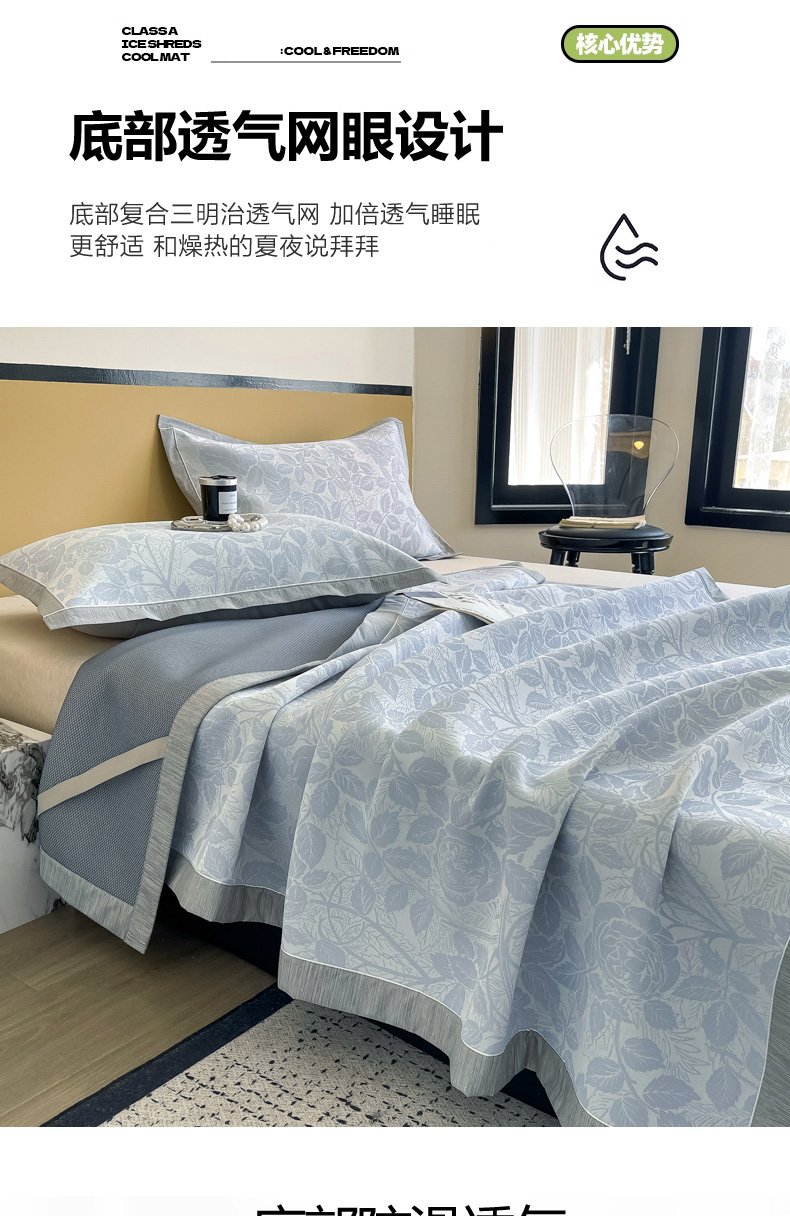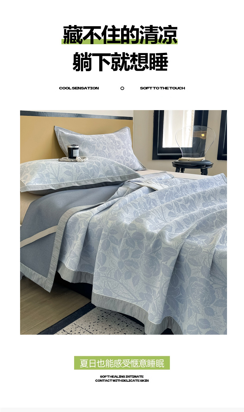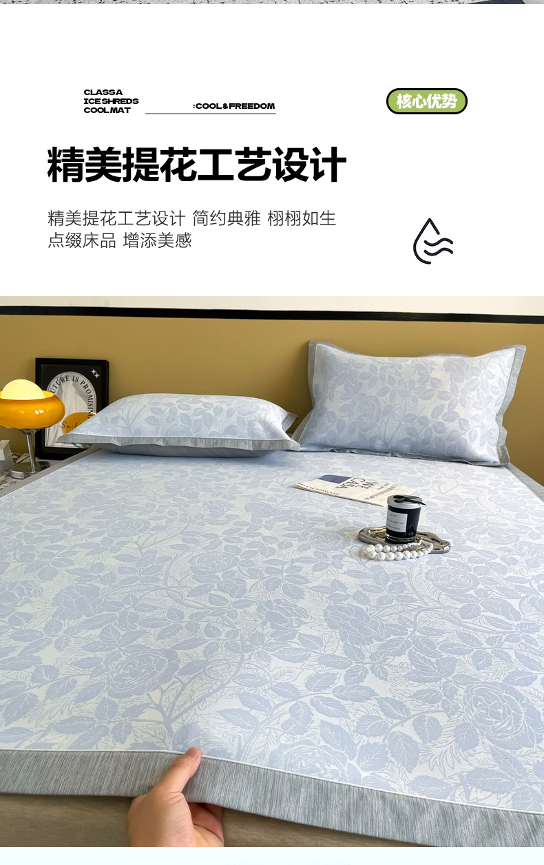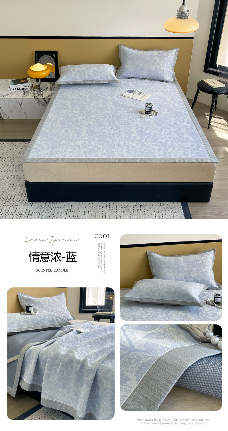 倾慕 2024新款提花凉感凉席 床席款情意浓-蓝