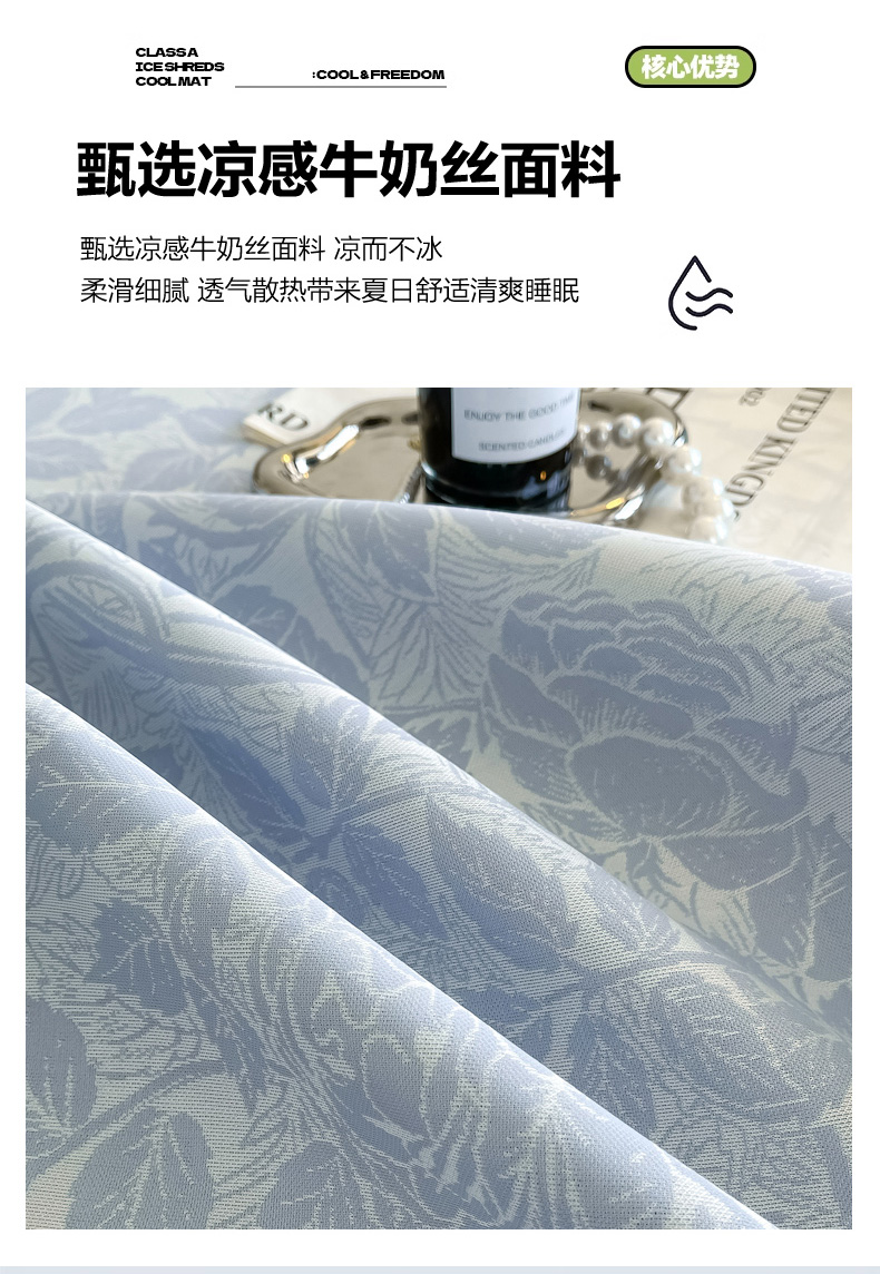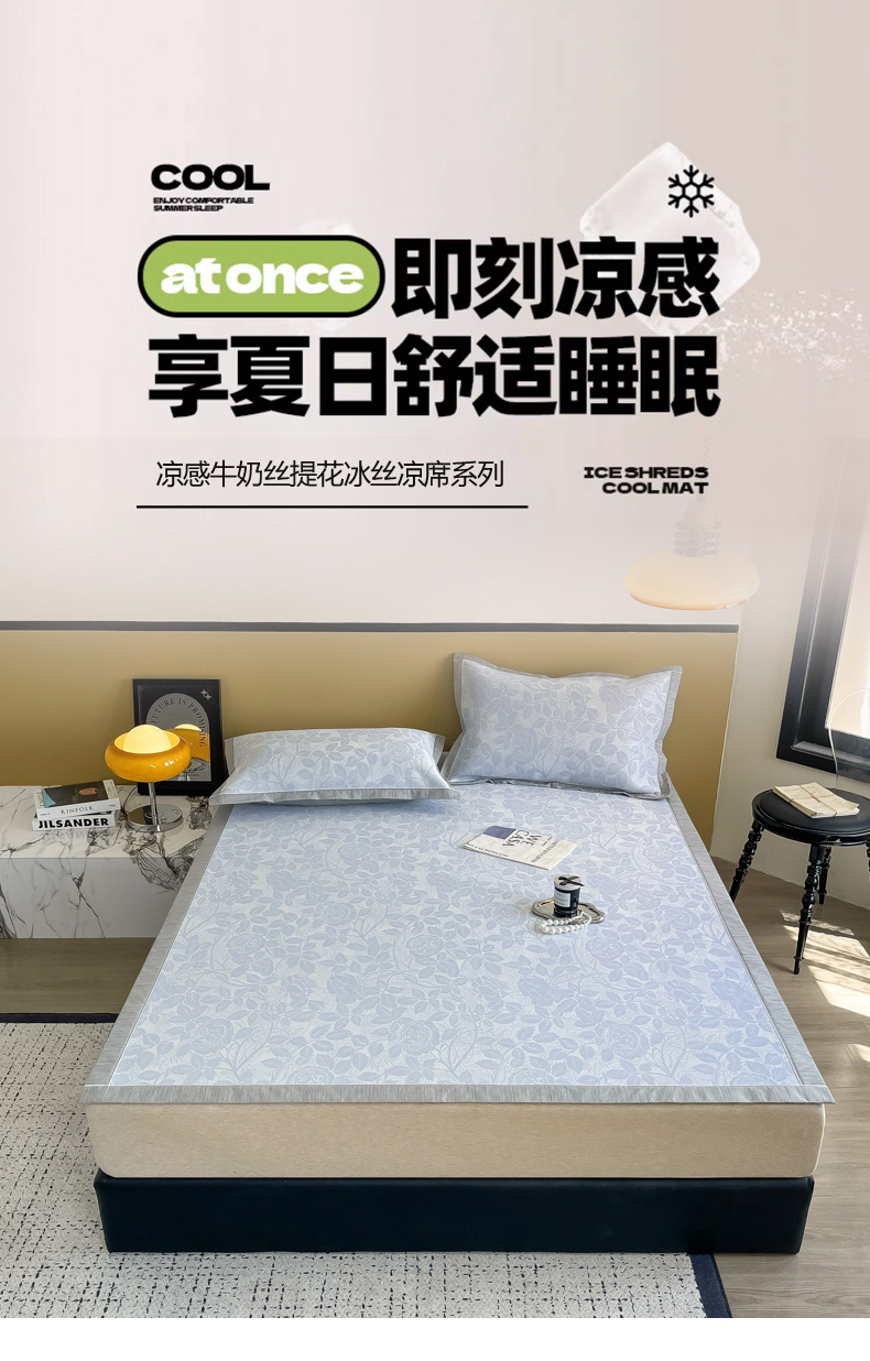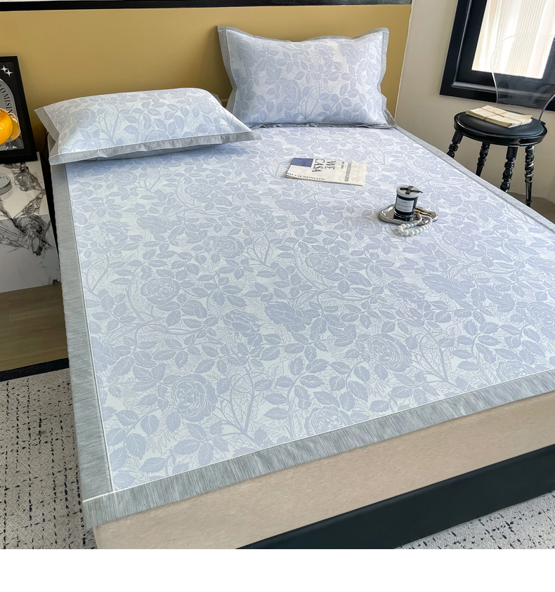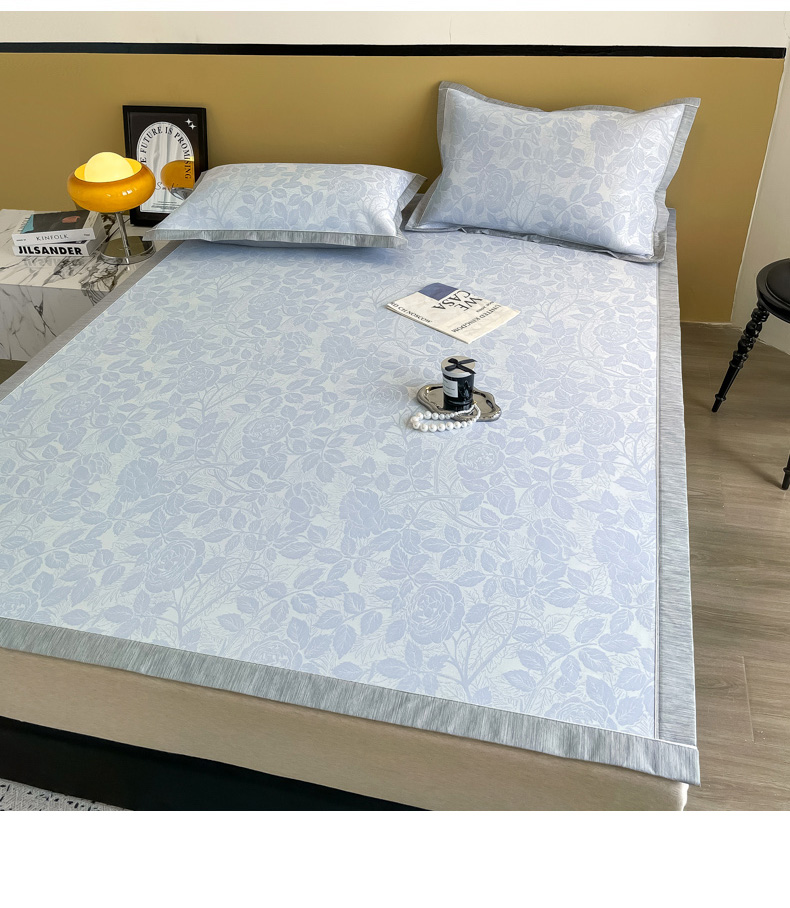 商品名称:倾慕 2024新款提花凉感凉席 床席款情意浓-蓝