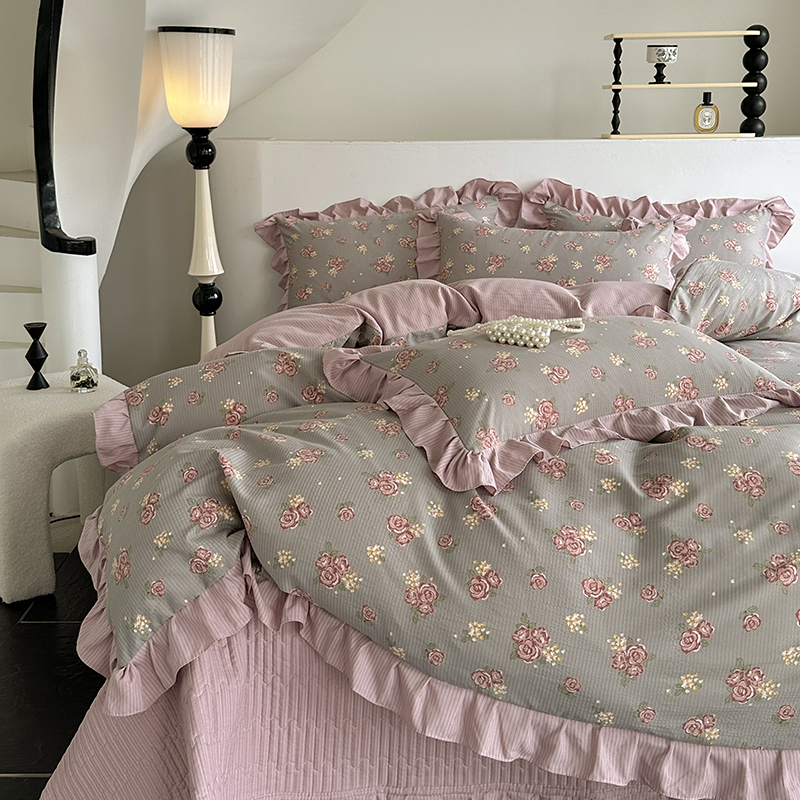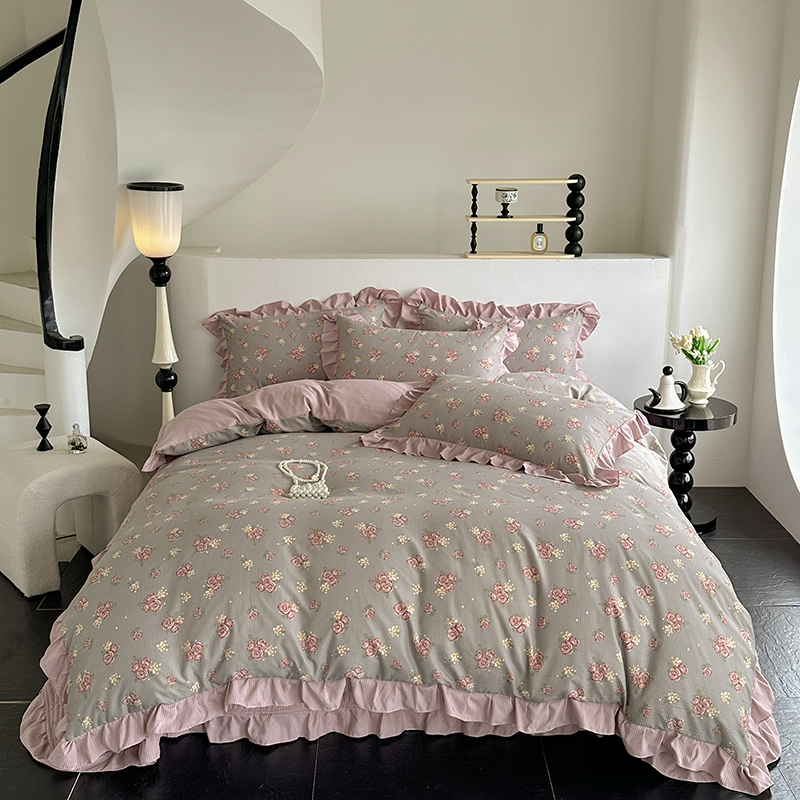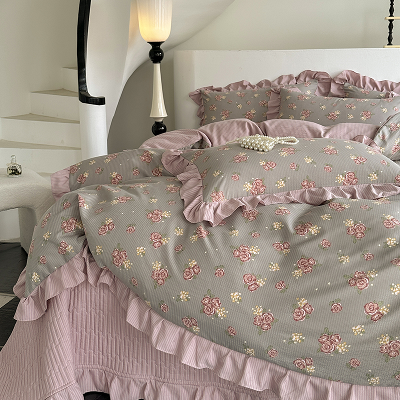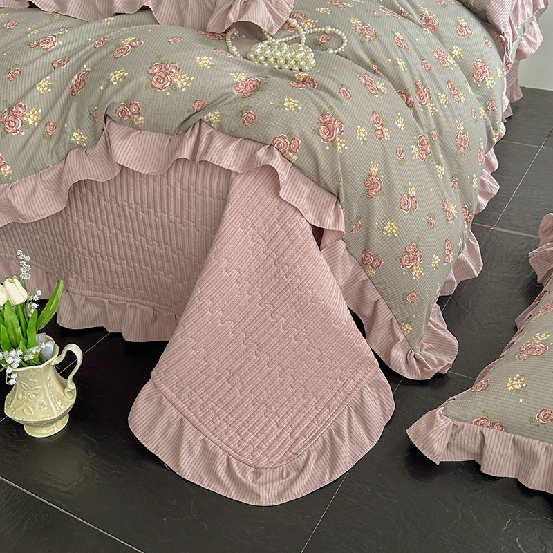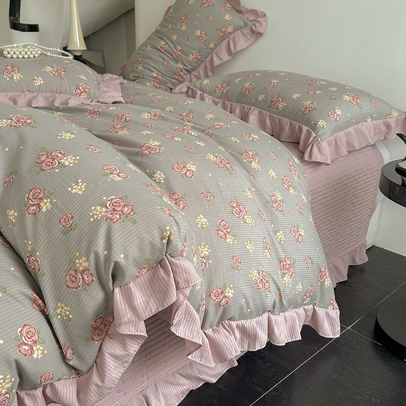 富瑞阁 2024新款A类泡泡棉床盖款法式花边四件套 繁花