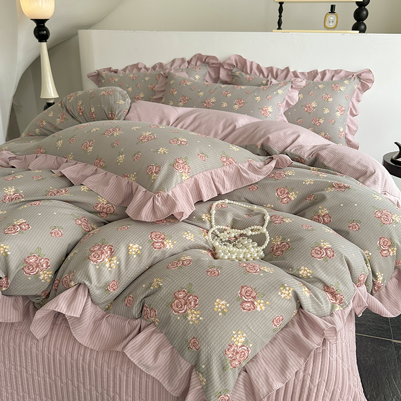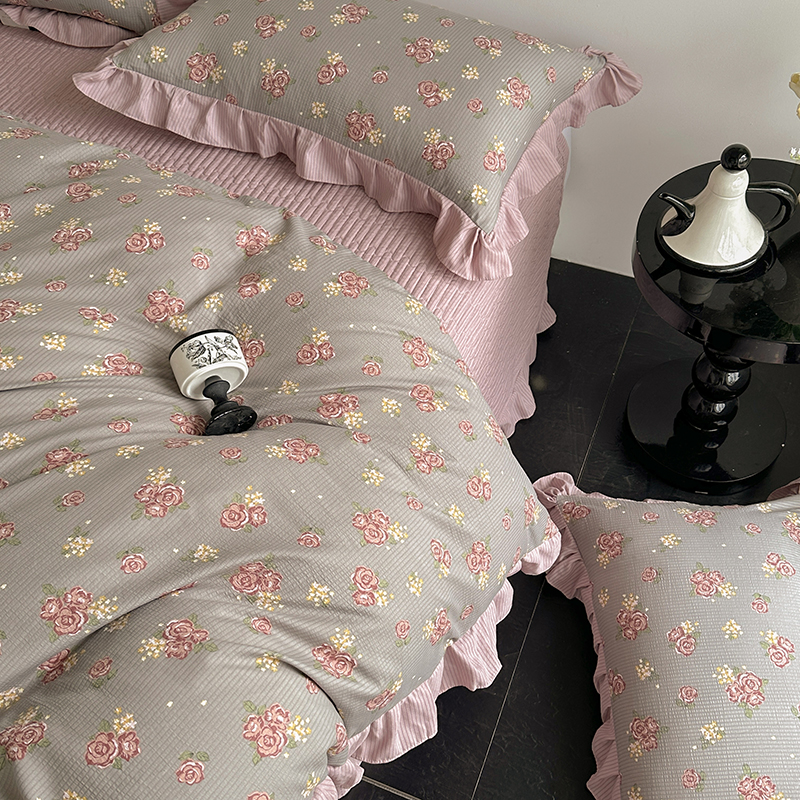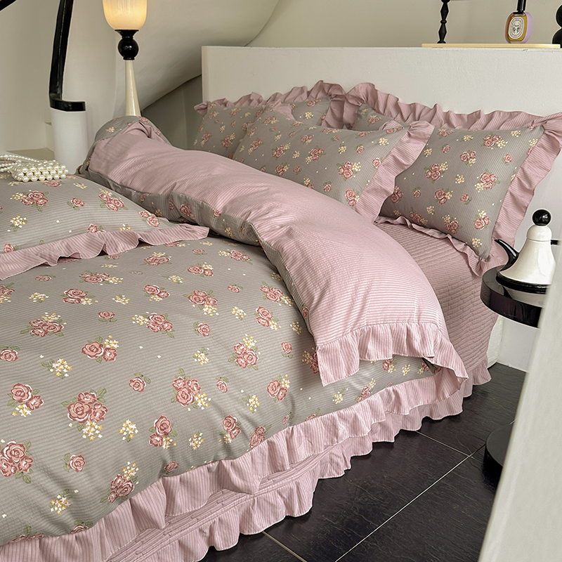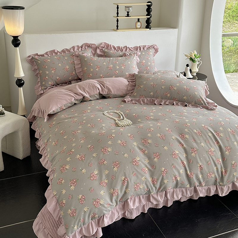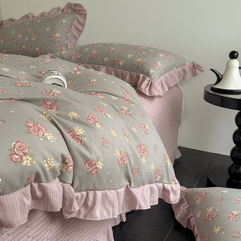 富瑞阁 2024新款A类泡泡棉床盖款法式花边四件套 繁花