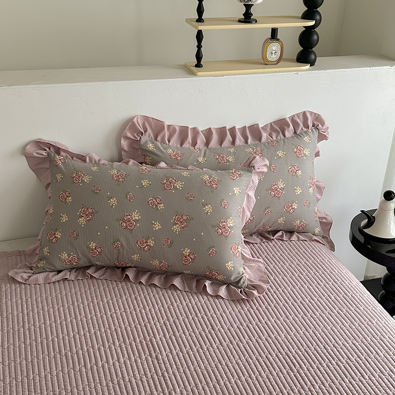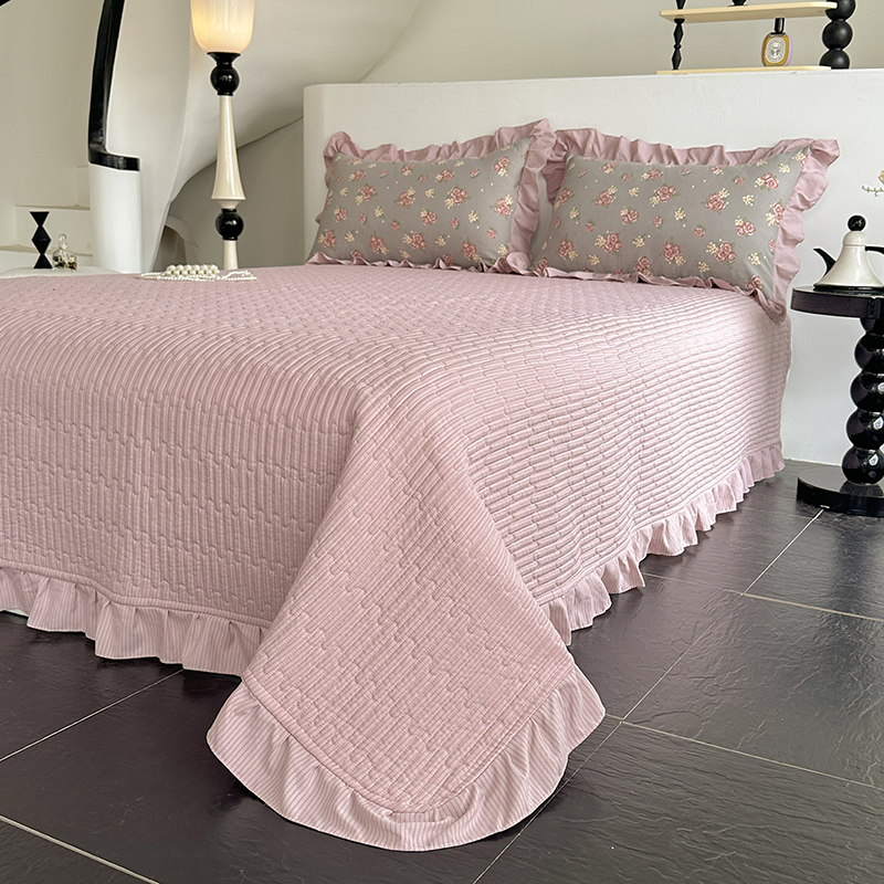 (总)富瑞阁 2024新款牛奶绒宝宝绒韩版花边床盖三件套单品,粉豆沙,粉色,芙蓉绿,浅灰,浅驼,深驼
