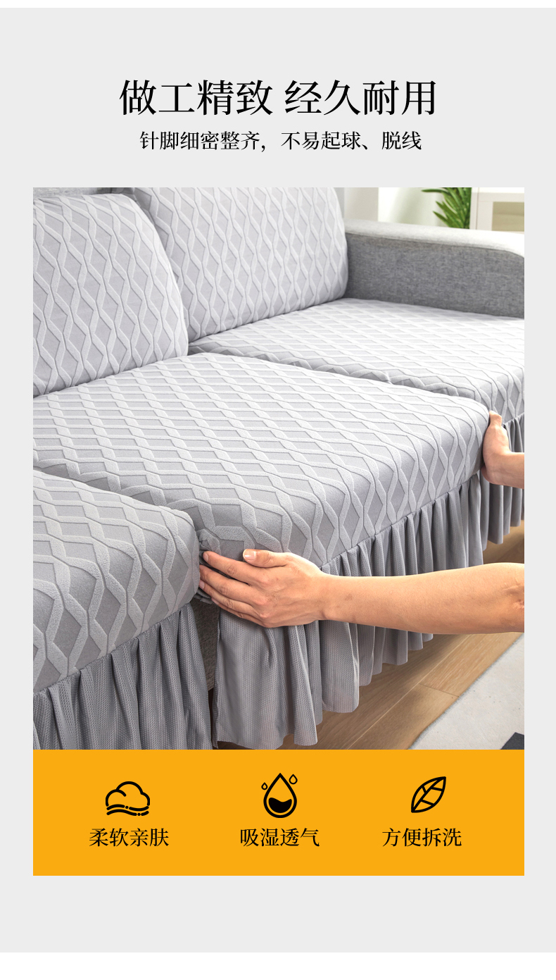 当前位置: 91家纺网 > 商品网购 > 居家布艺 > 坐垫/椅垫/沙发垫 > 沙发垫 > 千彤沙发垫 2024新款裙边款拉花绒菱形格系列沙发笠 银灰