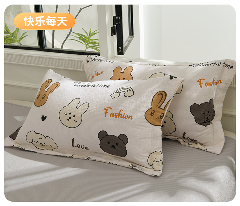 商品名称:圣楚家纺 2024新款泡泡纱枕套 快乐每天