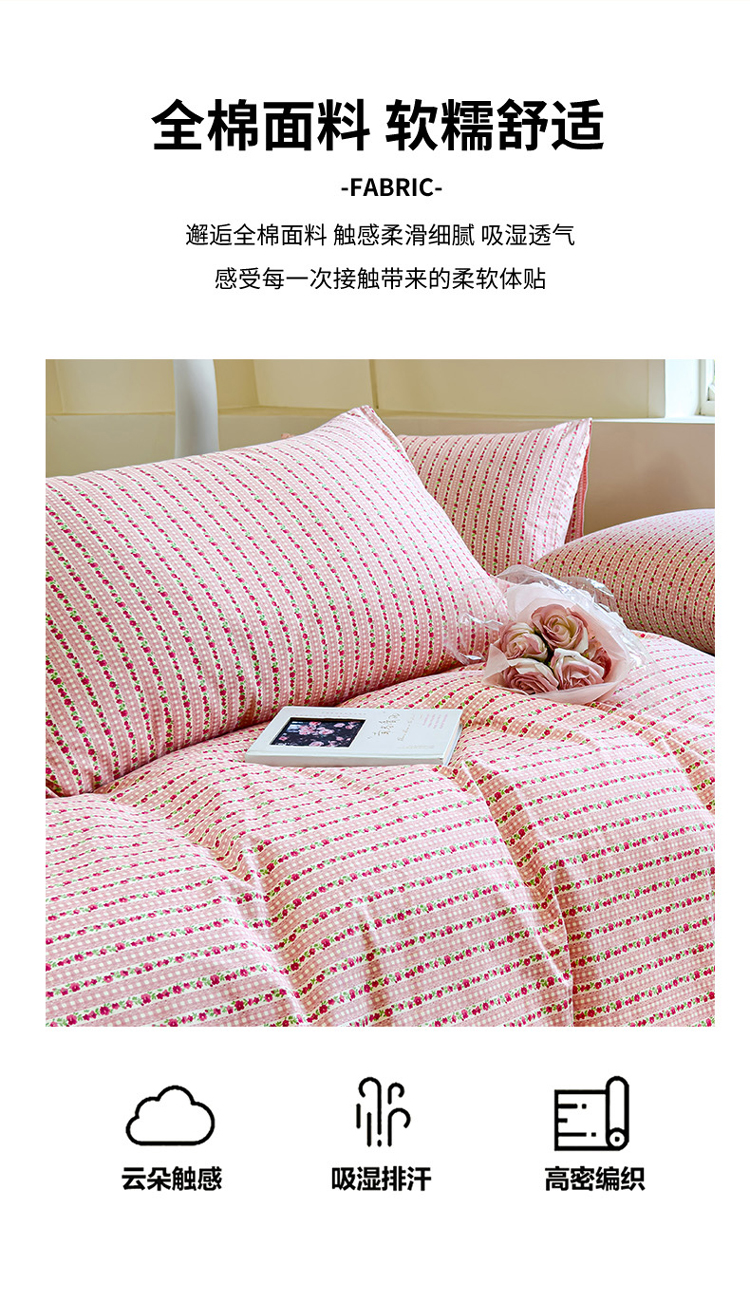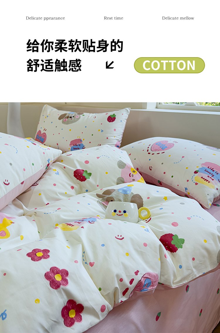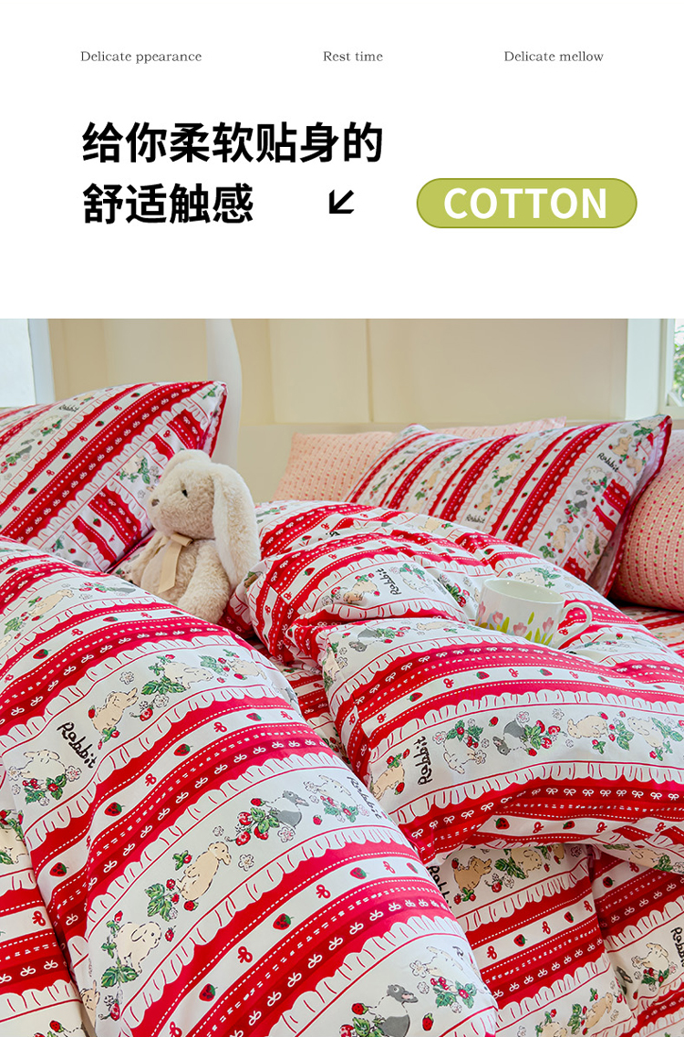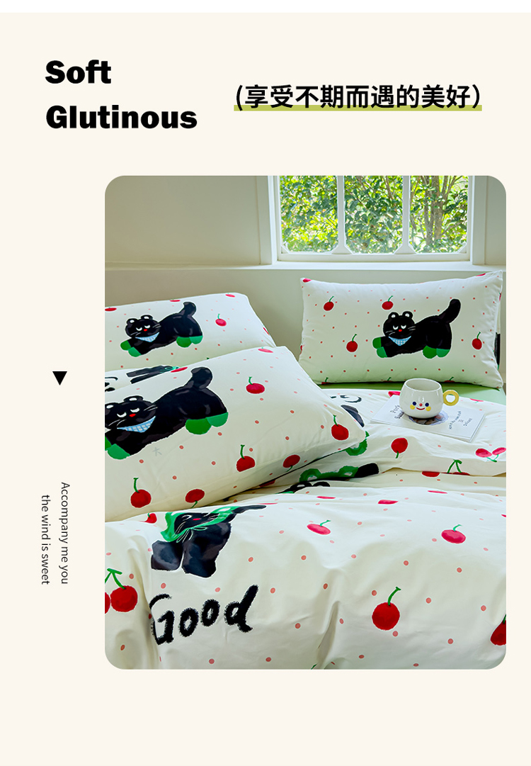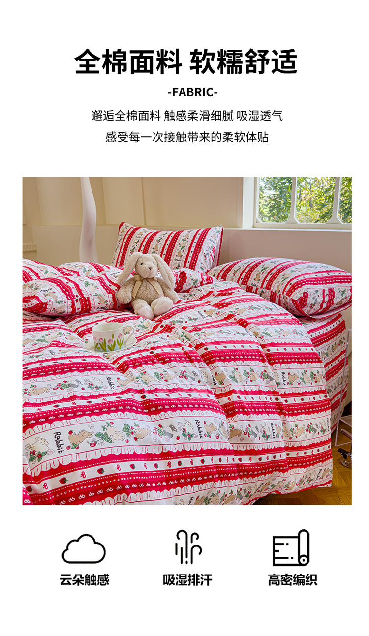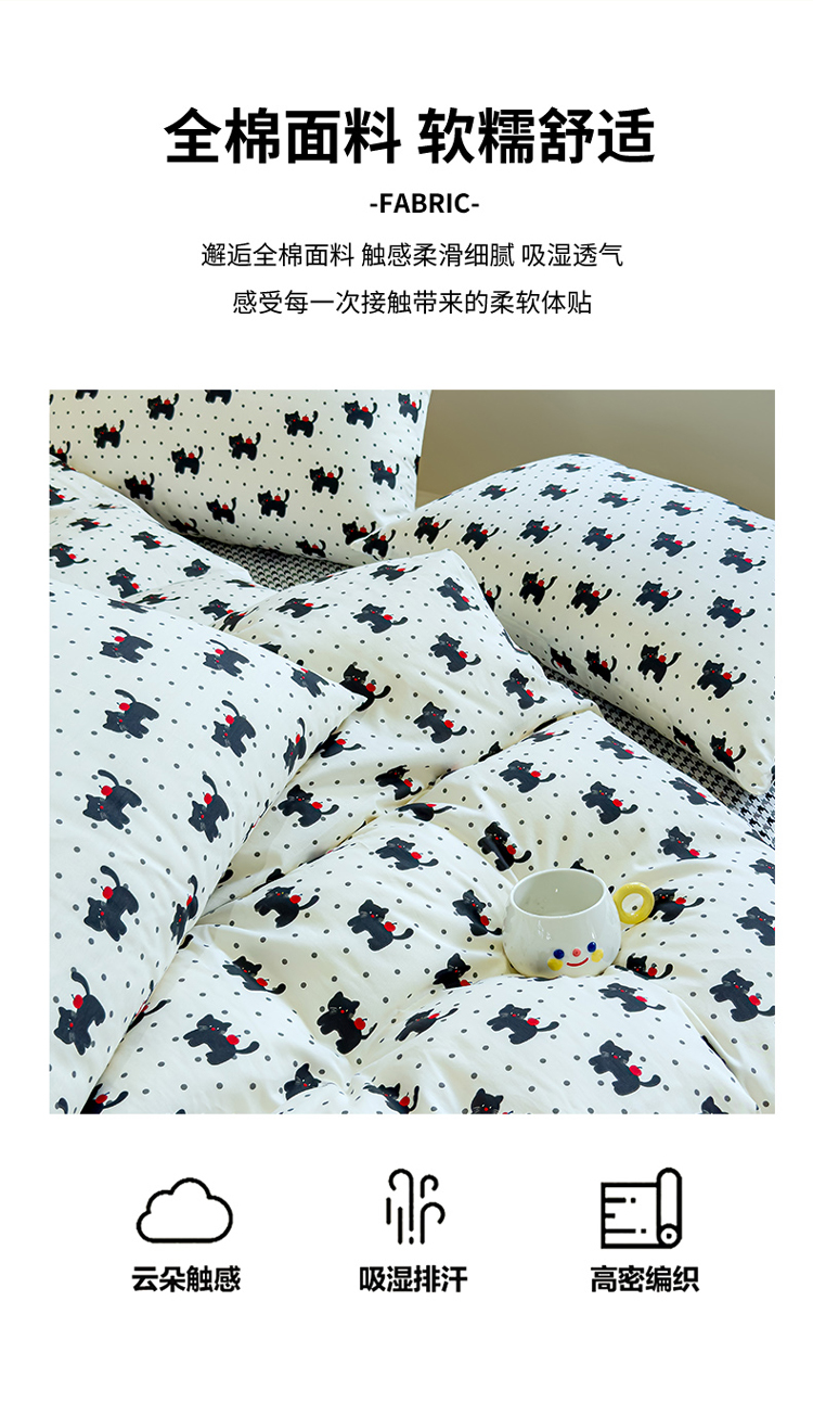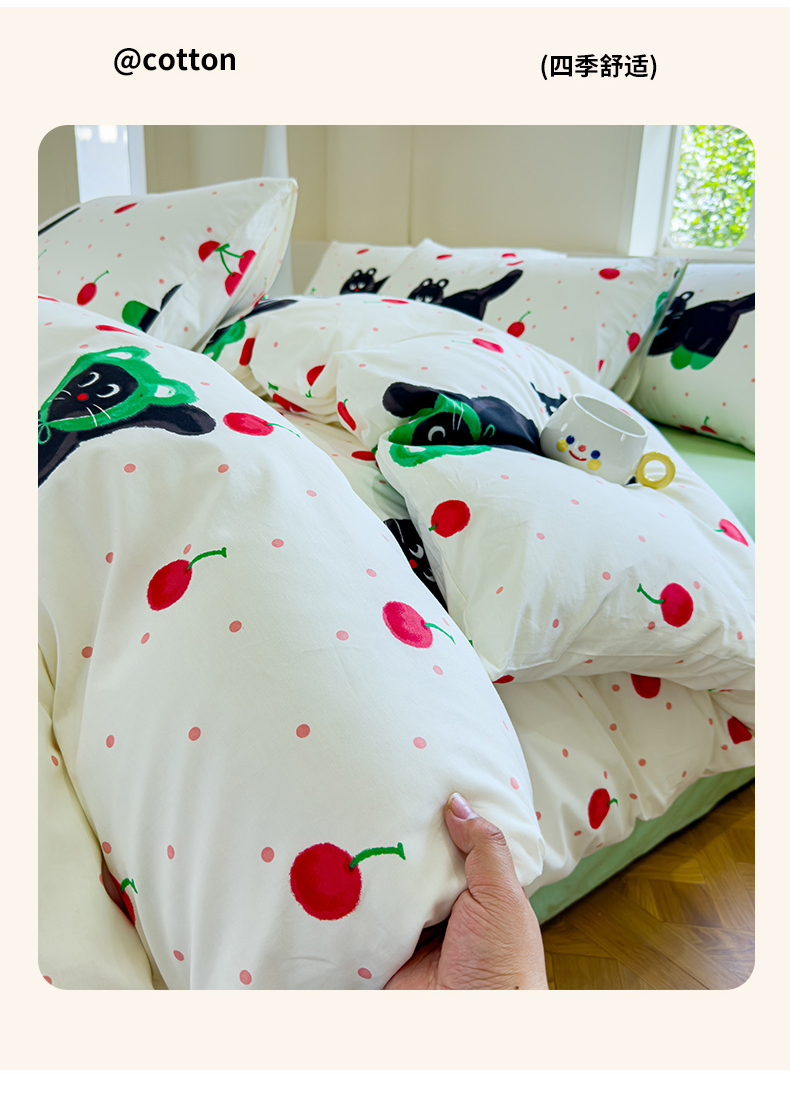 (总)感遇家纺 2025新款小清新甜系全棉四件套,百丽兔,波点小女孩,点点小狗,复古樱桃,格子草莓,格子樱桃,花间牧歌,灰条猫咪,奶绿,宁夏,森林小熊猫,甜心波点