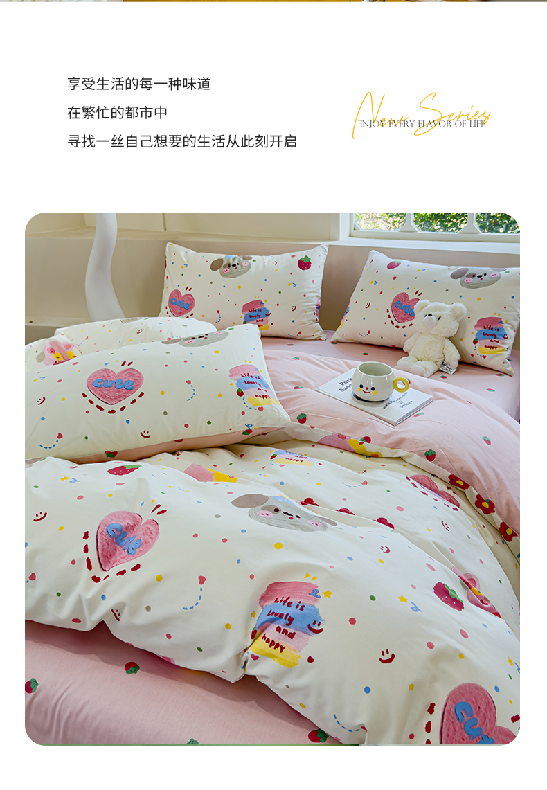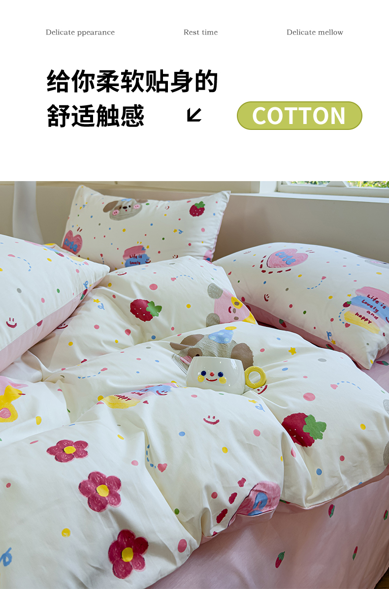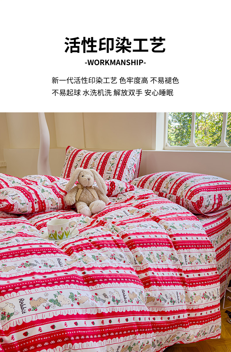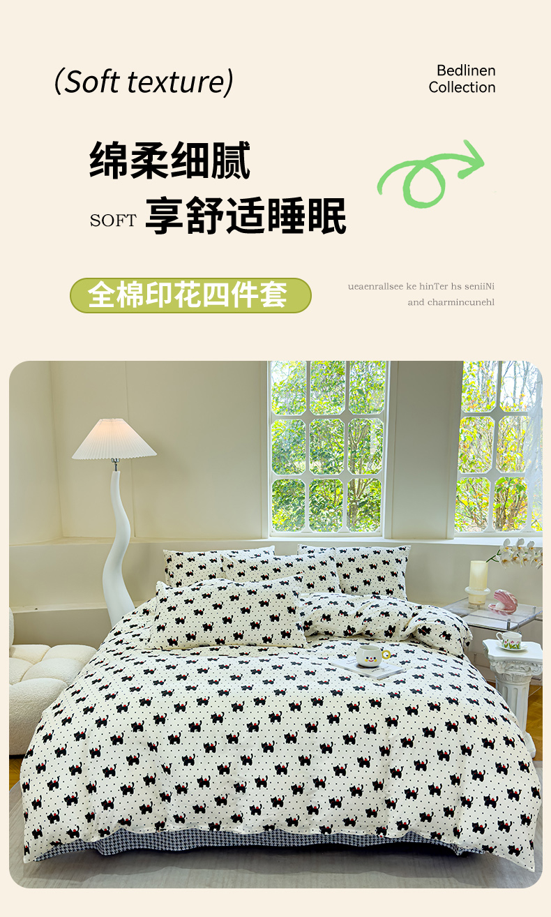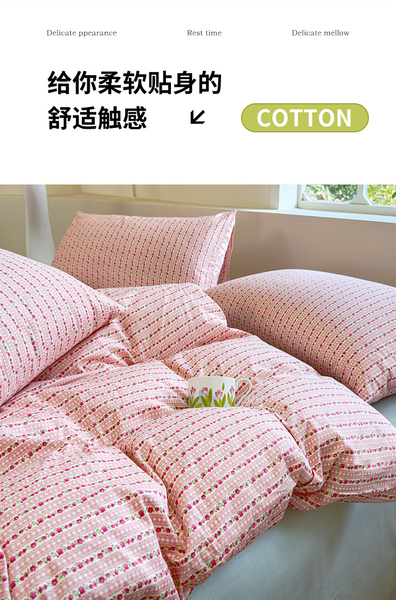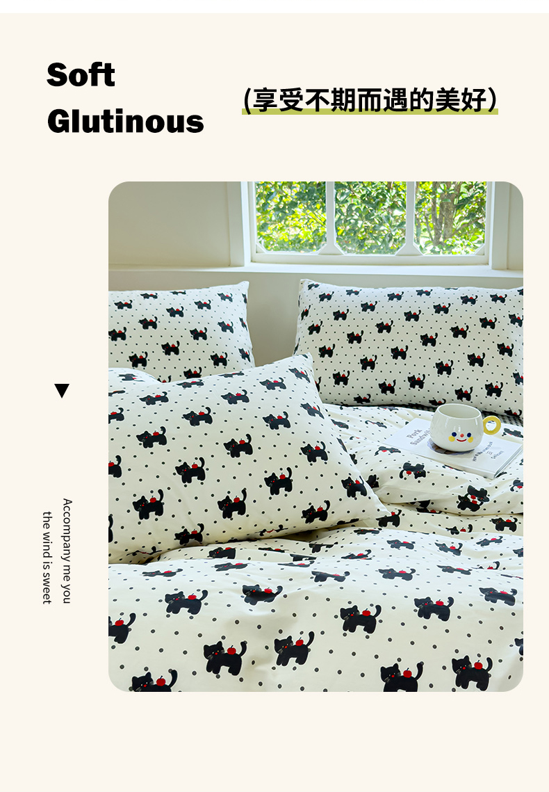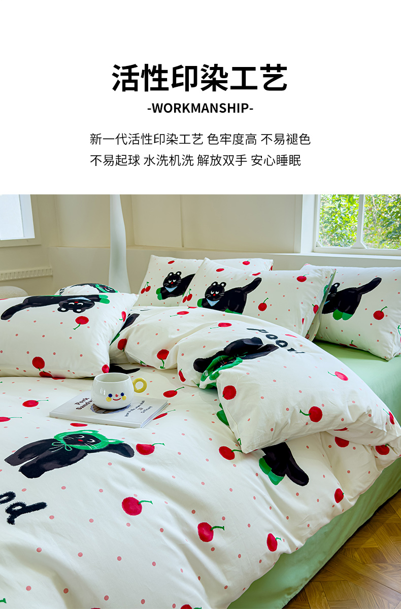 (总)感遇家纺 2025新款小清新甜系全棉四件套,百丽兔,波点小女孩,点点小狗,复古樱桃,格子草莓,格子樱桃,花间牧歌,灰条猫咪,奶绿,宁夏,森林小熊猫,甜心波点