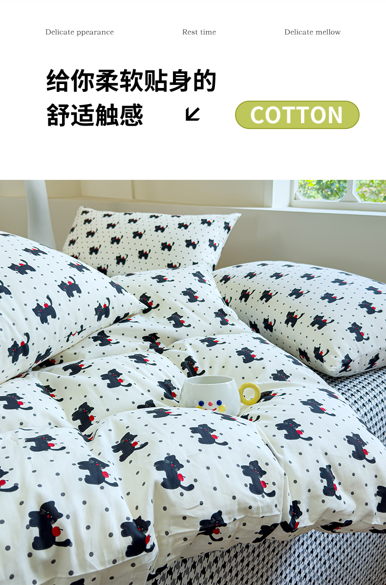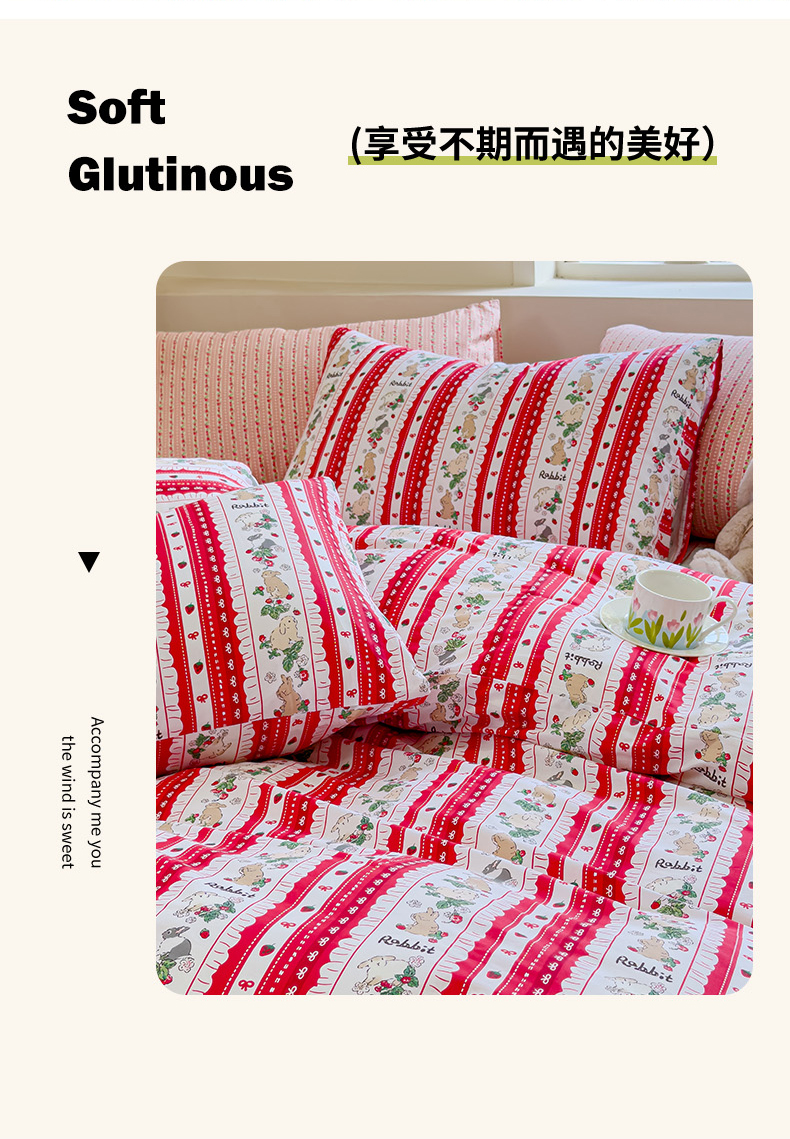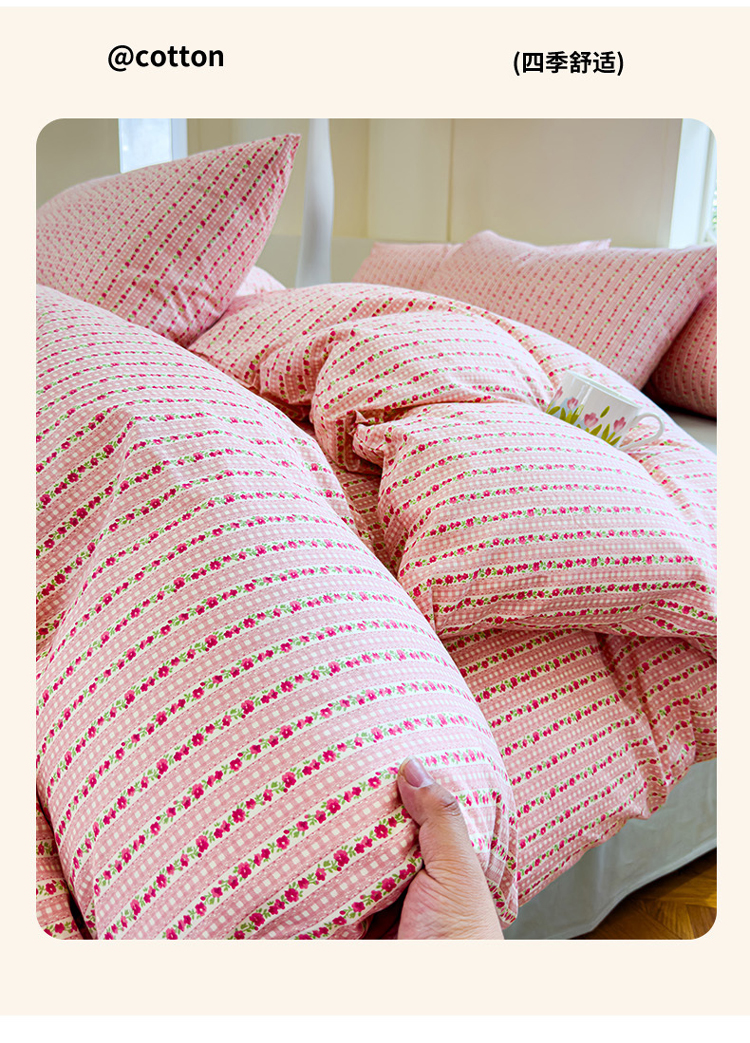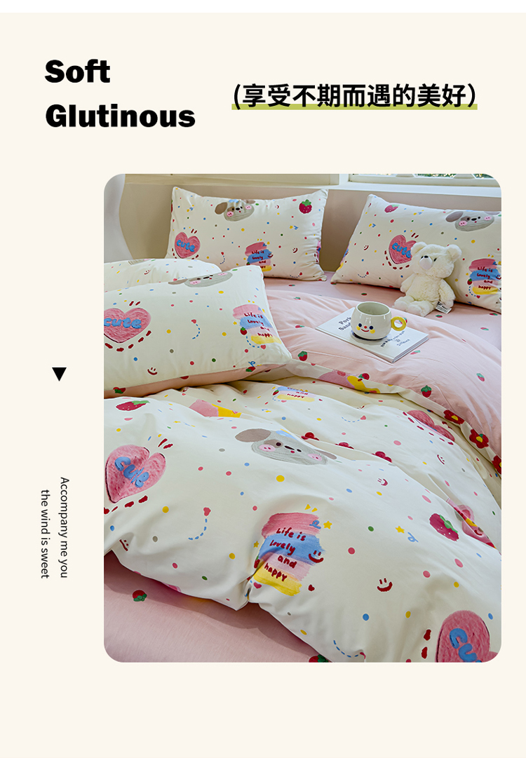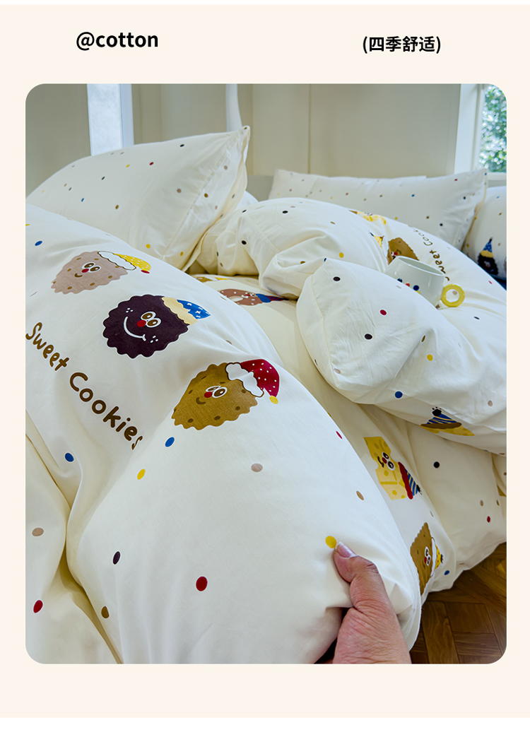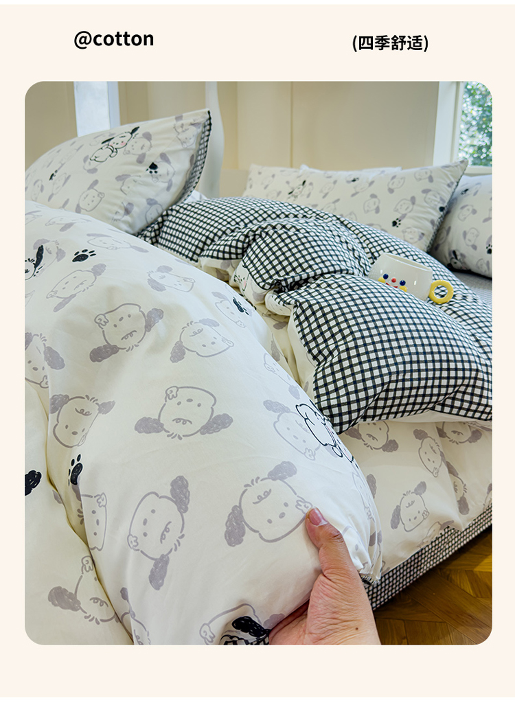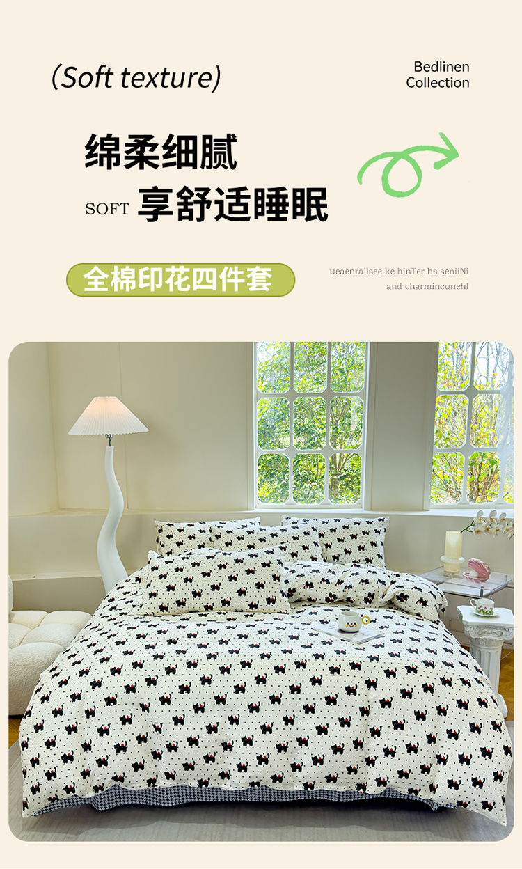(总)感遇家纺 2025新款小清新甜系全棉四件套,百丽兔,波点小女孩,点点小狗,复古樱桃,格子草莓,格子樱桃,花间牧歌,灰条猫咪,奶绿,宁夏,森林小熊猫,甜心波点