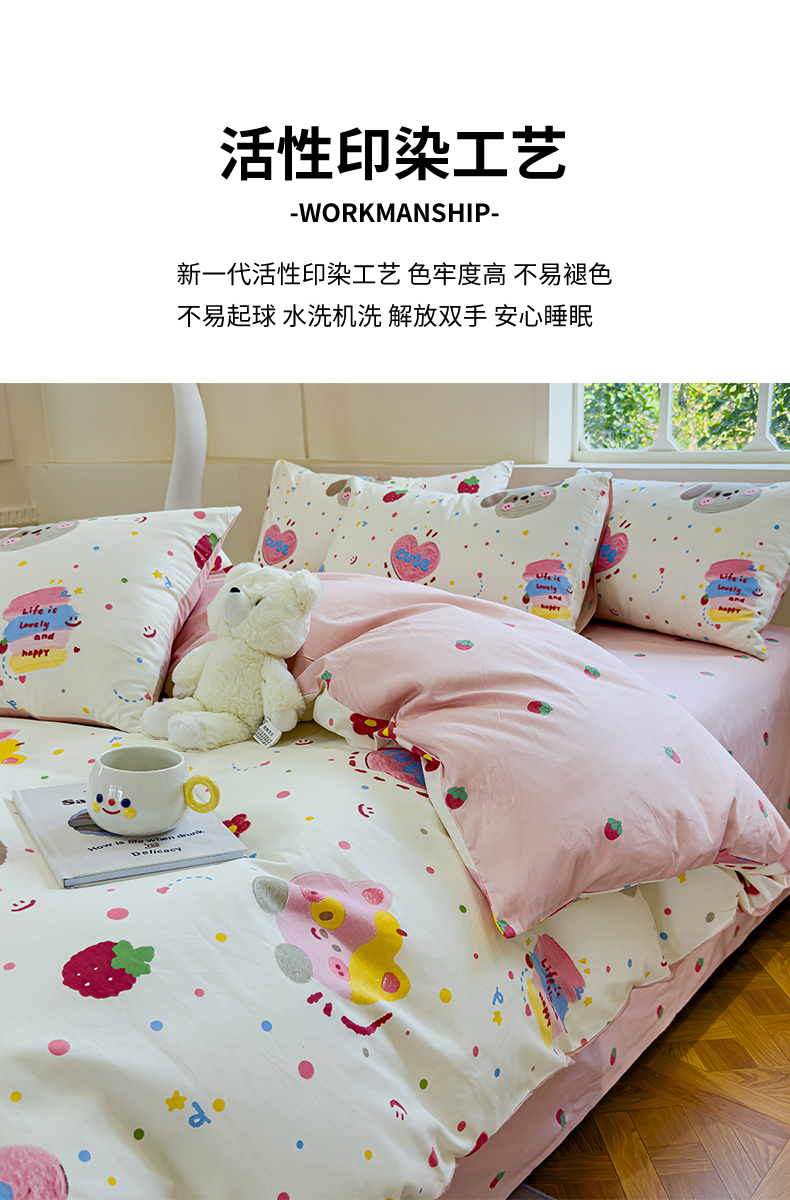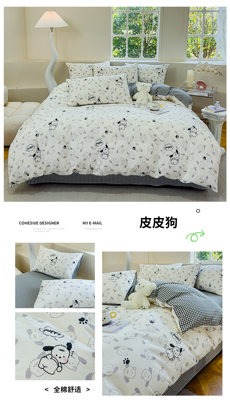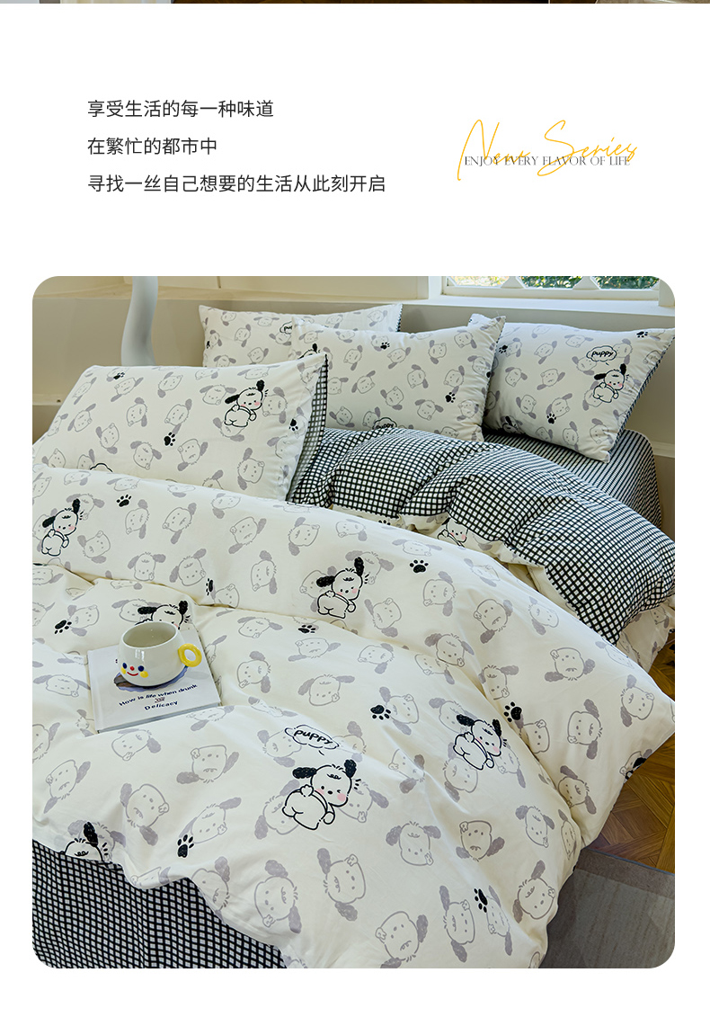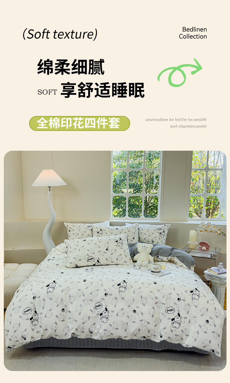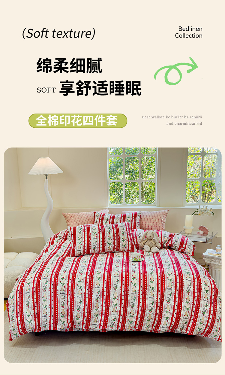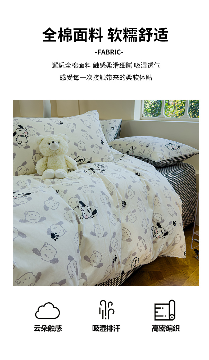 (总)感遇家纺 2025新款小清新甜系全棉四件套,百丽兔,波点小女孩,点点小狗,复古樱桃,格子草莓,格子樱桃,花间牧歌,灰条猫咪,奶绿,宁夏,森林小熊猫,甜心波点