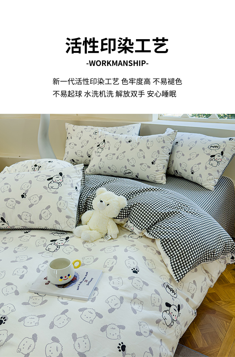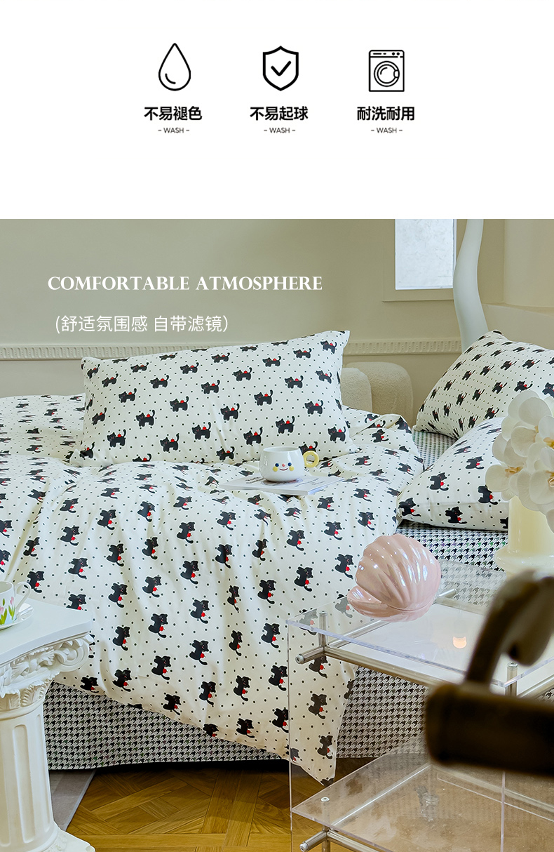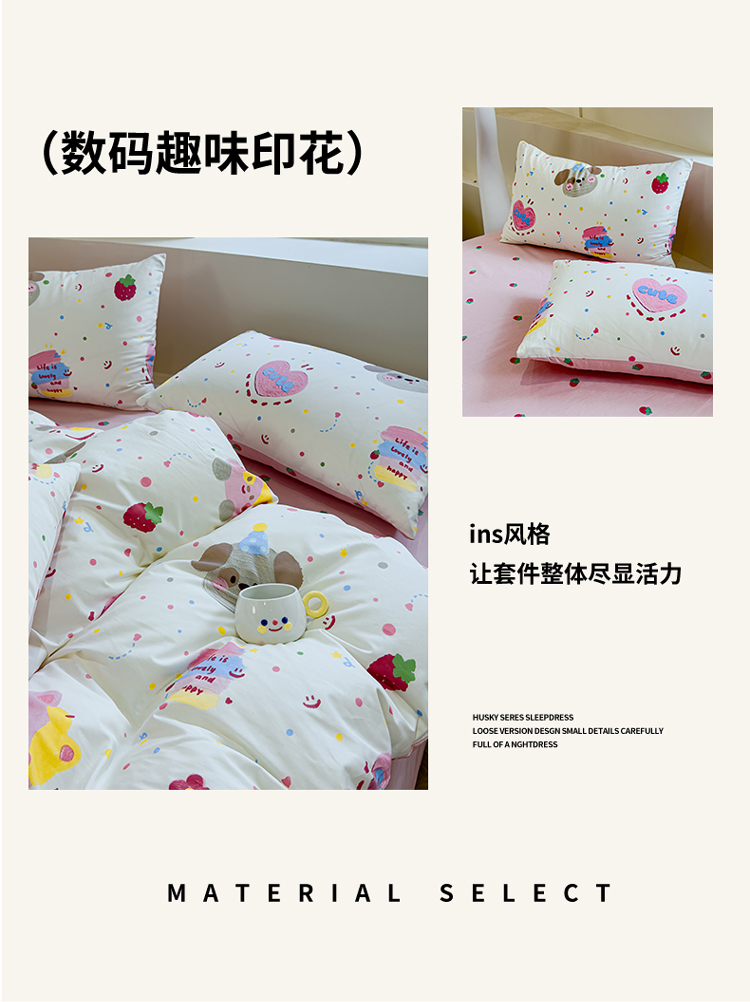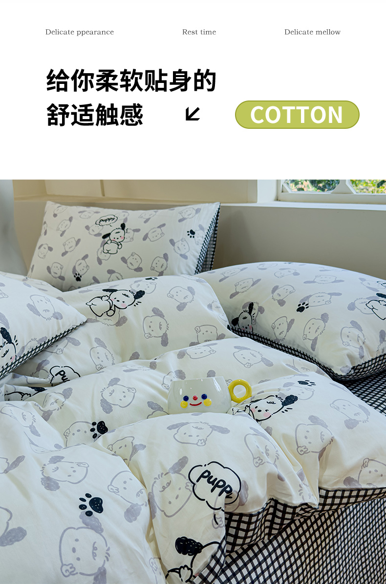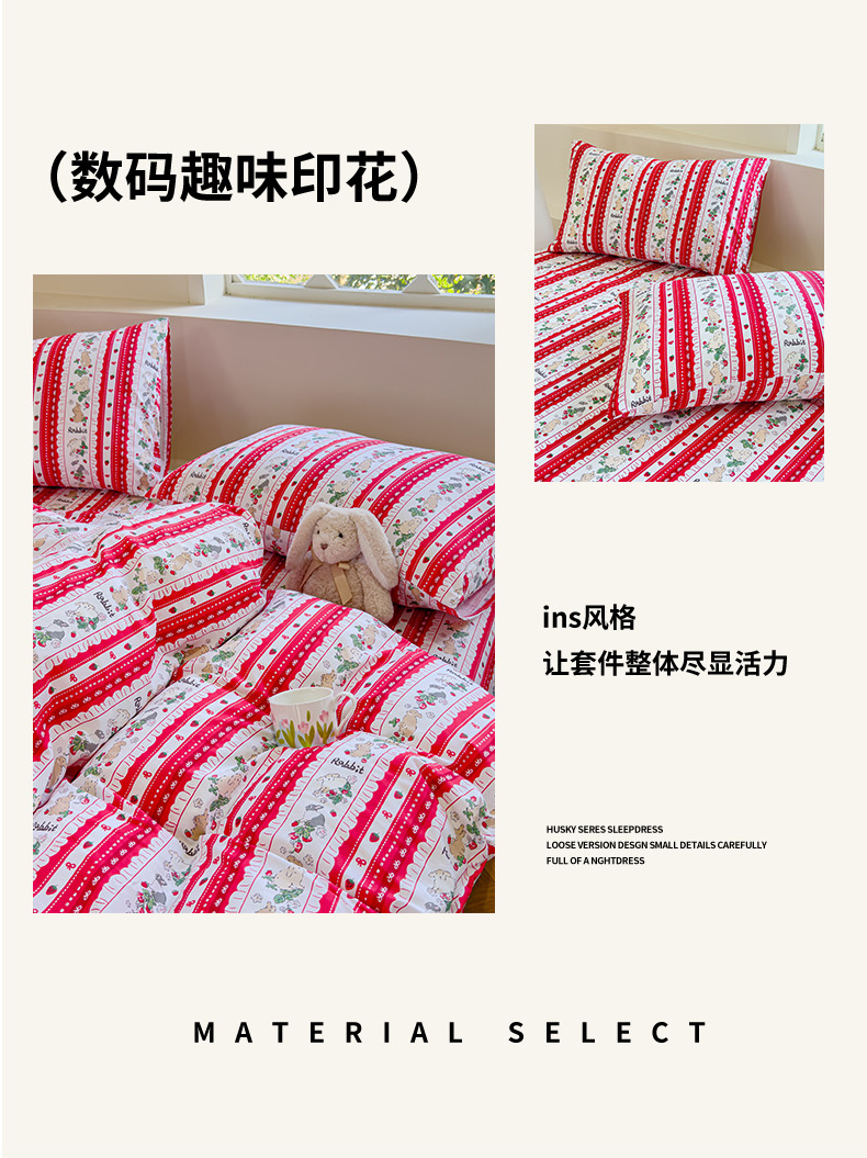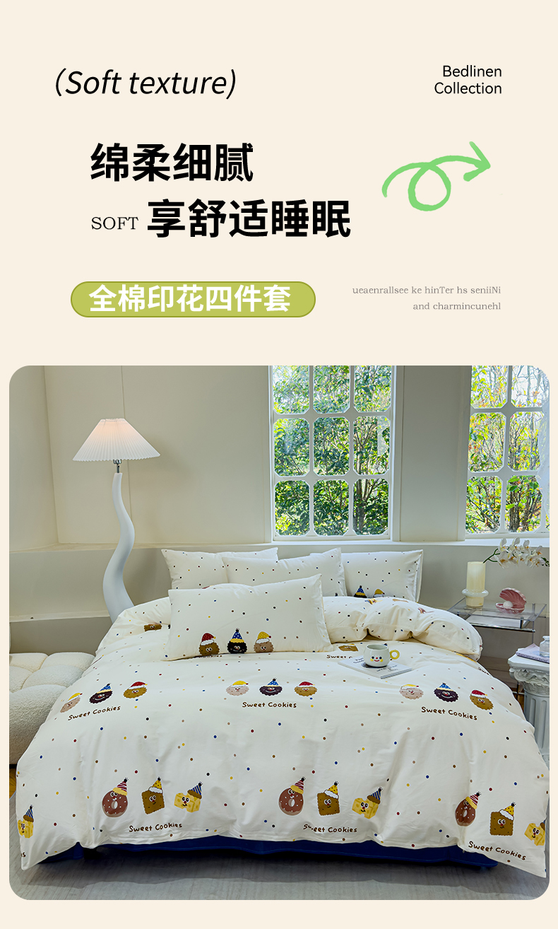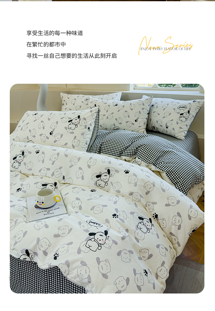 (总)感遇家纺 2025新款小清新甜系全棉四件套,百丽兔,波点小女孩,点点小狗,复古樱桃,格子草莓,格子樱桃,花间牧歌,灰条猫咪,奶绿,宁夏,森林小熊猫,甜心波点