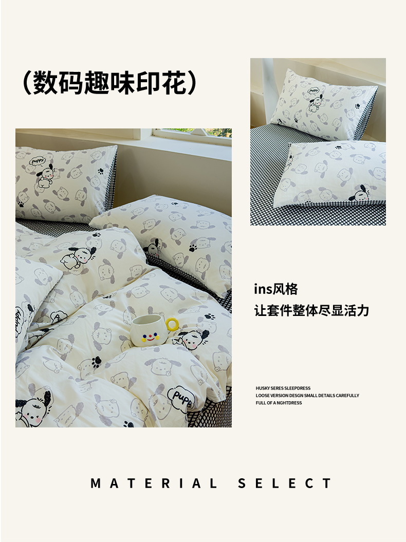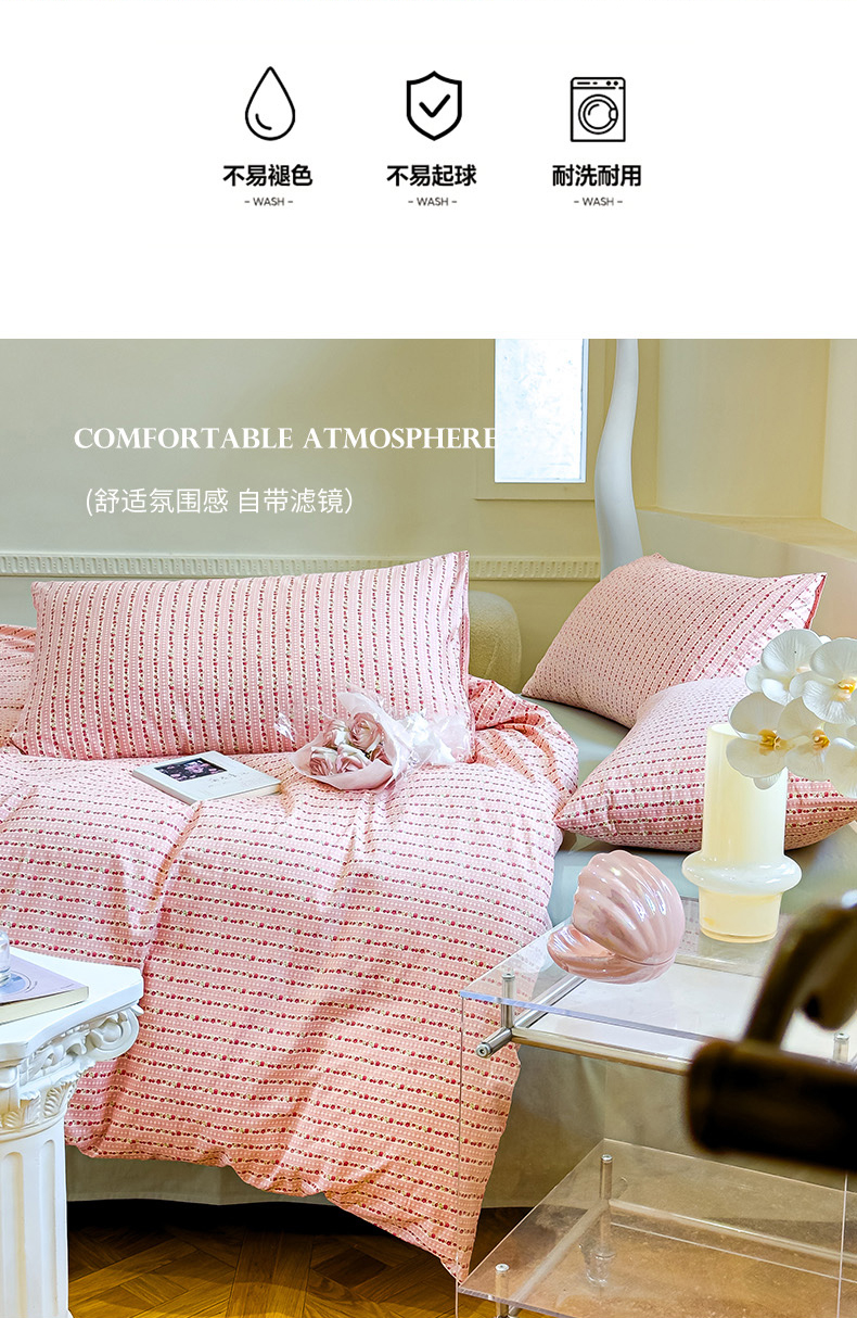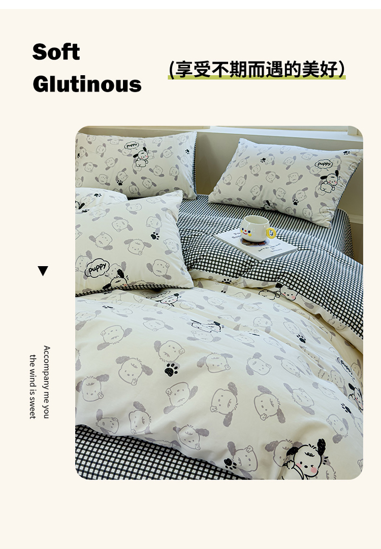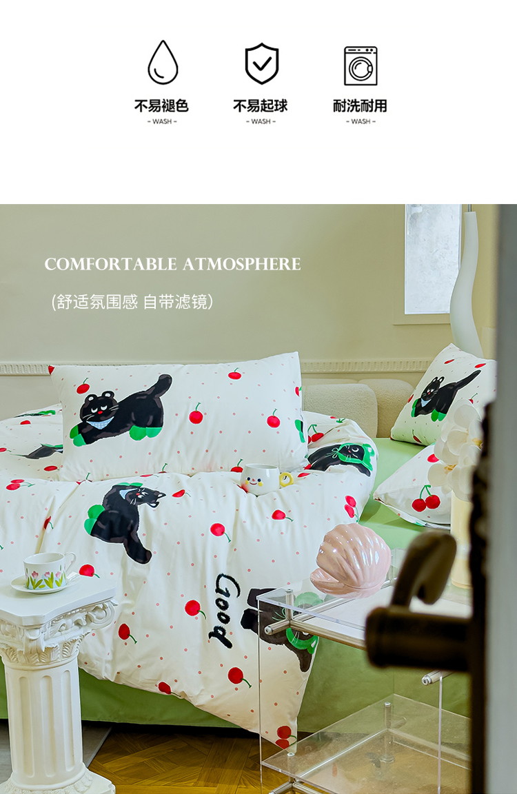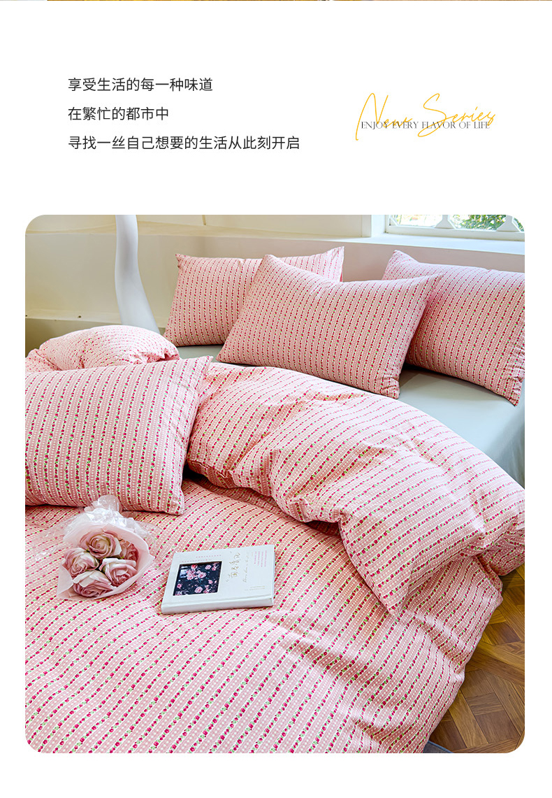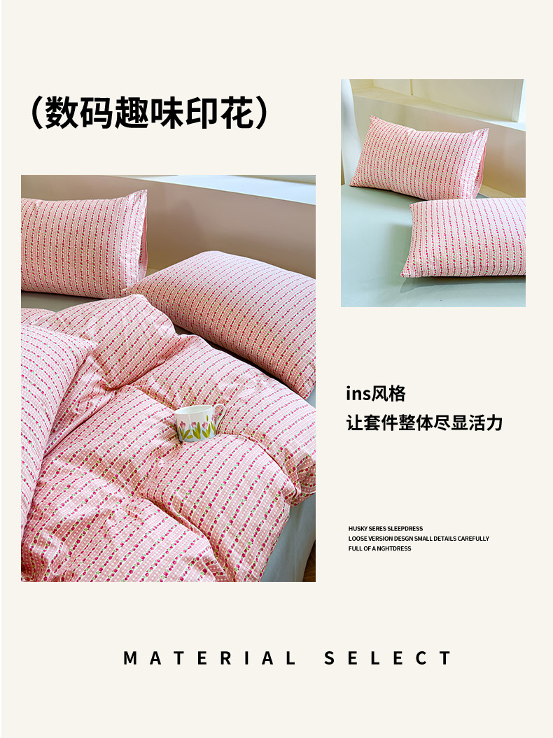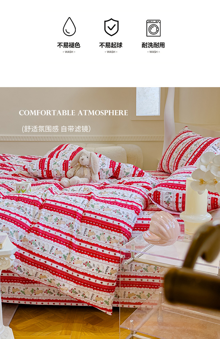 (总)感遇家纺 2025新款小清新甜系全棉四件套,百丽兔,波点小女孩,点点小狗,复古樱桃,格子草莓,格子樱桃,花间牧歌,灰条猫咪,奶绿,宁夏,森林小熊猫,甜心波点