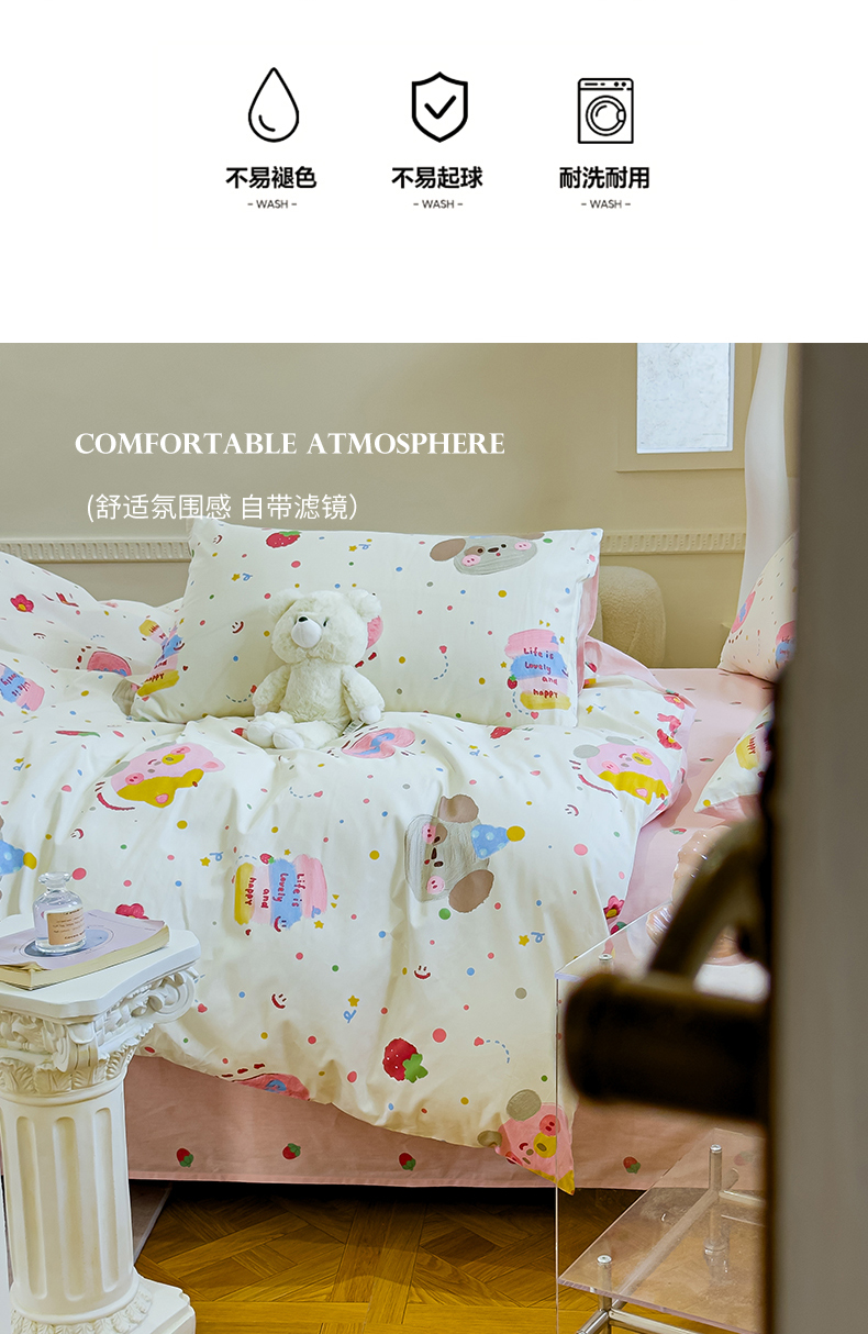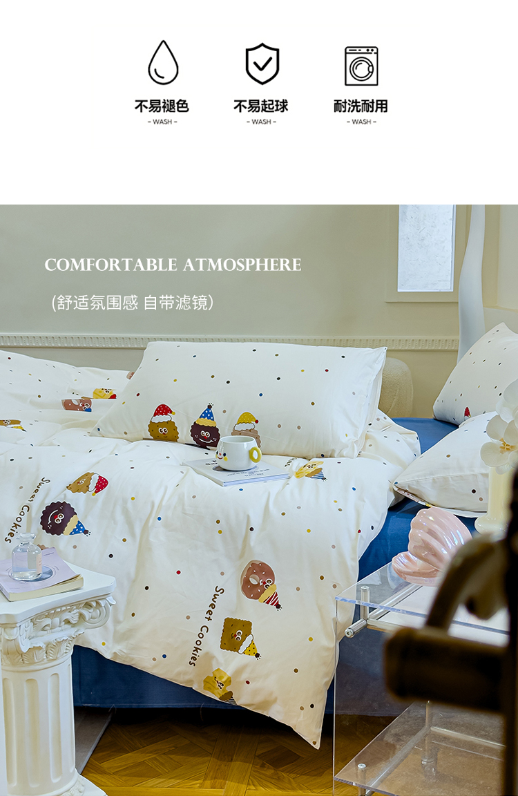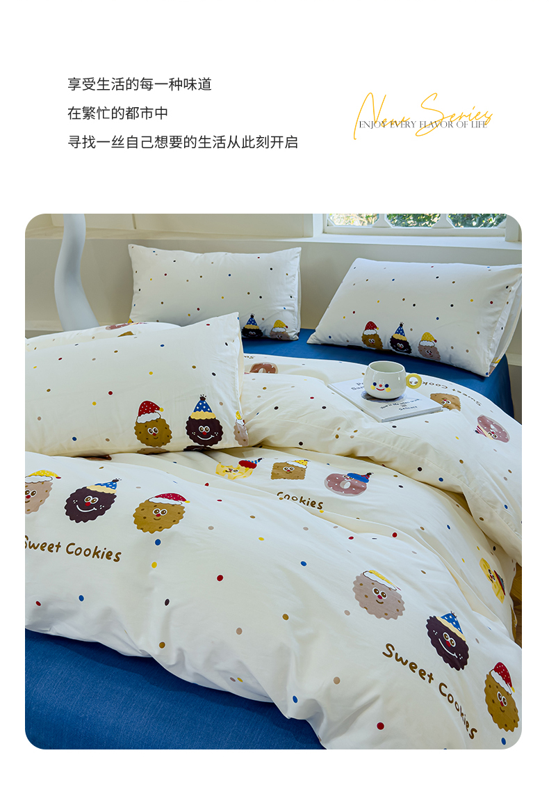 (总)感遇家纺 2021新款小清新卡通系列四件套,饼干森林,快乐星球,长颈鹿