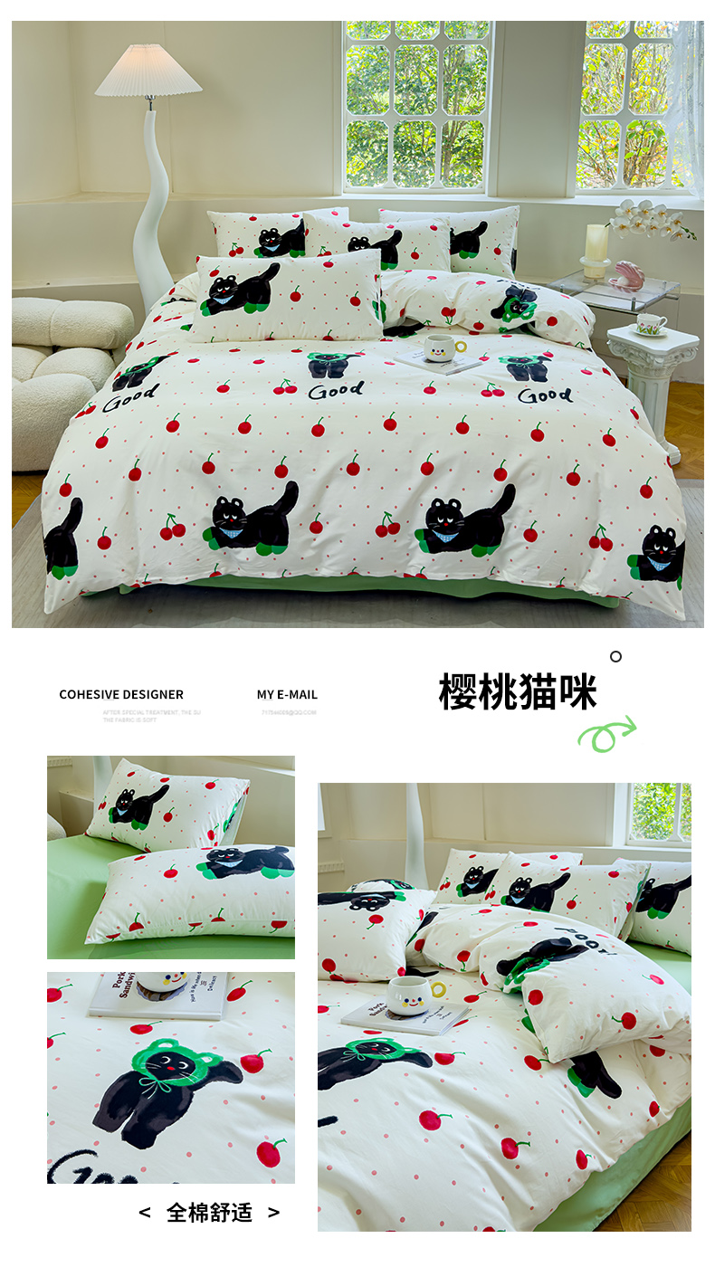 (总)感遇家纺 2026新款全棉纯棉印花13372四件套,缤纷樱桃,草莓小园,达美-灰,花艺漫漫,酷猫,蜡笔汽车,蓝小猫,梨涡,萝卜好吃,萌小象,年年有橙,柠檬蜜语,暖樱-绿,七彩蝴蝶结,热带雨林-绿,心雨落樱-绿,星辰大海-灰,樱桃之夏,长安荔枝-米